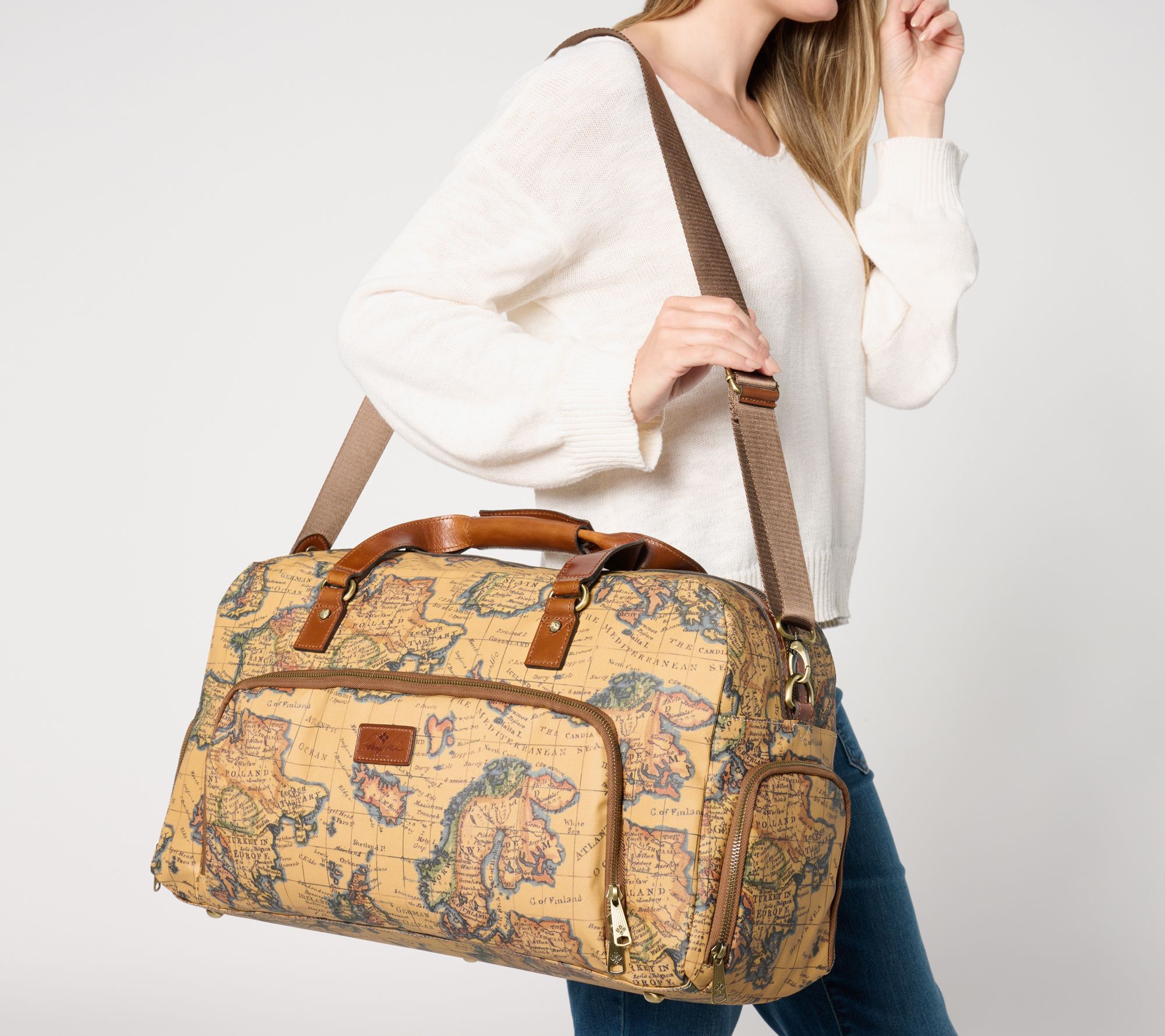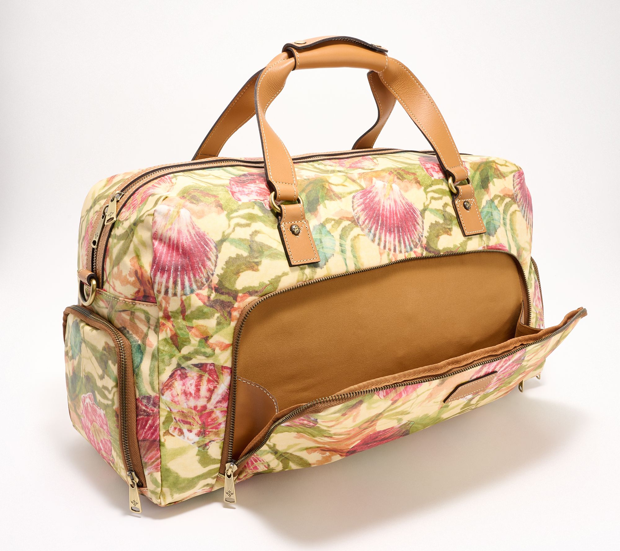 Whether you're heading to the gym, taking a road trip, or spending a weekend away, this spacious overnighter is perfectly designed to meet your needs. Beautifully appointed with stud details and a leather trim, this bag is up for any adventure. From Patricia Nash.
