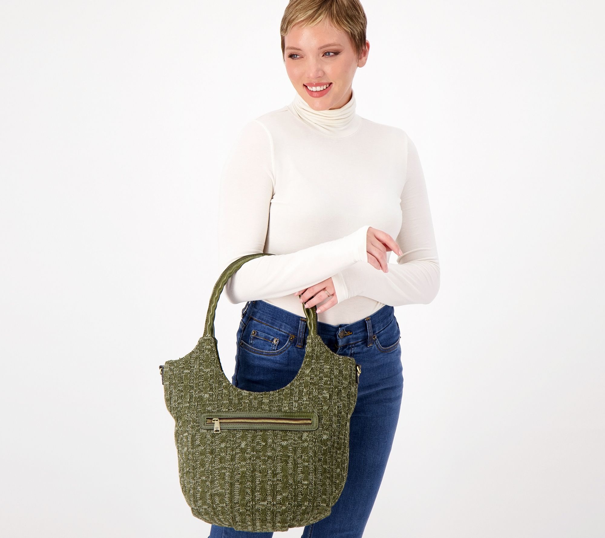This large satchel is a statement bag, for sure! Round handles provide a sophisticated look, while multiple carrying options and a roomy interior make it smart choice. From Patricia Nash.