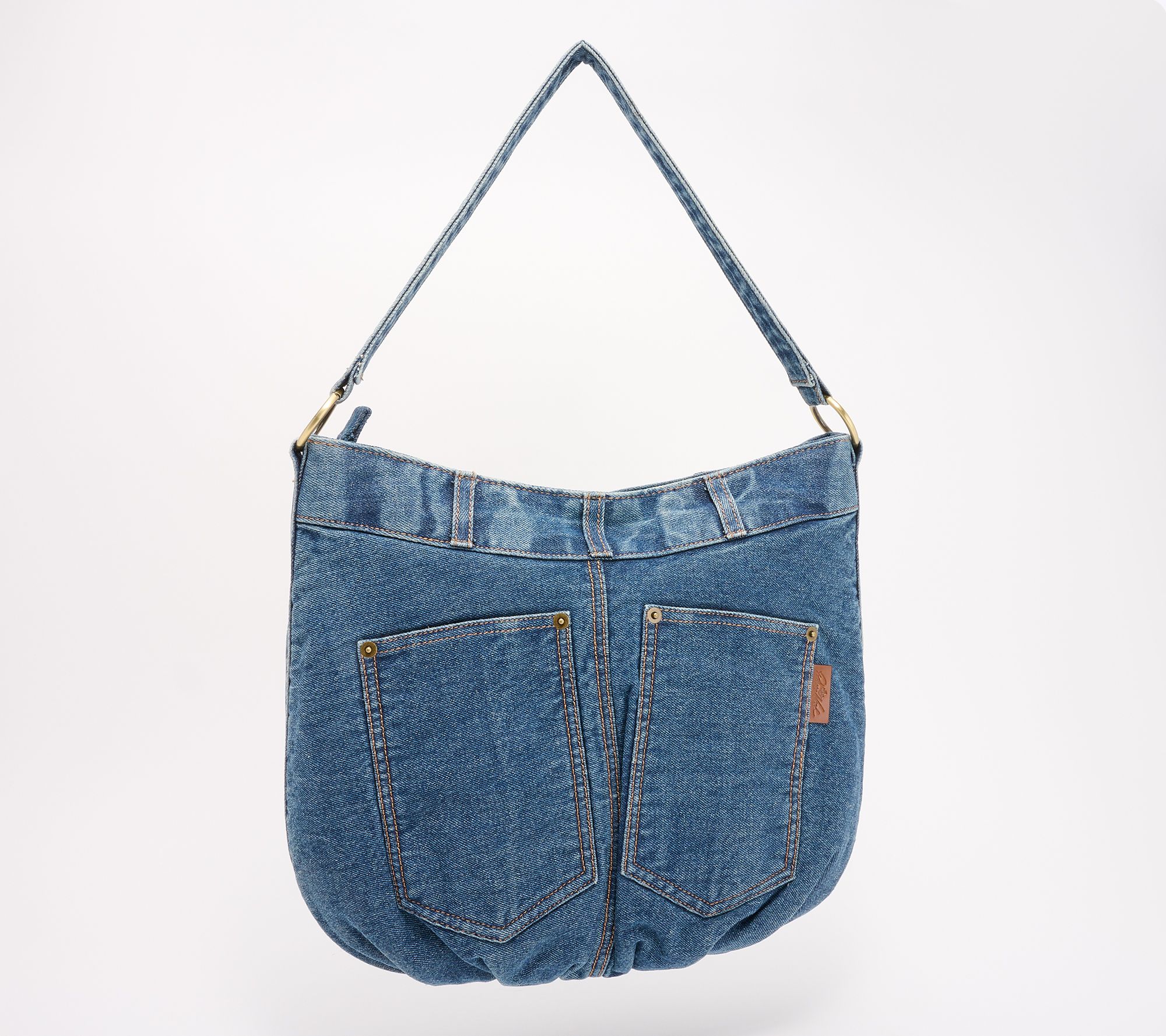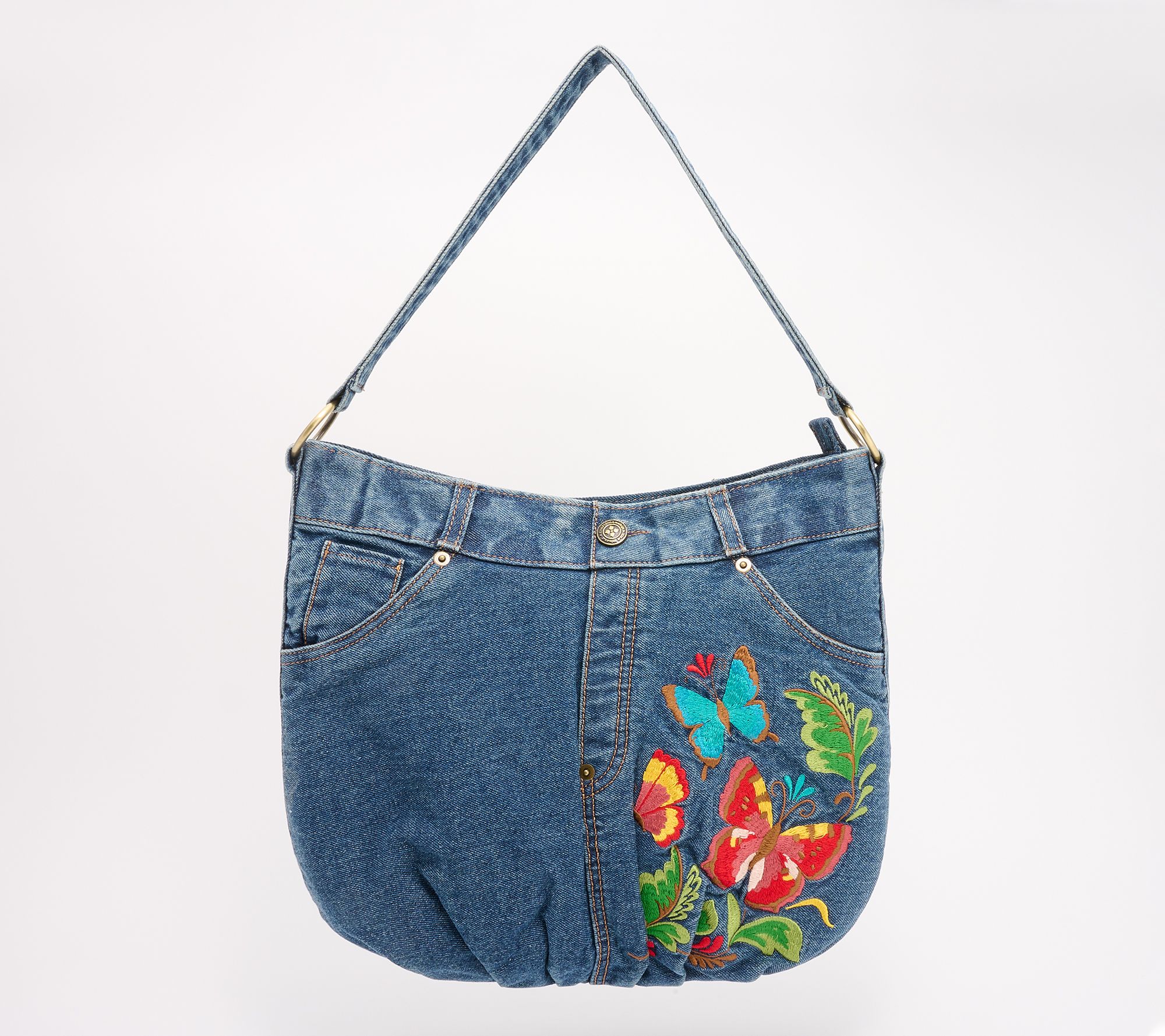 "As Is" Patricia Nash Denim Butterfly Embroidered Hartley Hobo