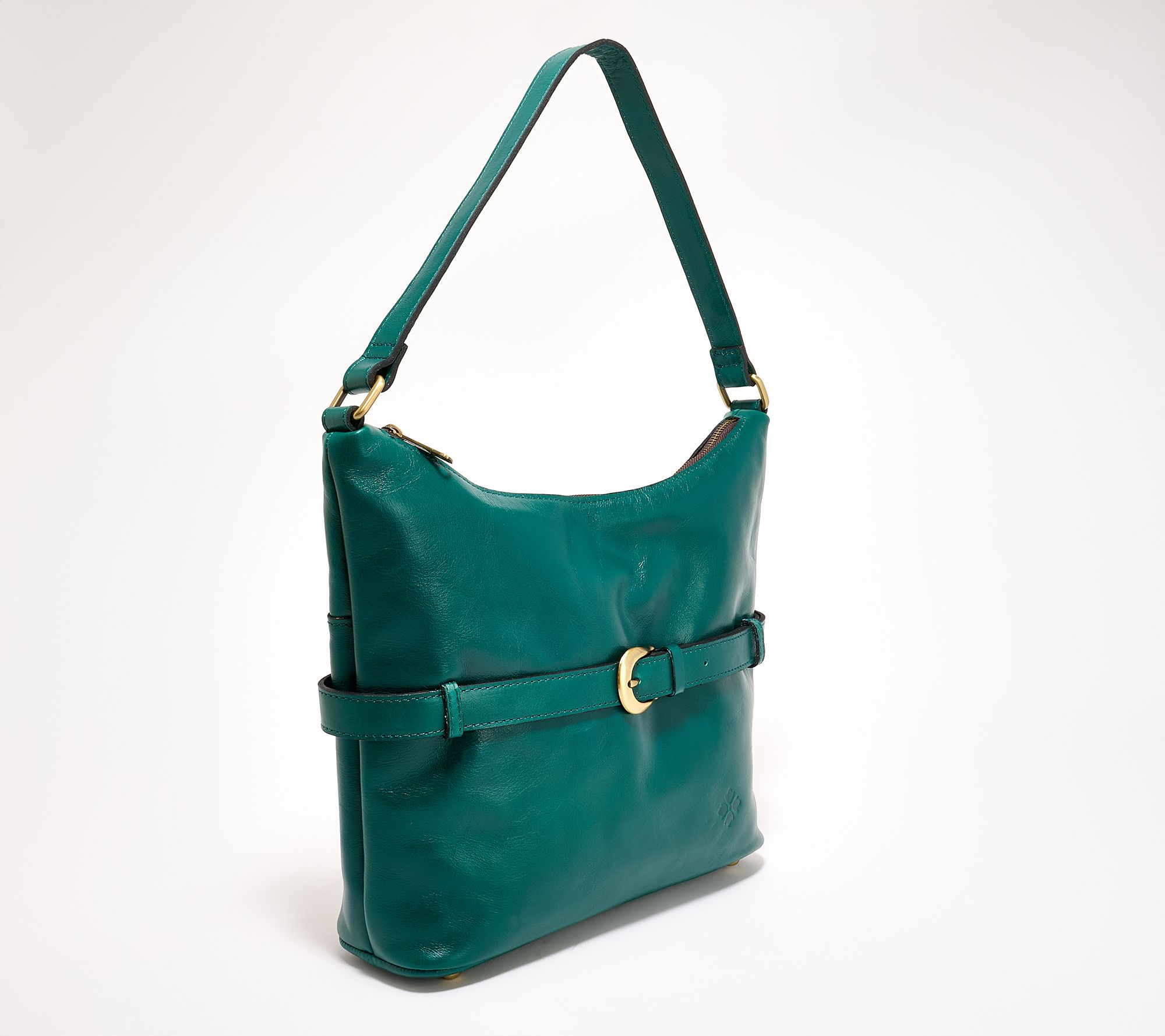 From weekdays on the go to evenings out, this leather hobo offers versatile style that fits right in. The signature belt and buckle detail allow you to adjust its silhouette as needed, while the spacious inside with organized pockets makes stashing your essentials simple. Rear and interior pockets help keep everything just where you need it. From Patricia Nash.