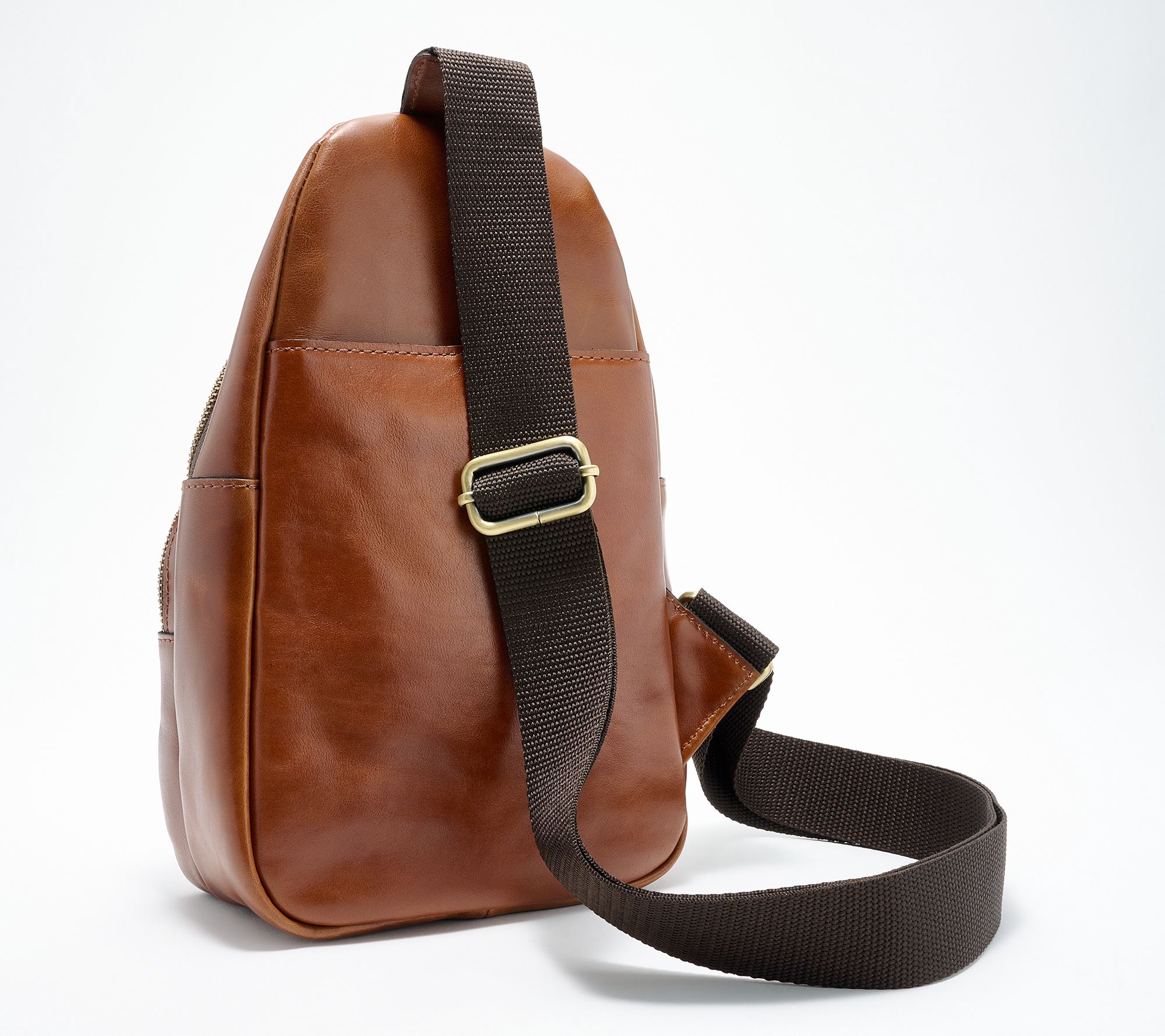 • Zipper closure, adjustable sling strap, rear slip pocket, front zip pocket with three card slots