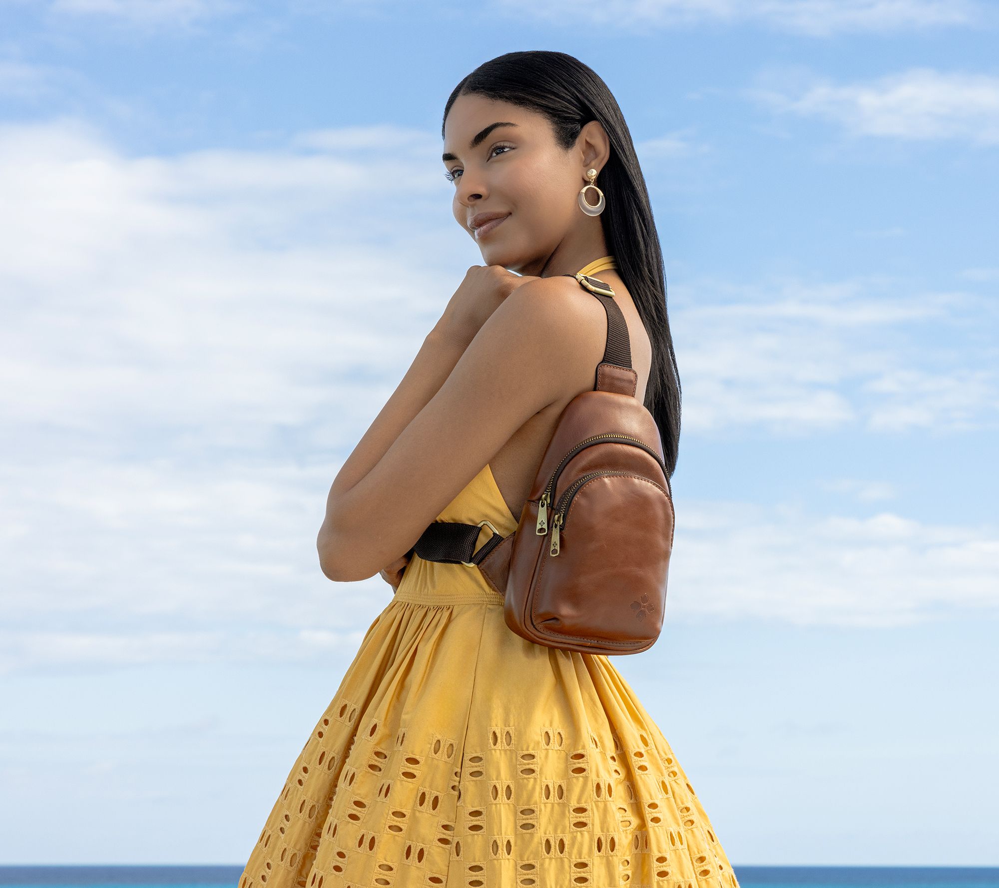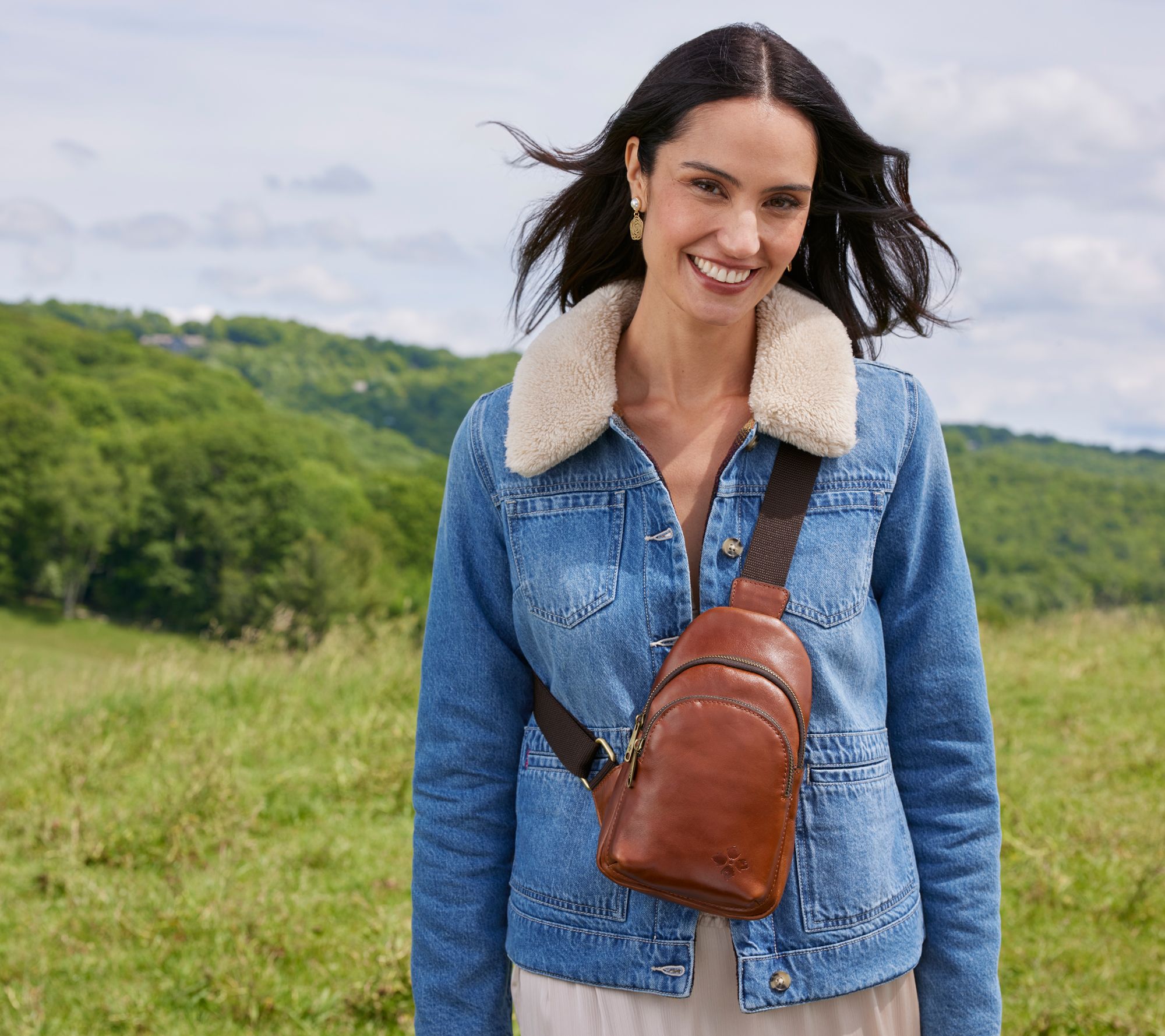 Carry your essentials in style with the Louetta leather sling. This chic bag features a wide canvas strap for comfortable wear, with plenty of pockets to keep you organized on the go. From Patricia Nash.