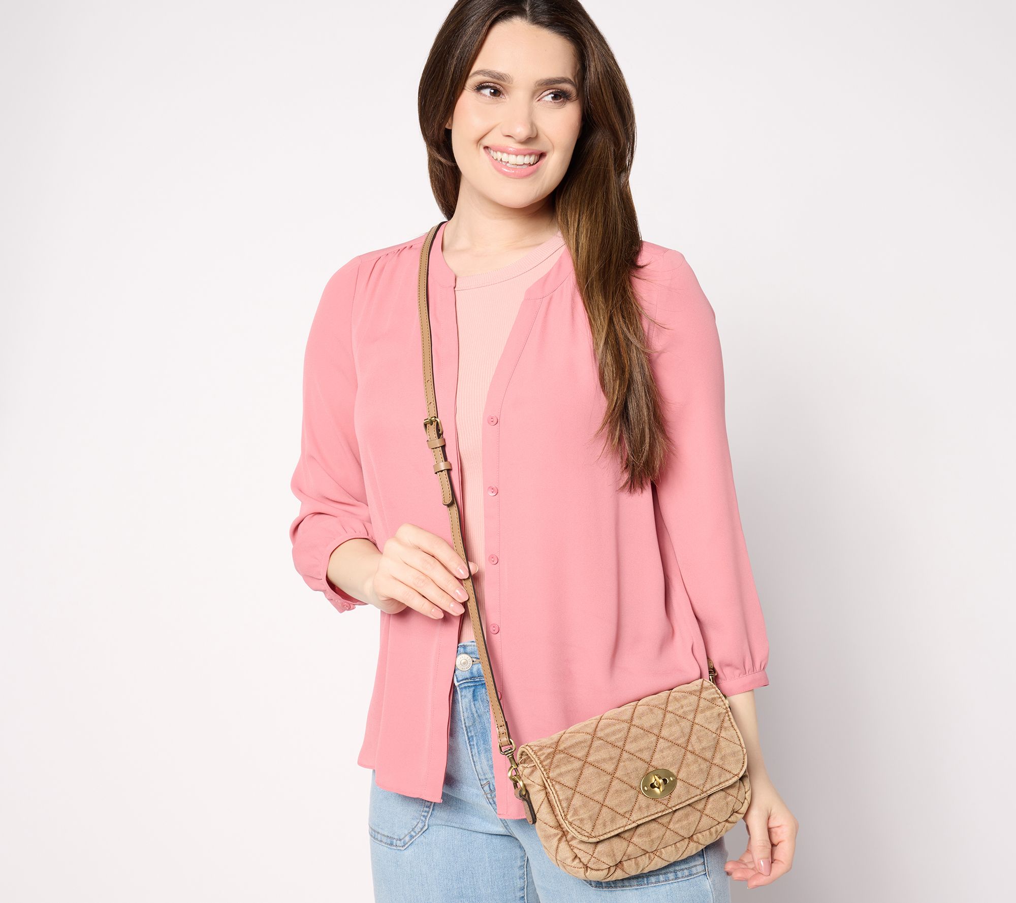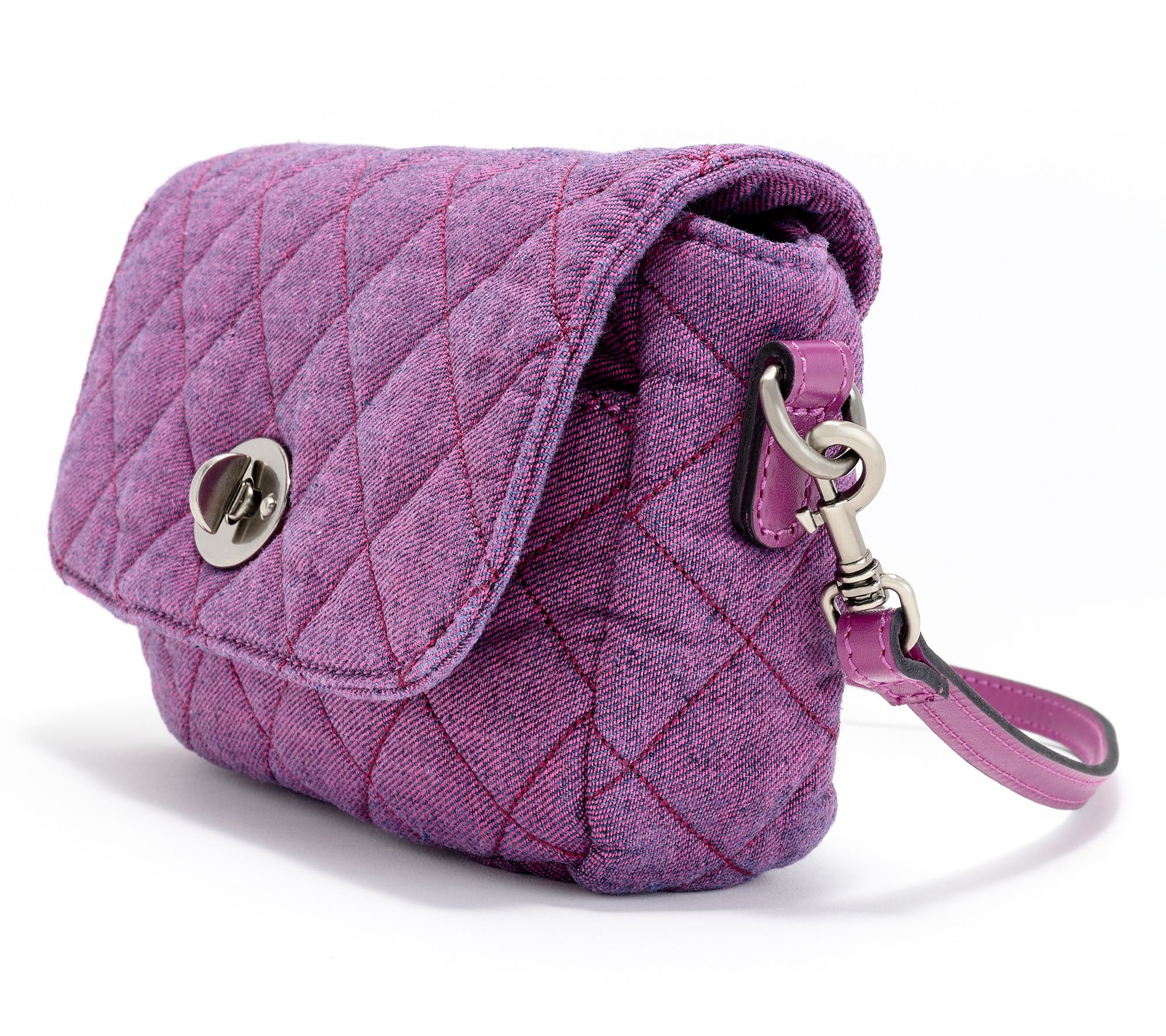 The retro 80's meets a modern silhouette in this cute and compact crossbody. The stonewashed denim quilted design brings a look of nostalgia, while the clean lines and streamlined shape makes this a contemporary style. Reach for this petite bag when just the essentials are needed and secure them with the stylish twist-lock closure. From Patricia Nash.