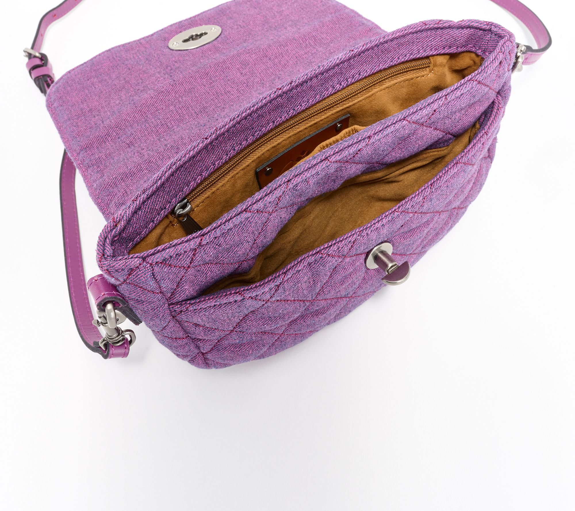• Twist lock closure, front slip pocket under flap, shoulder strap