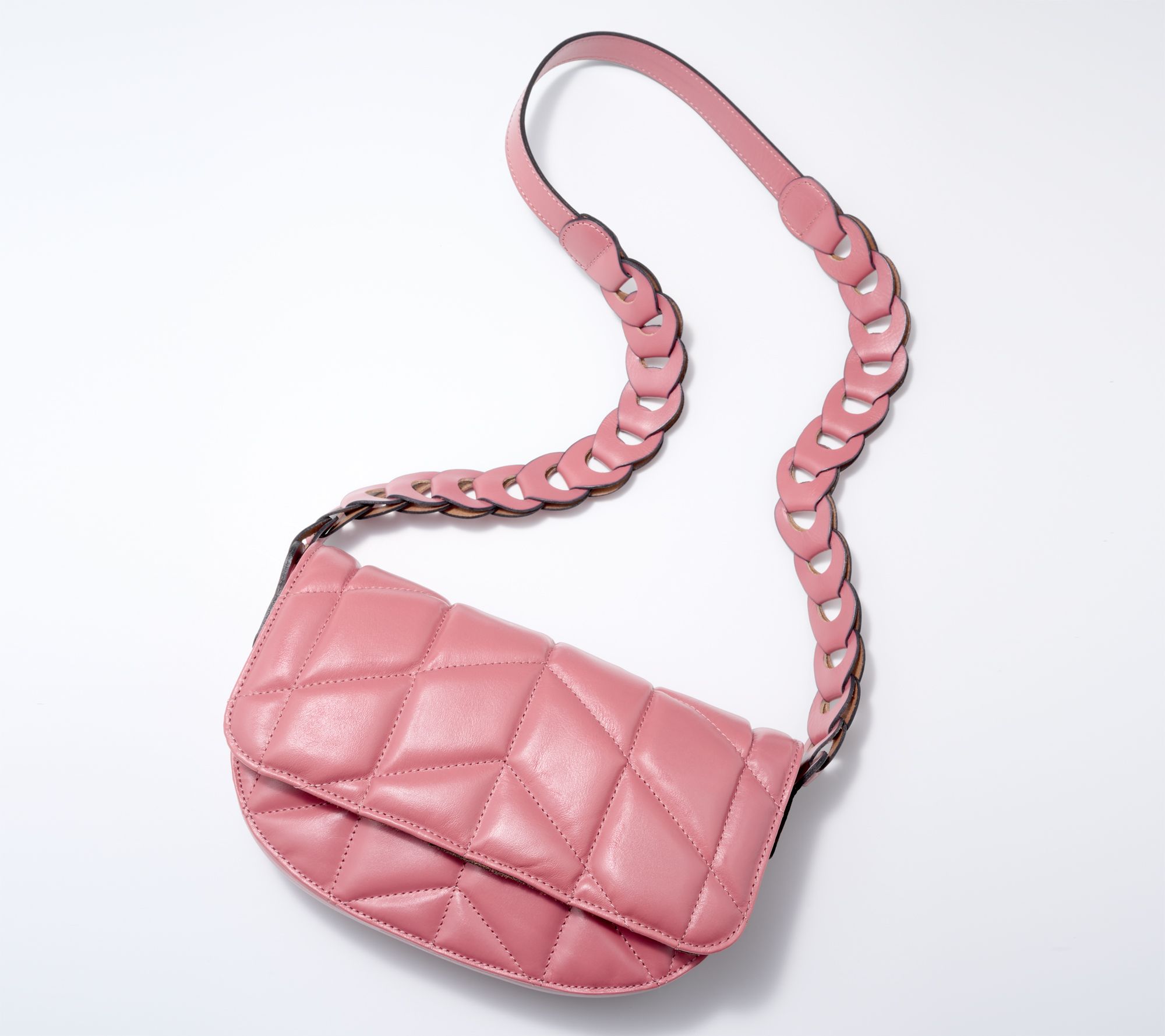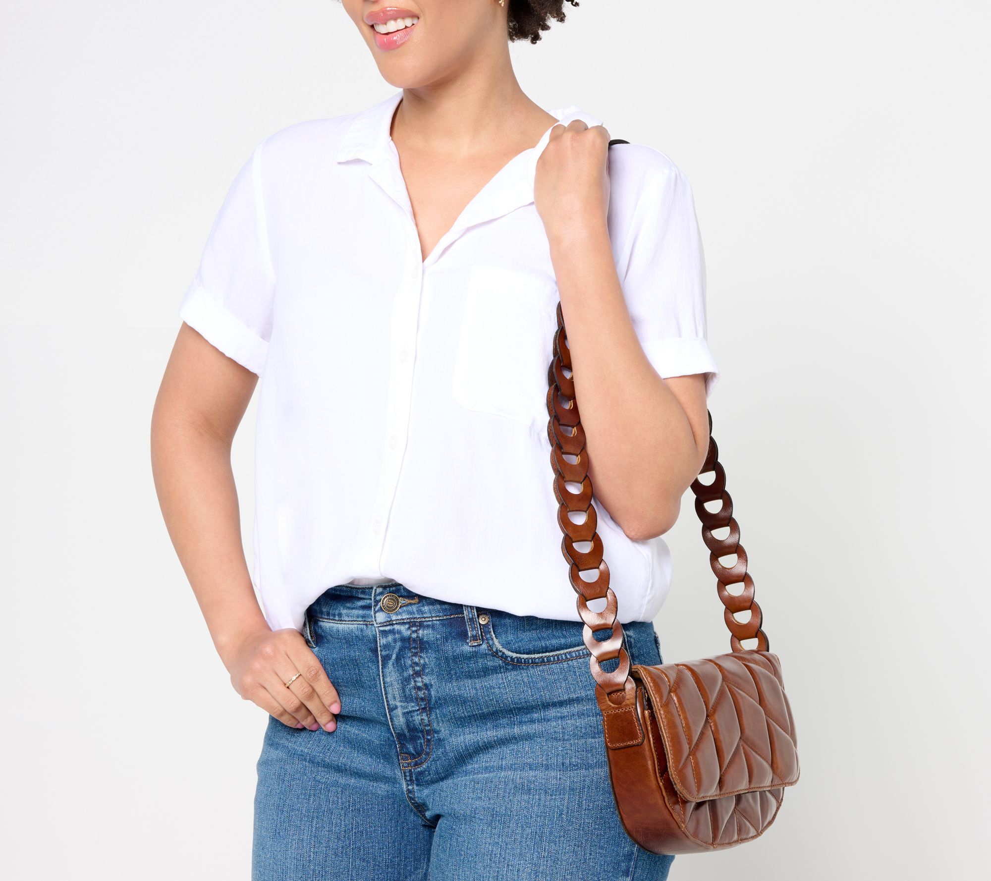 With gorgeous chevron-shaped quilting and a textured leather chain link strap, this little bag brings big personality (and so much style!). From Patricia Nash.