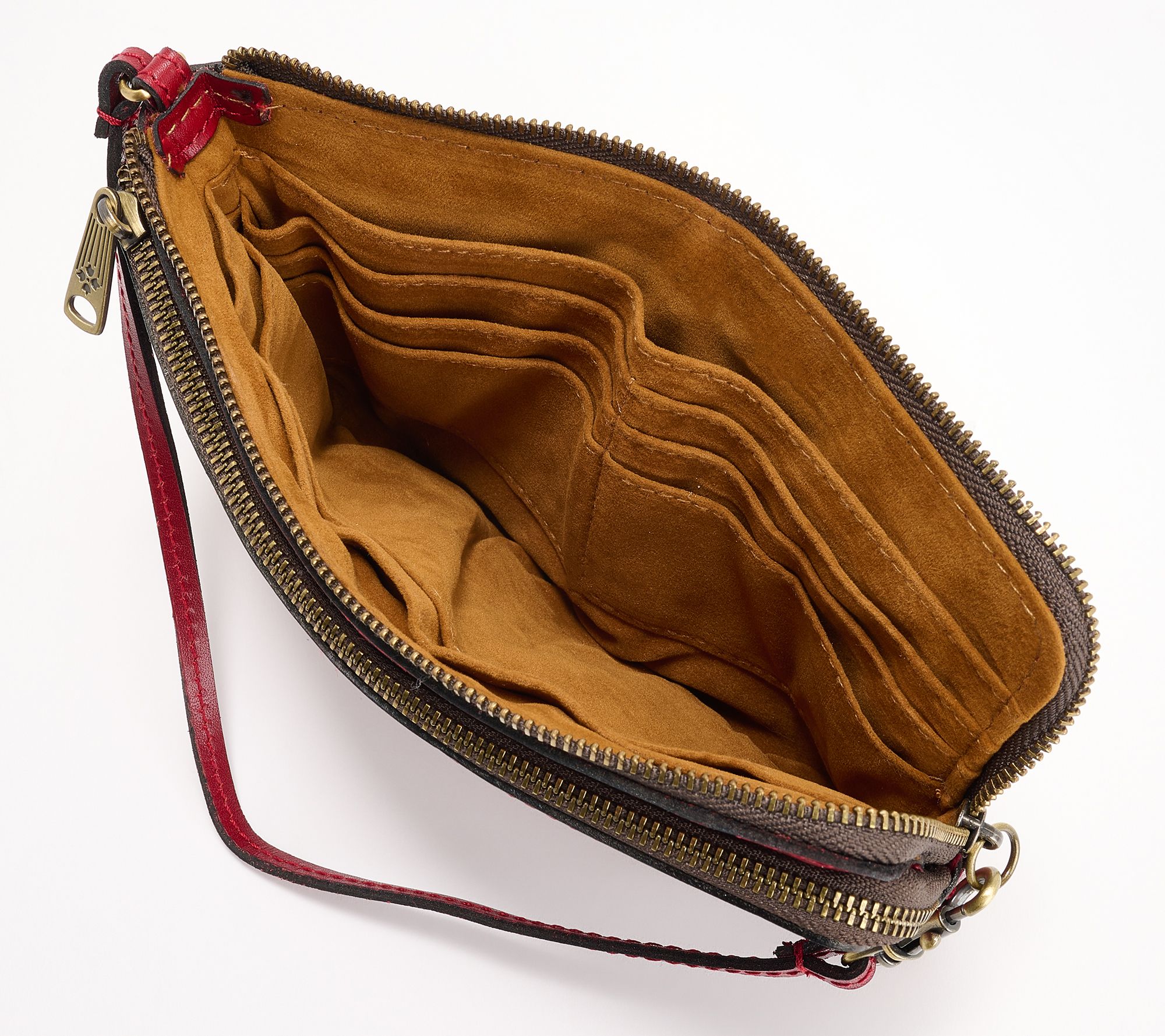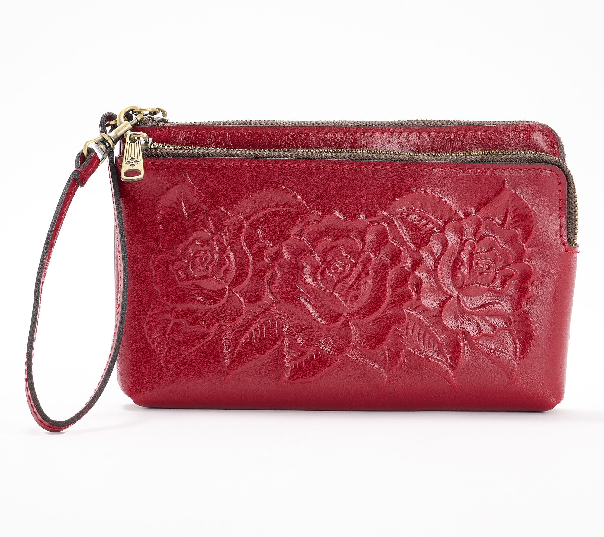 From casual lunch dates to evening events, this leather tooled wristlet adds subtle style and fabulous functionality to your fingertips. From Patricia Nash.