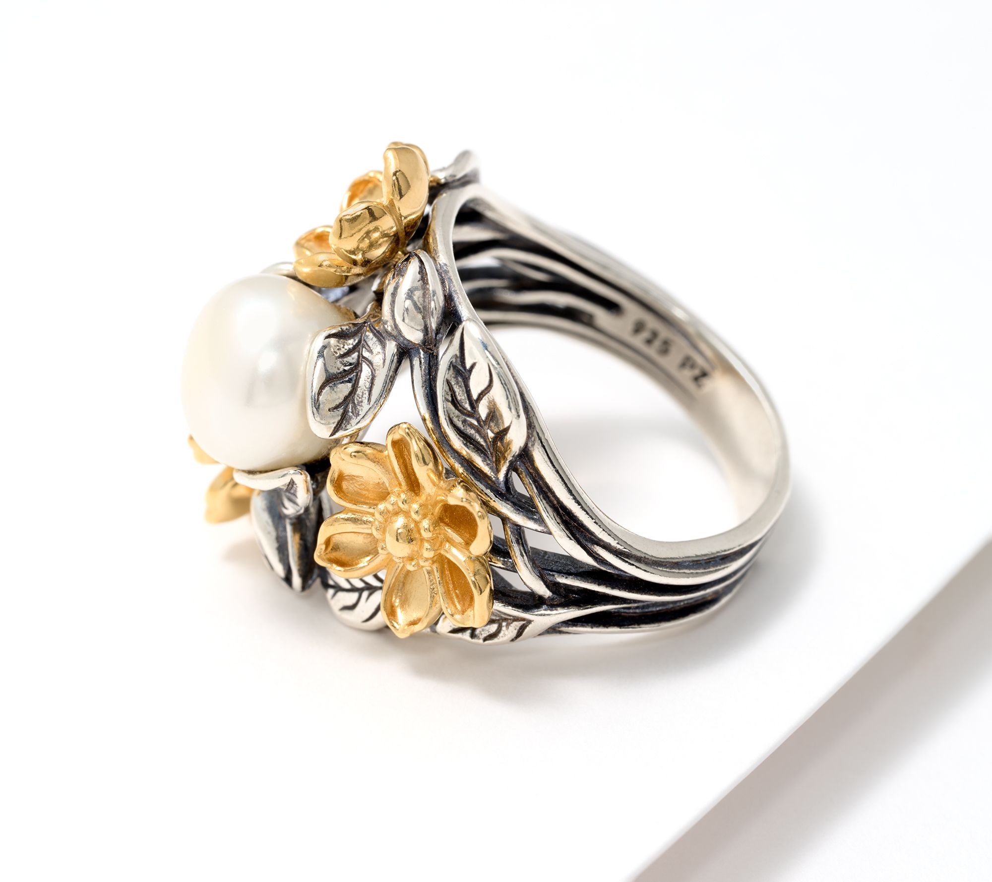 "As Is" Or Paz Floral Cultured Pearl Ring, Sterling Silver