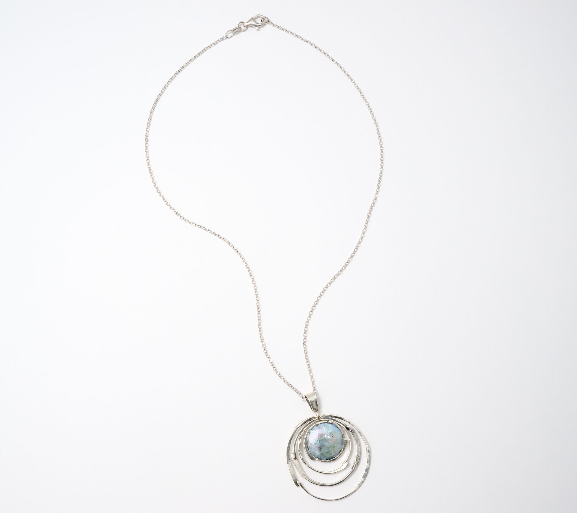 "As Is" Or Paz Roman Glass Pendant with Chain, Sterling Silver