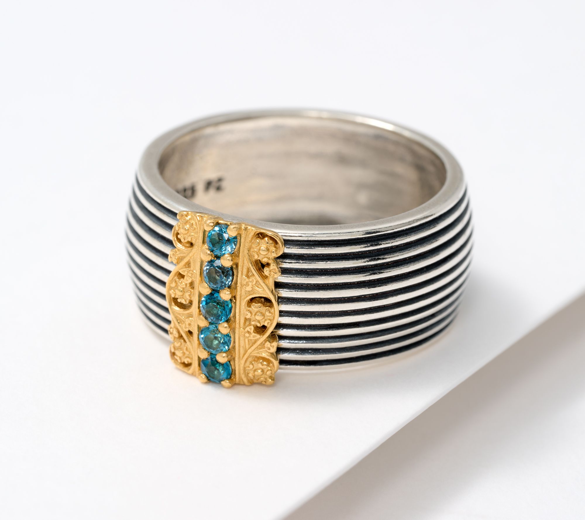 "As Is" Or Paz Two-Tone Gemstone Lace Ring, Sterling Silver & 14K