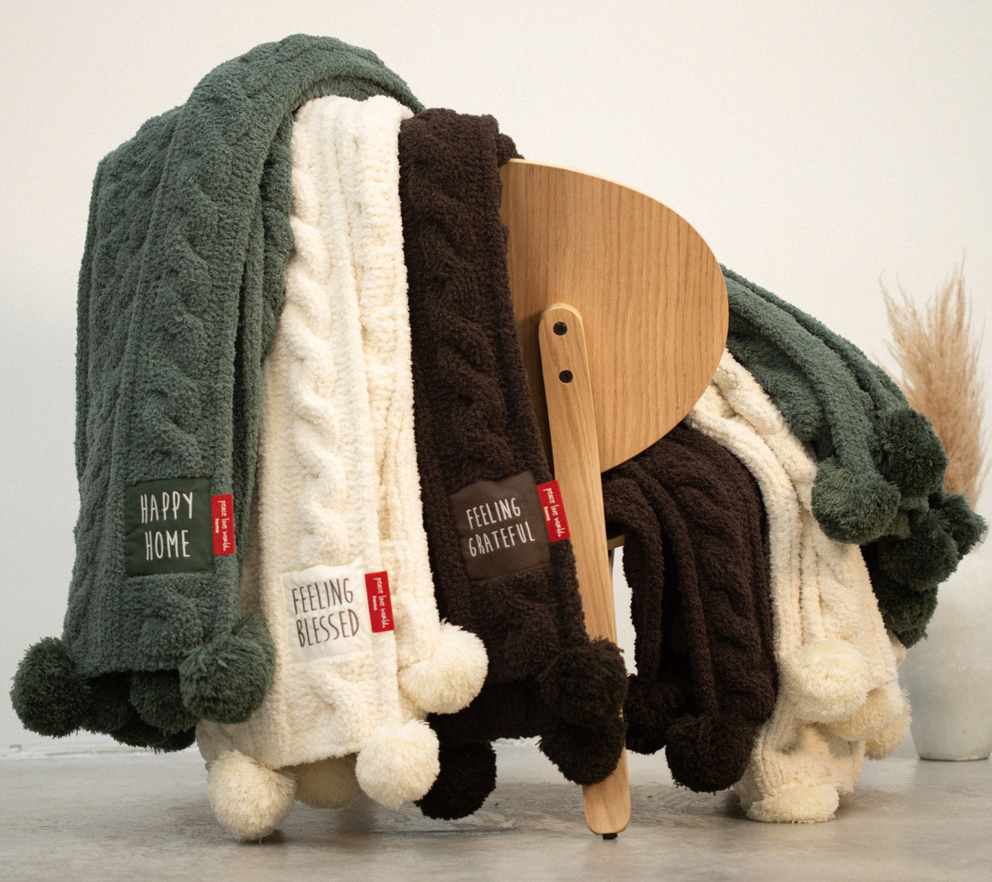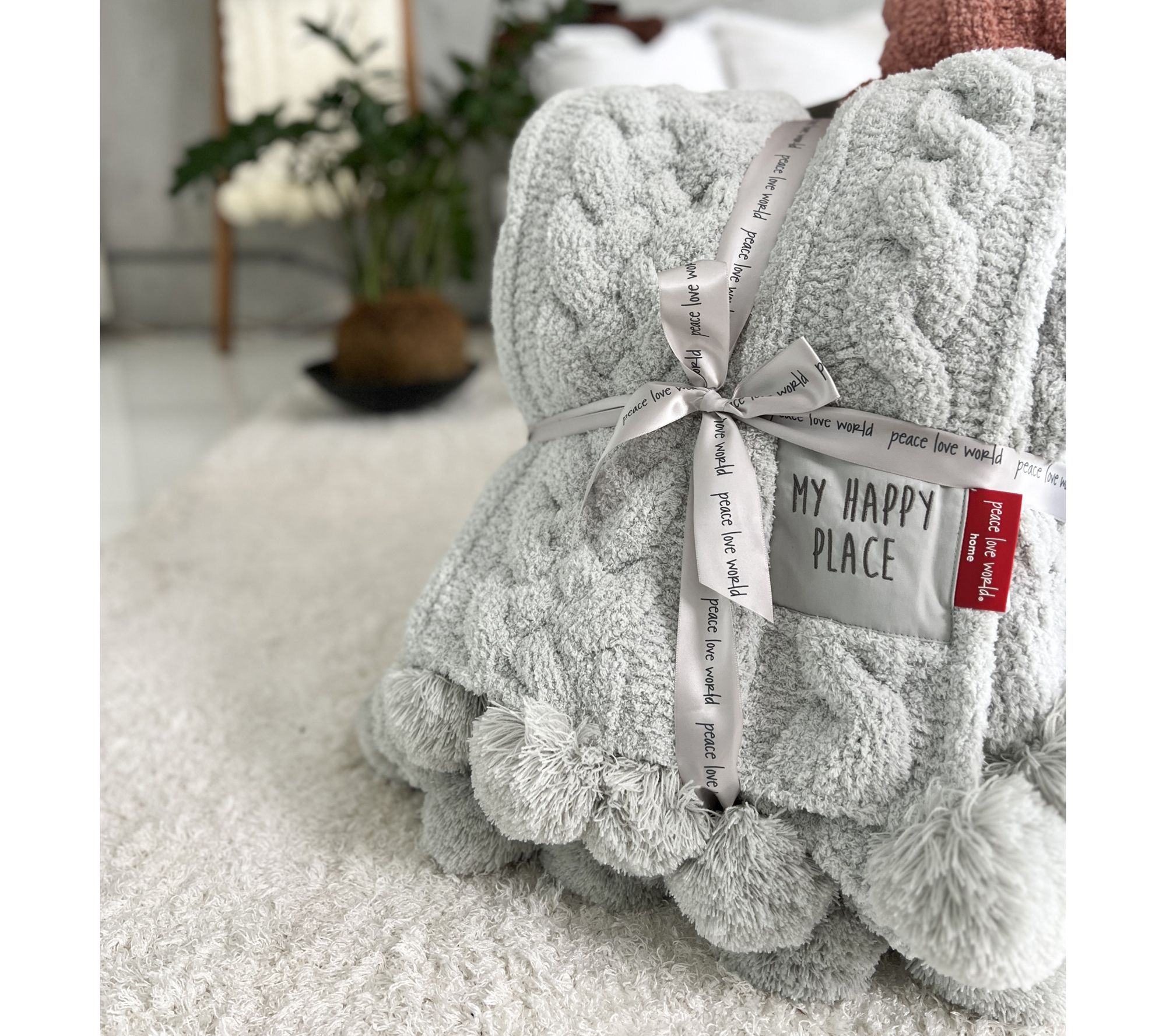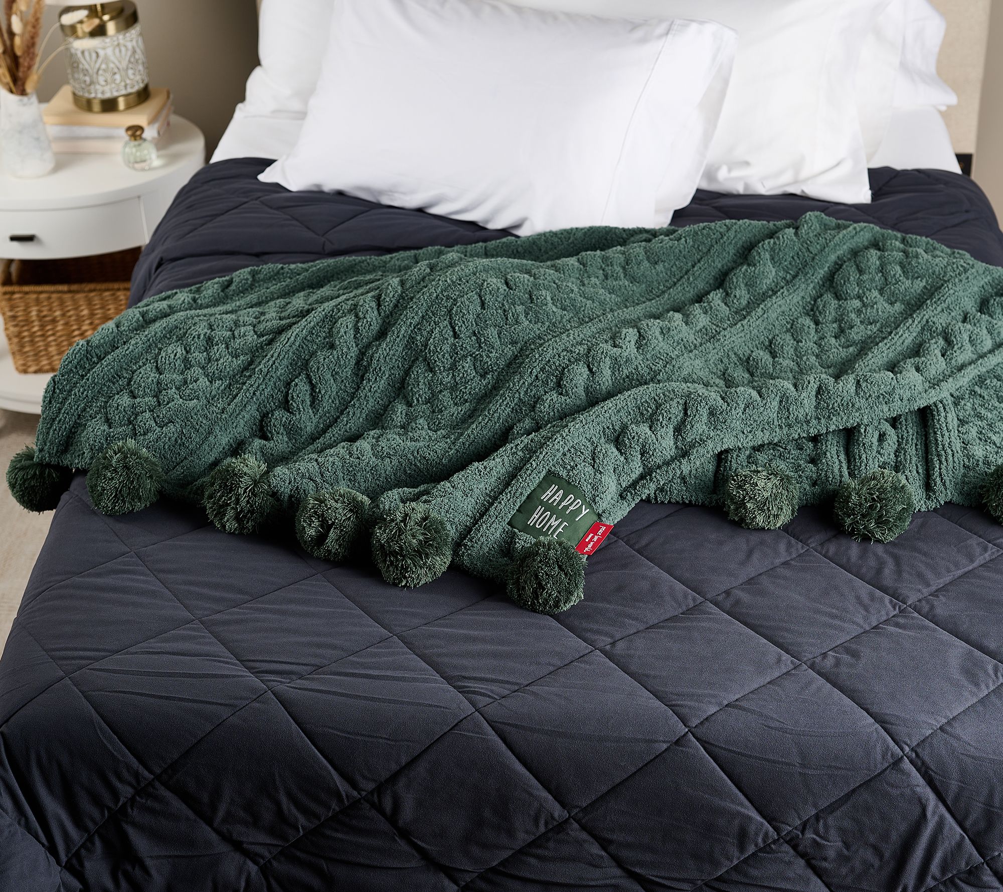 Oh-so comfy -- and cute to boot (we're loving the pom-poms!), this cable-knit blanket is as cozy as a winter sweater. Perfect for self-pampering or gift giving, the lush layer chases away the chill while adding a welcoming touch of texture to your decor. From Peace Love World.