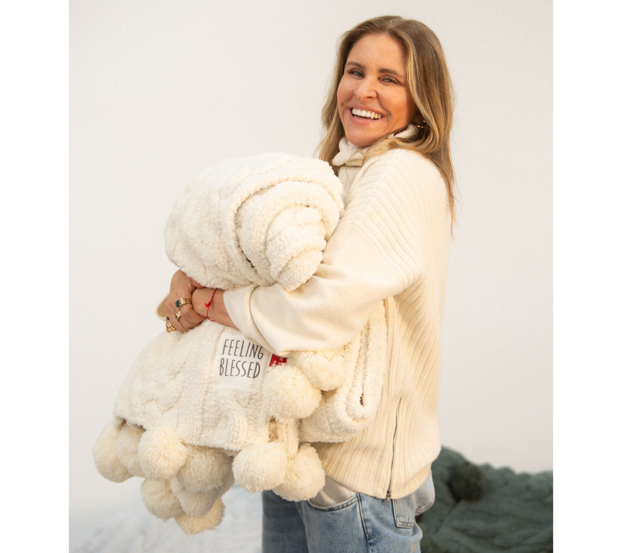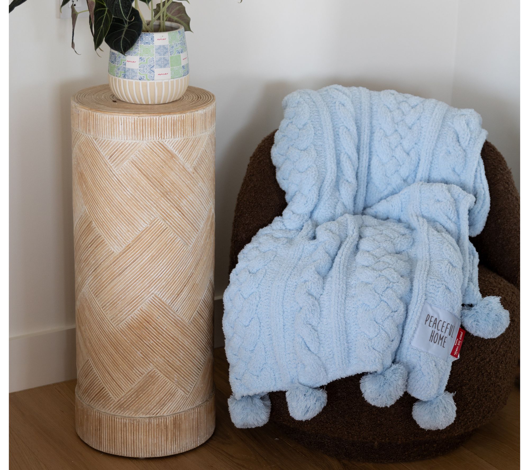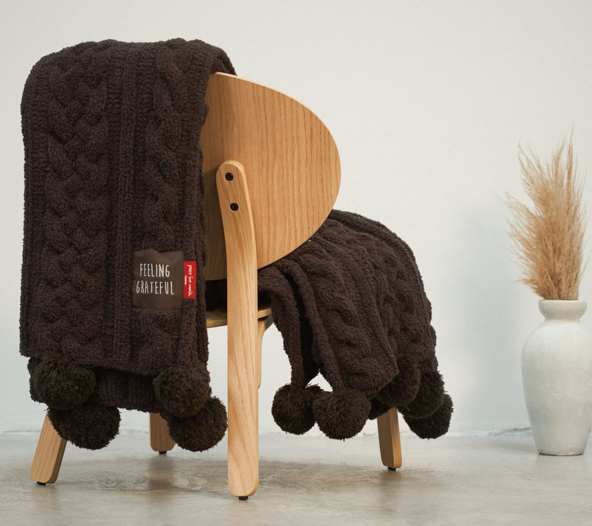 Oh-so comfy -- and cute to boot (we're loving the pom-poms!), this cable-knit blanket is as cozy as a winter sweater. Perfect for self-pampering or gift giving, the lush layer chases away the chill while adding a welcoming touch of texture to your decor. From Peace Love World.