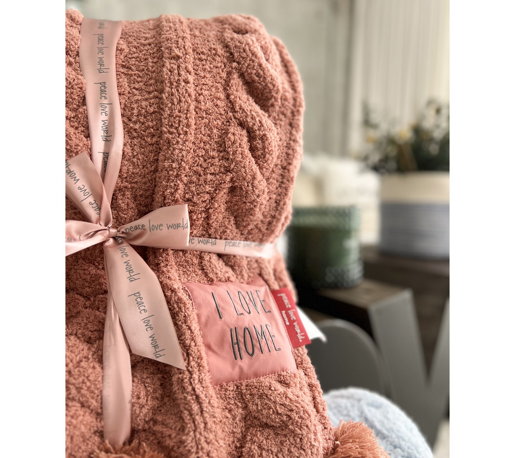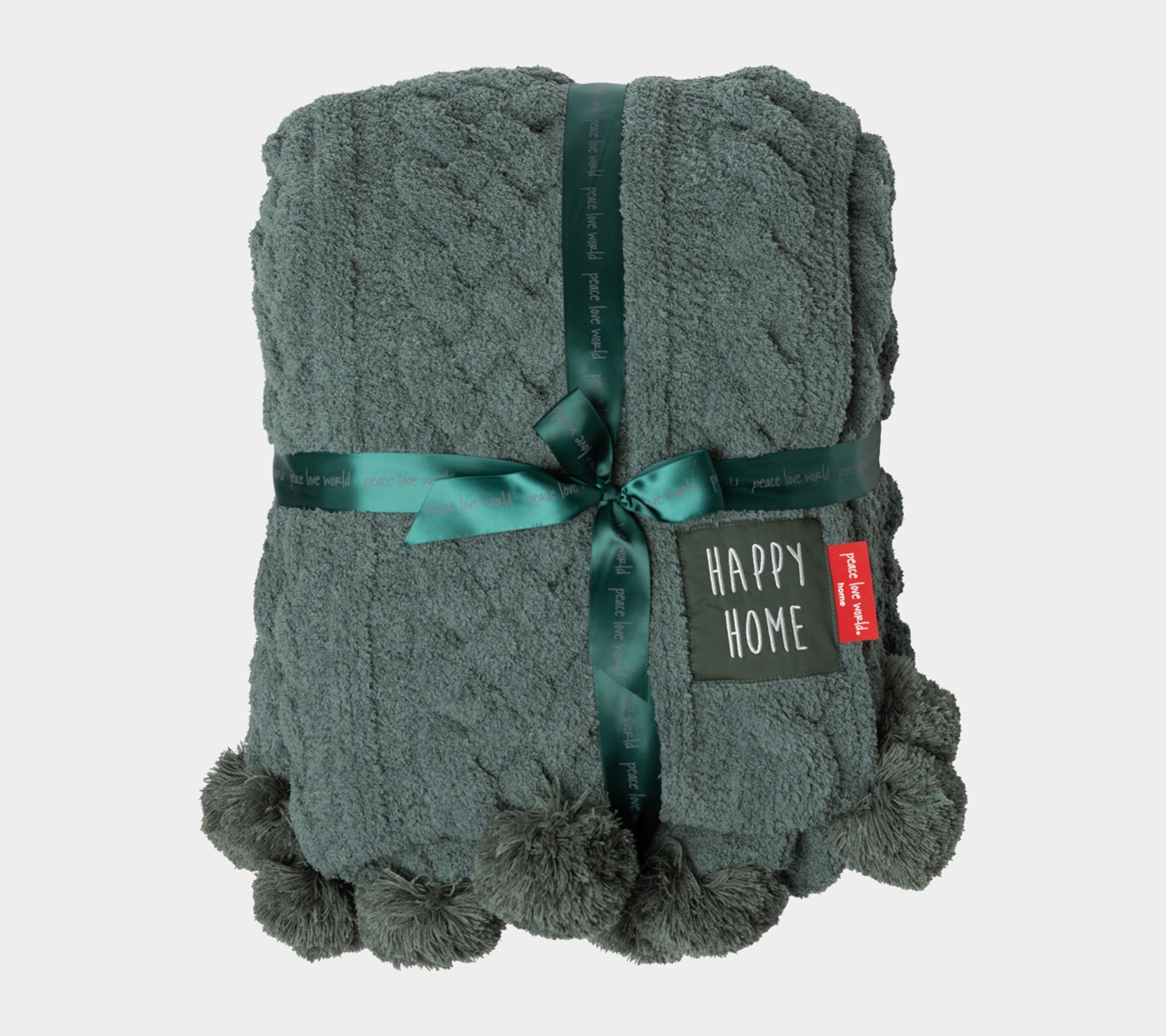 "As Is" Peace Love World 70x60 Pom Pom Cable Knit Blanket