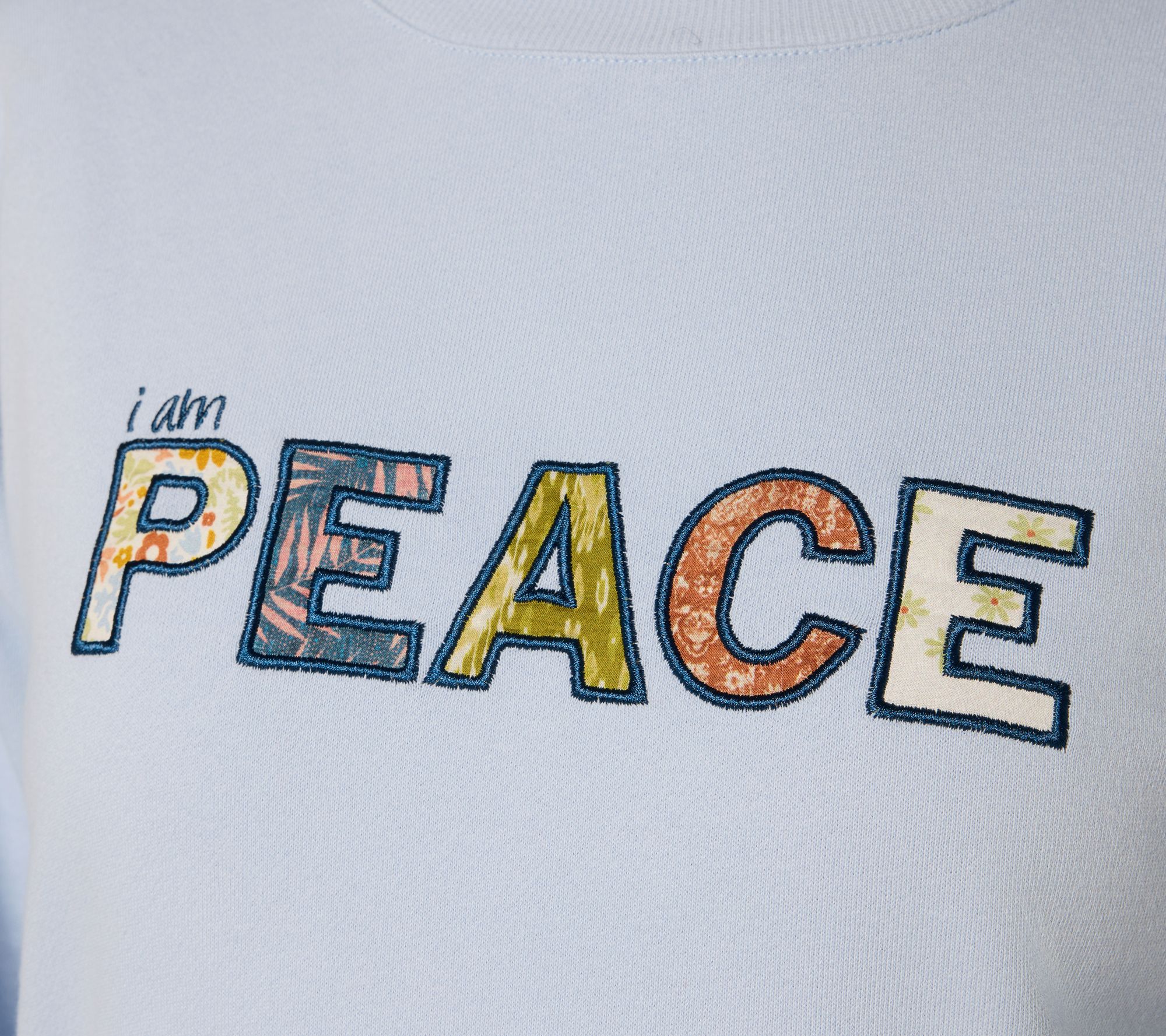 "As Is" Peace Love World Affirmation Applique Crew Neck Pullover