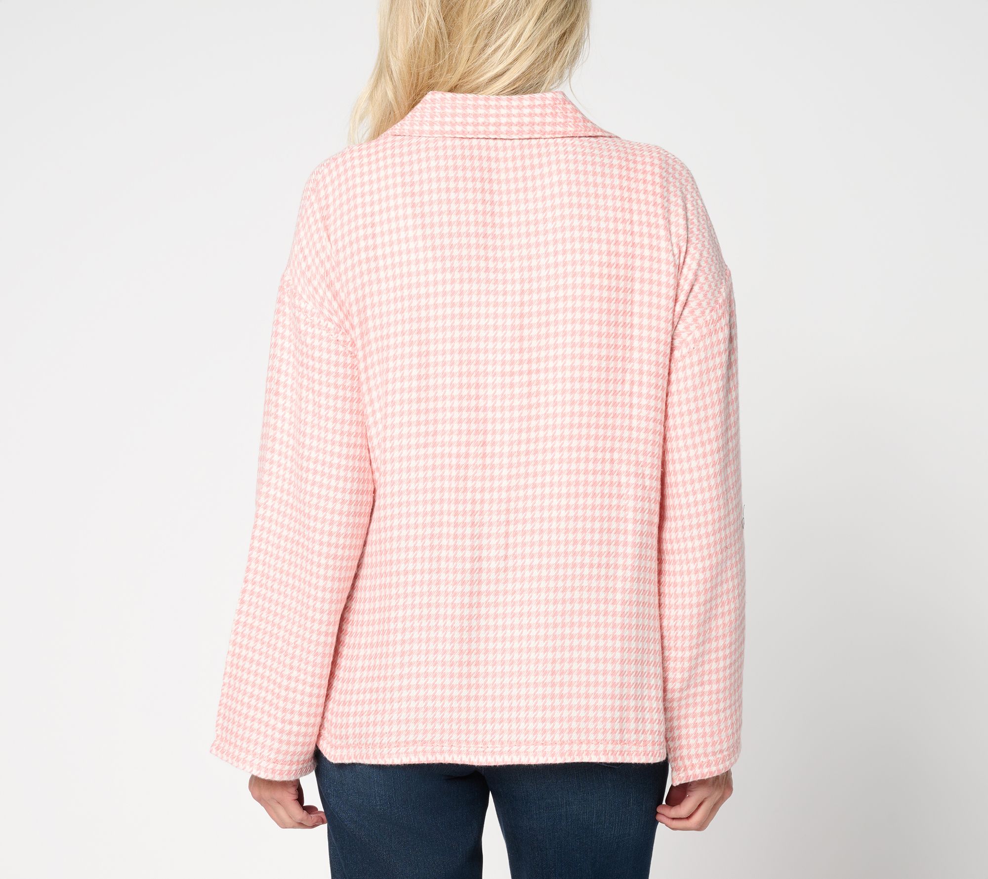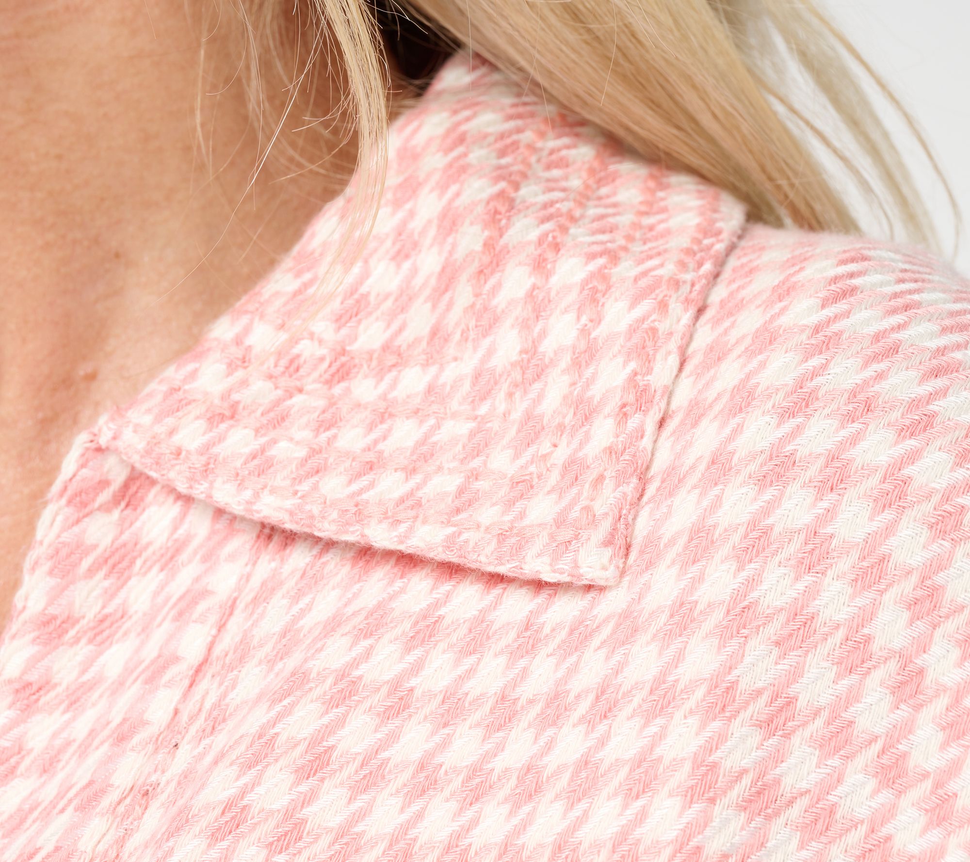 • Features: houndstooth design, brushed twill, split V-neckline, collar, long sleeves, drop shoulder