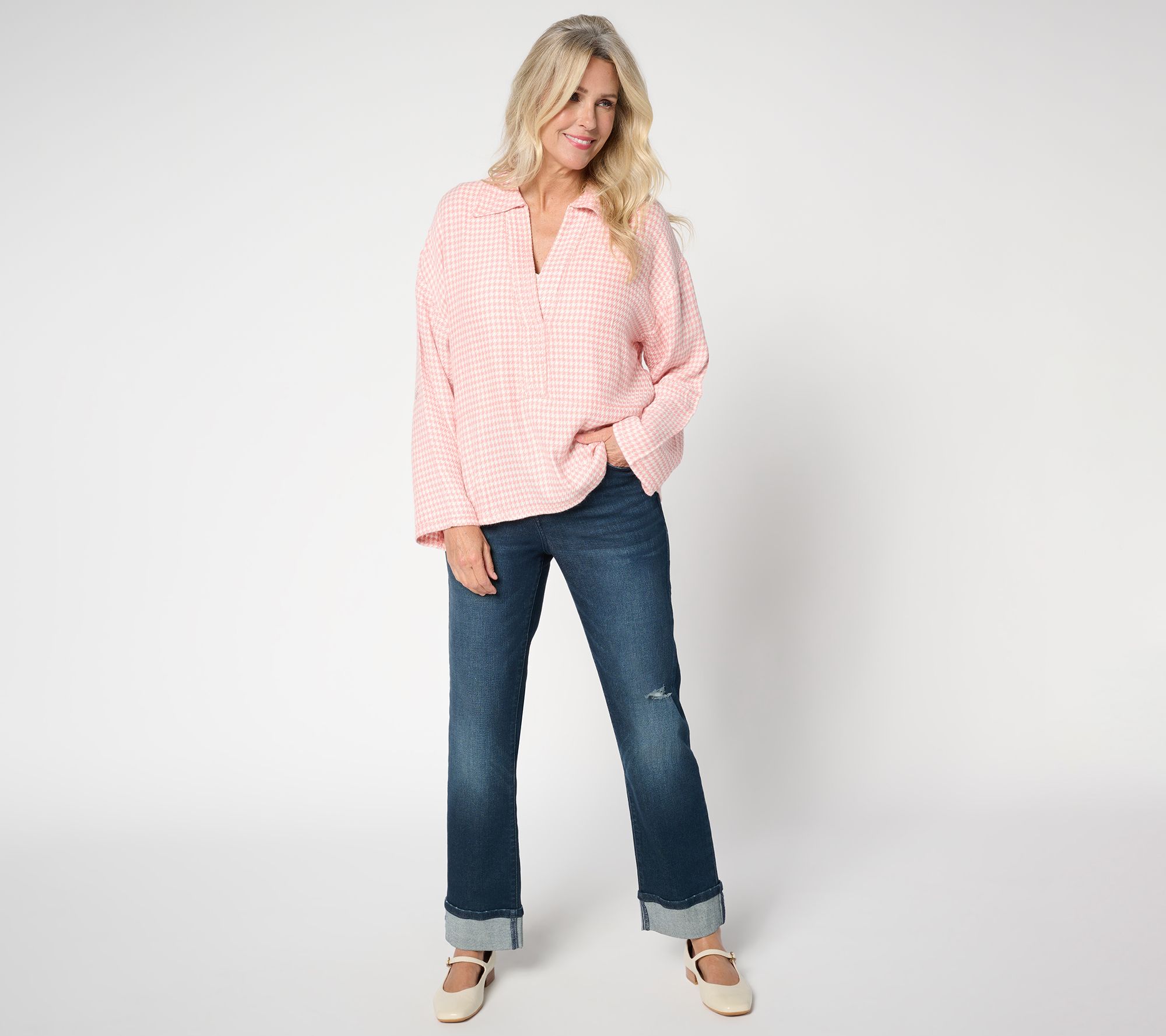 Head out for the day wrapped in rich texture and a classic pattern with this Boheme houndstooth popover blouse. Its brushed twill feel and relaxed fit make it a stellar choice for running errands, gathering with friends, or dressing up your jeans for dinner out. From Peace Love World.