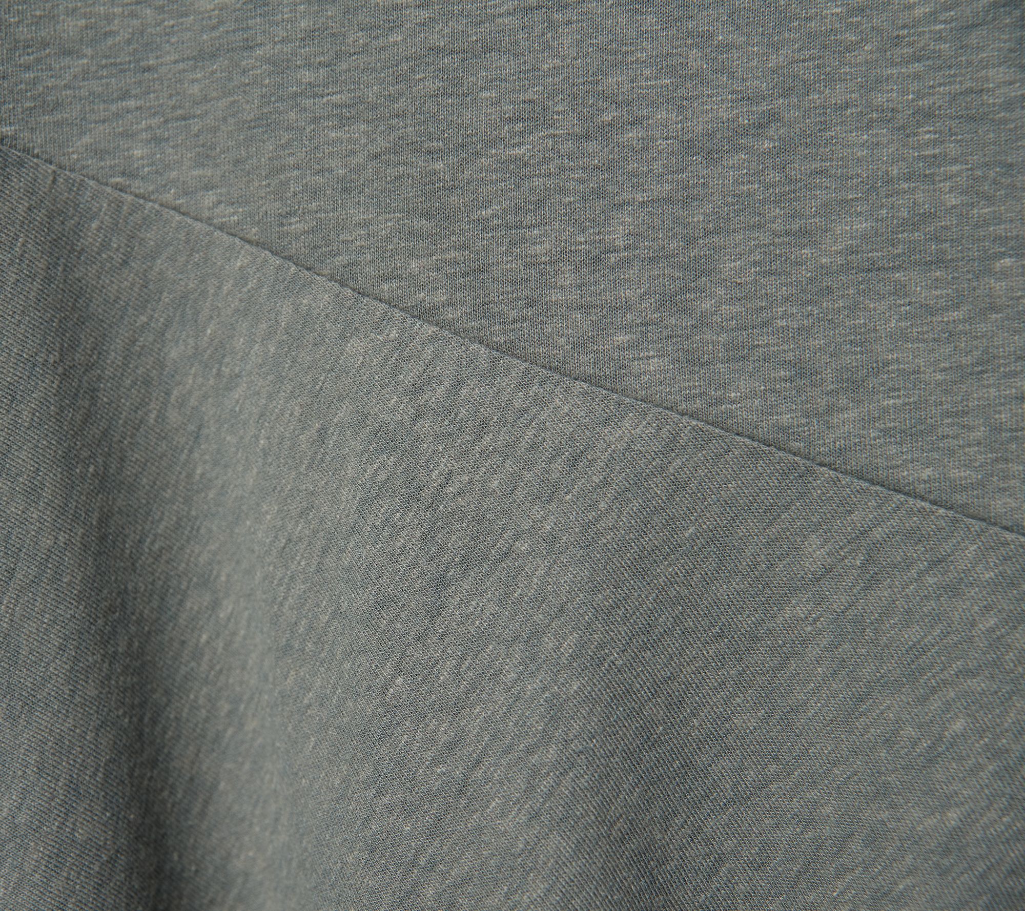 Features: foldover flat elastic waistband, raw edge hem, faux wrap front panel