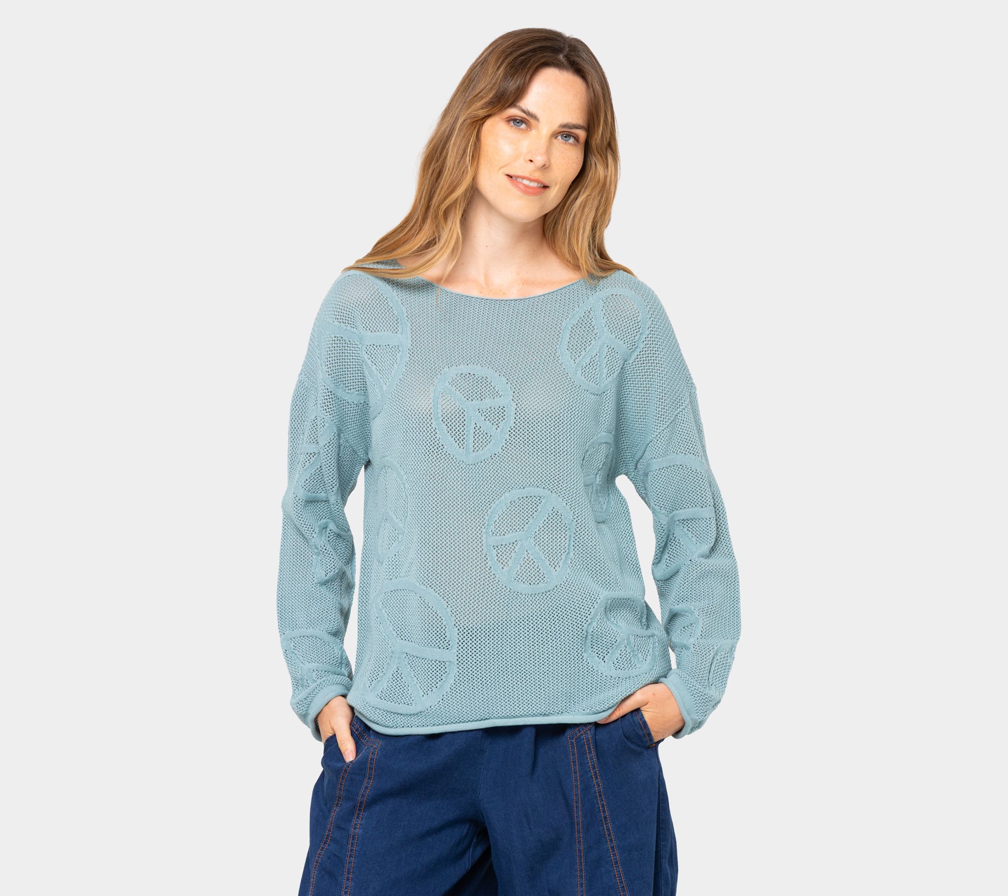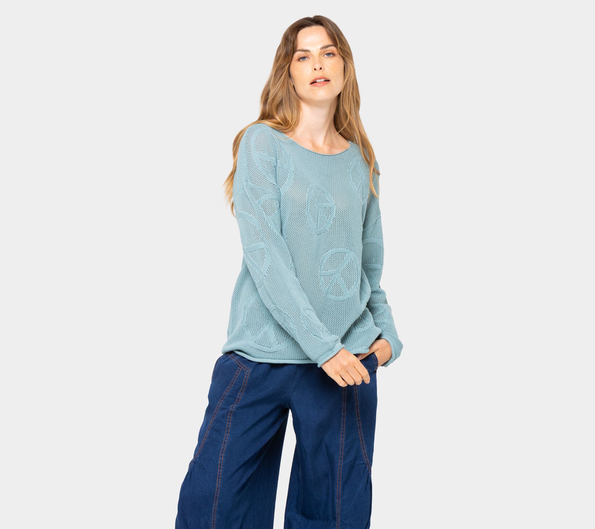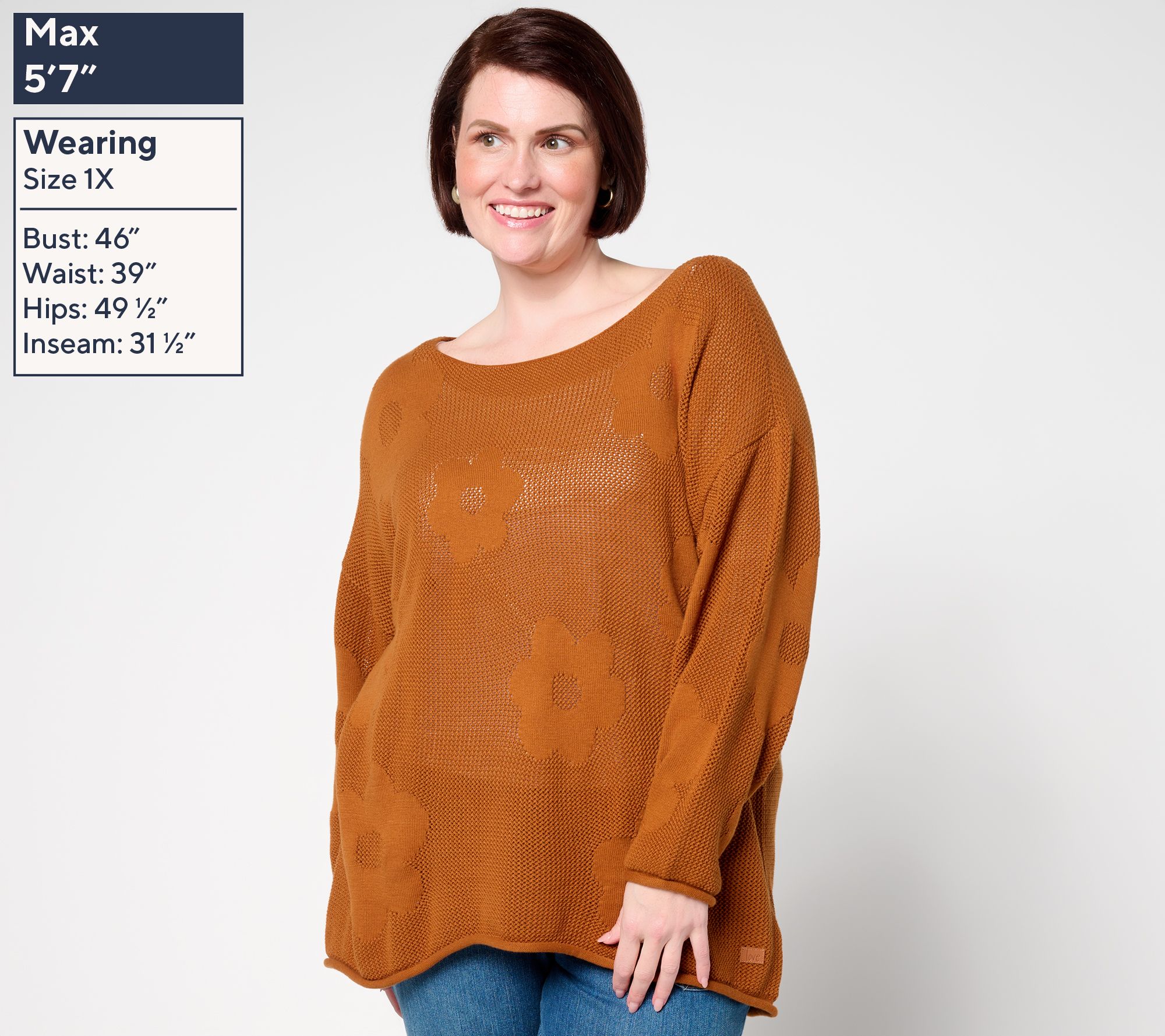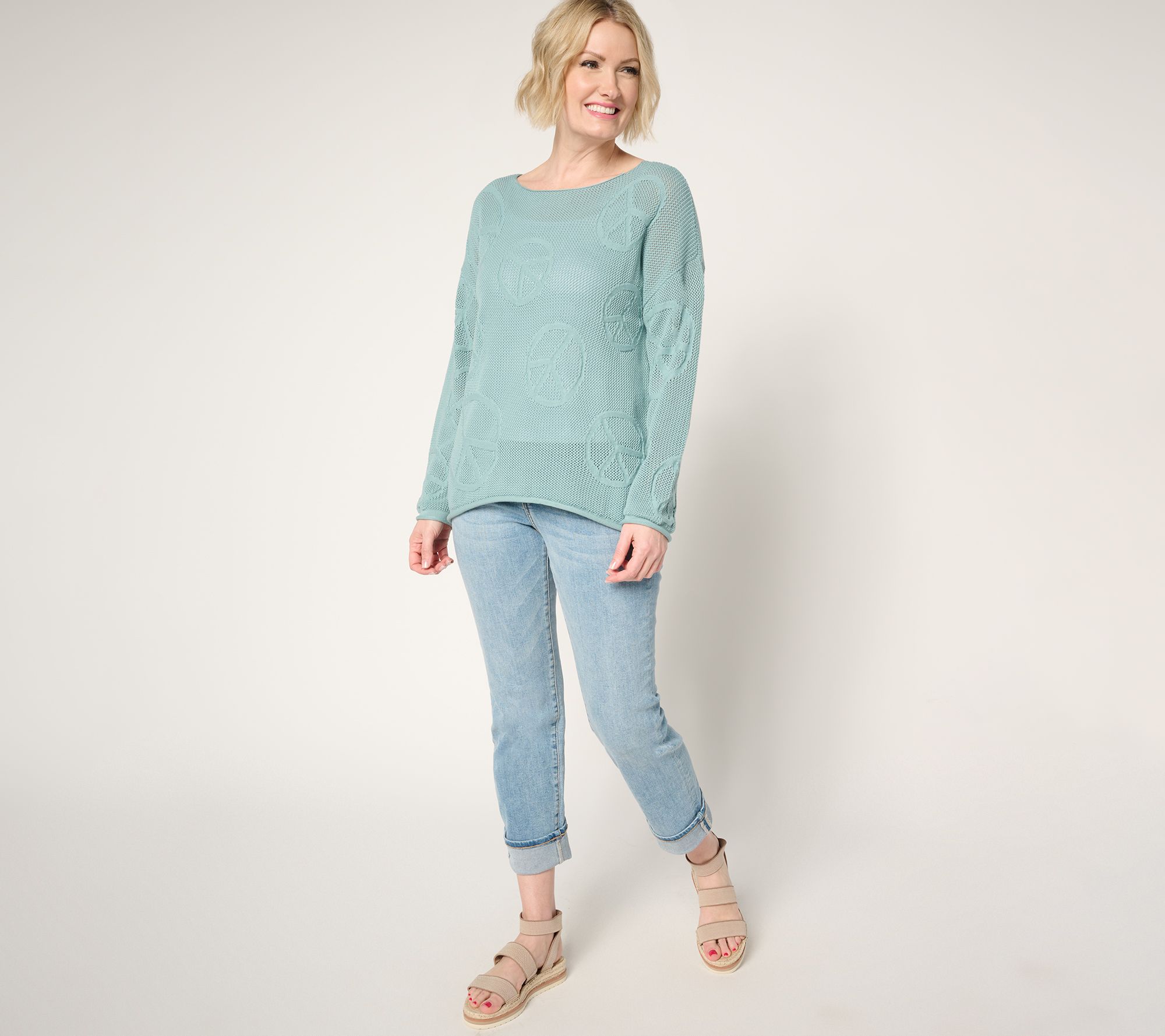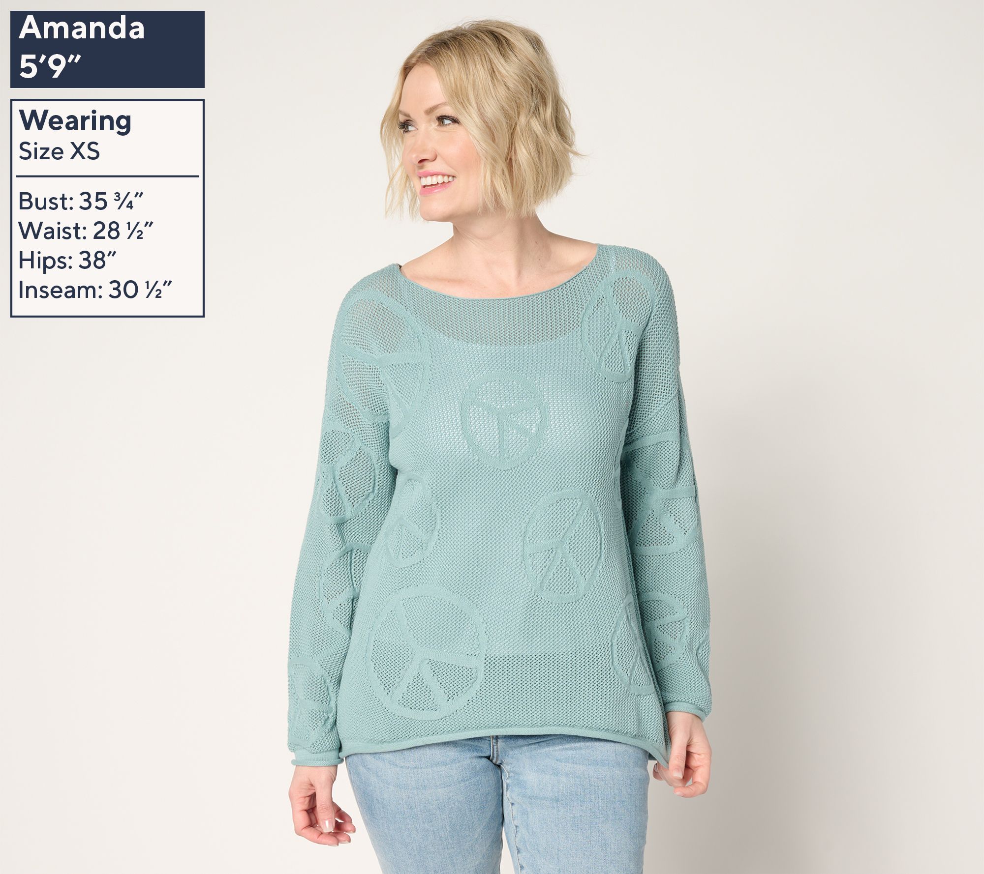 A conventional cover-up? Not when it's from the Boheme collection by Peace Love World. This summer-weight sweater features cheerful tone-on-tone motifs with boho inspiration you'll be vibing with all sunny-season long. Pop it over camis and tanks and pair with your fave denim, skirts, shorts, or crops. From Peace Love World.