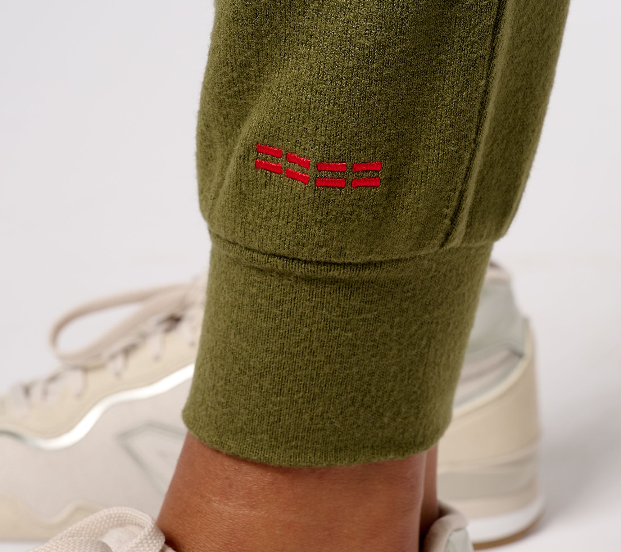 • Features: two-piece folded waistband with encased elastic, drawcord details, separated leg cuff