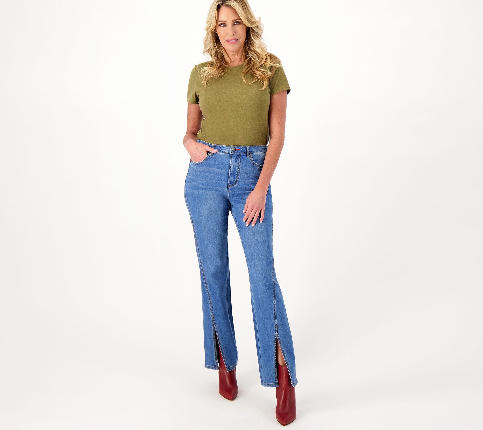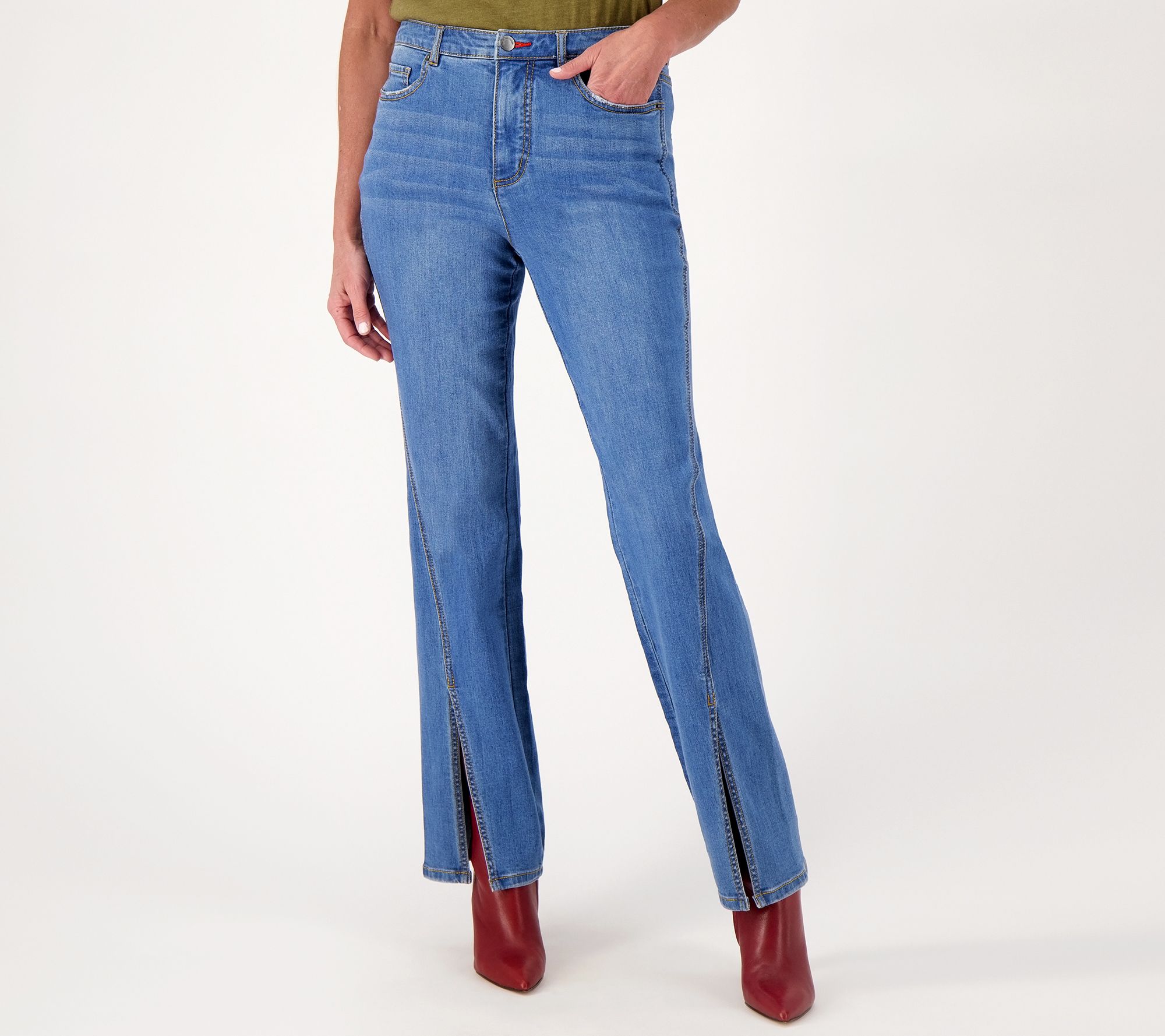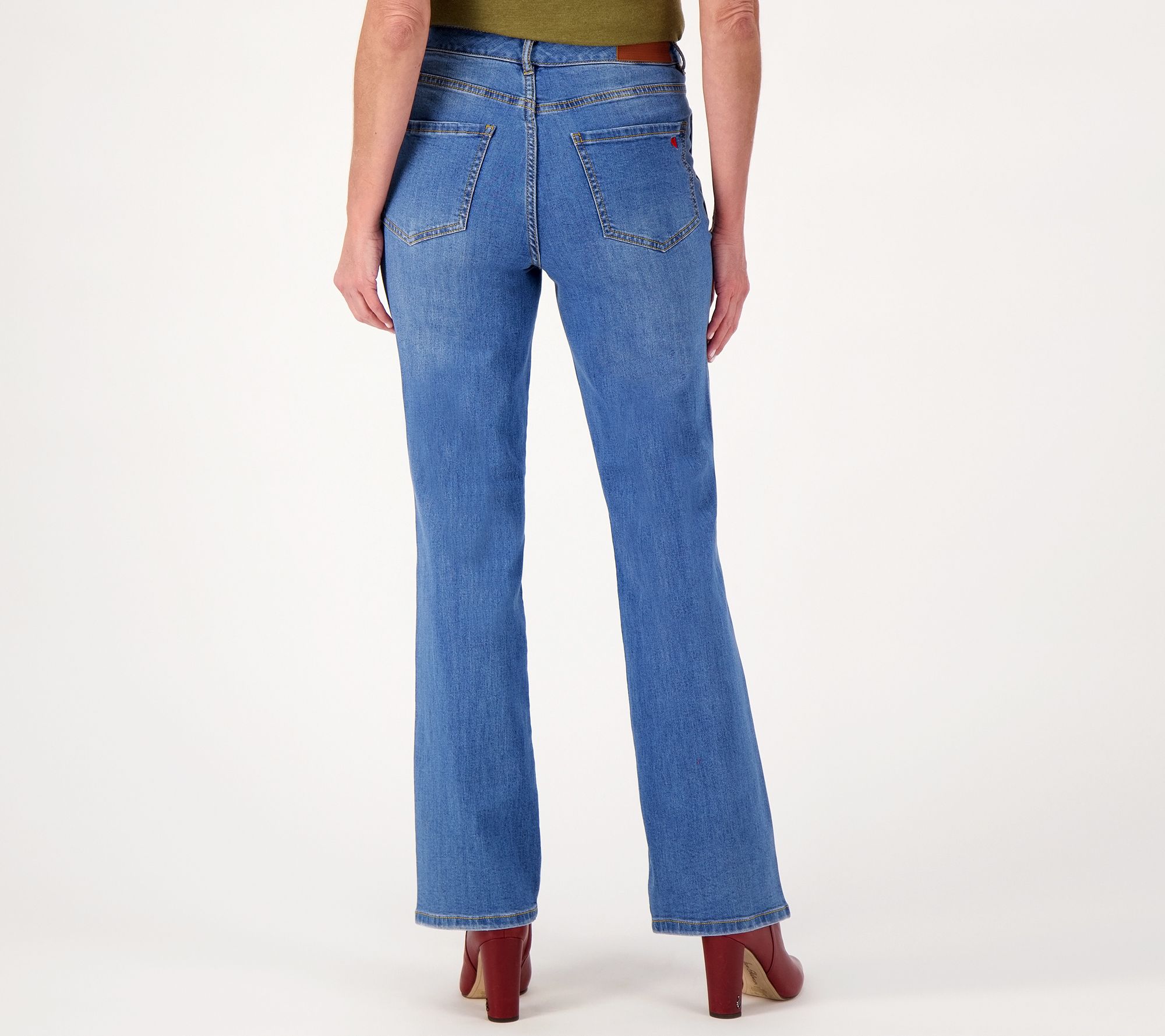 Leg Shape: boot-cut leg; widens slightly from knee to leg opening