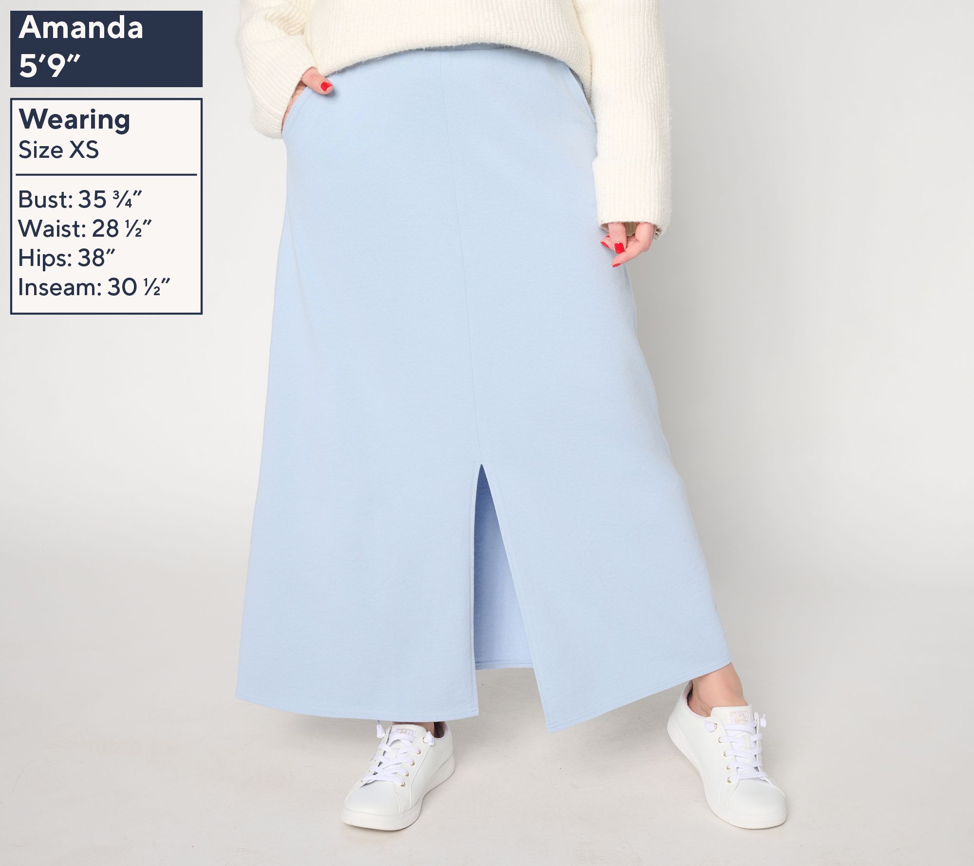 Slip it on and steal the show. Elevate casual looks with the simple pull-on ease of this cotton-rich skirt. Stroll through city streets or enjoy a latte at your favorite coffeehouse knowing you slay with every sip.The front vent provides plenty of flexibility to keep things roomy, so you can move comfortably throughout your day. From Peace Love World.