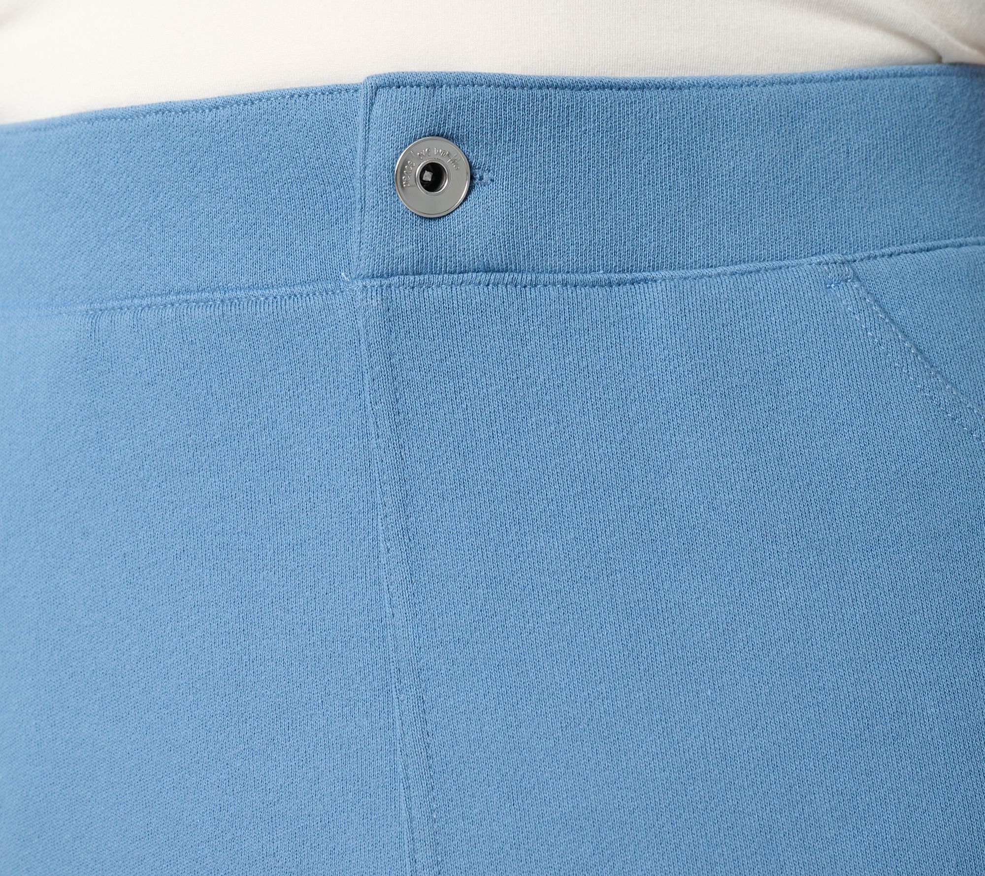 • Features: pull-on style, flat elastic waistband, functional button closure, single darts, back patch pockets, scoop pockets, front and back diagonal seaming, four front and back panels, side seaming details