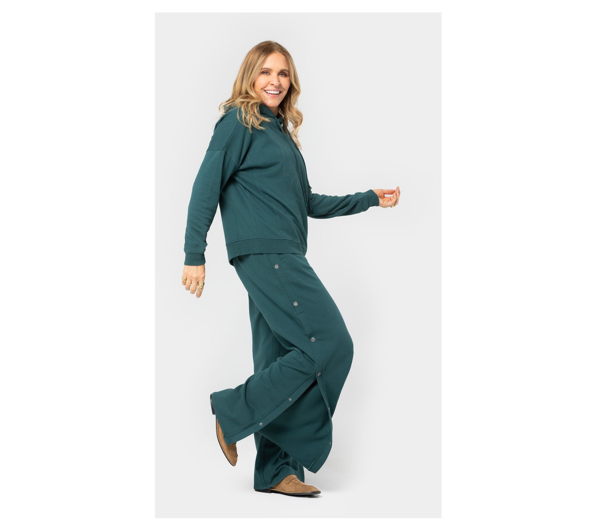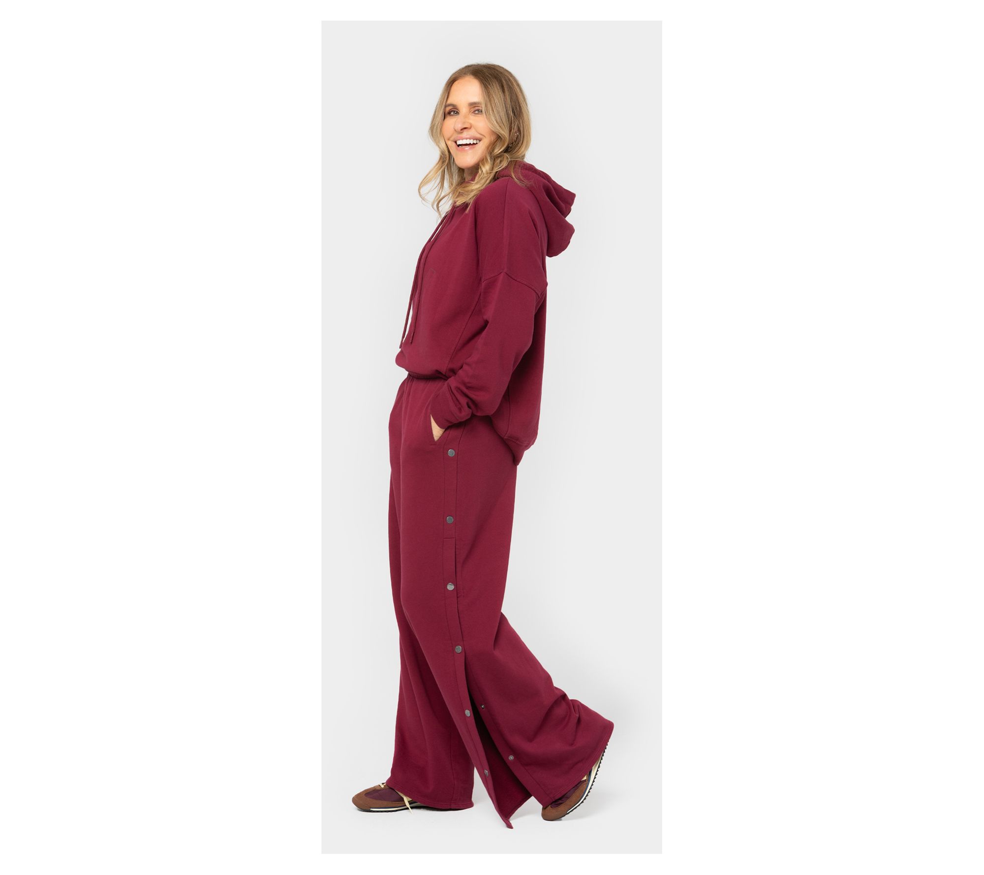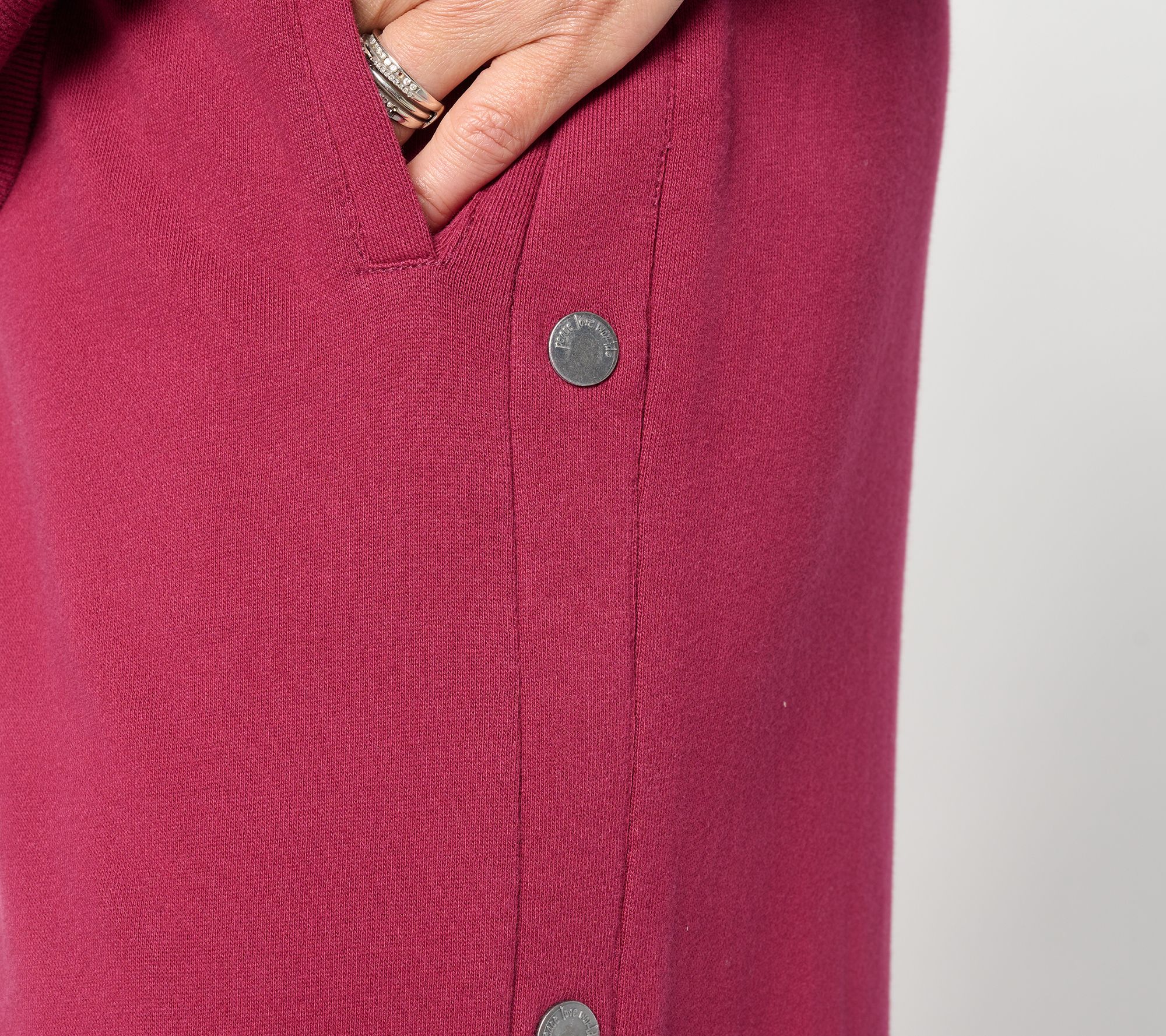 Oh, snap! These Peace Love World French terry pants work overtime, offering easygoing comfort for downtime as well as a chic alternative to denim for casual meet-ups. The wide leg with functional snaps at the outseam invite you to move through the day with confidence, but their casual cuteness is what keeps them in rotation. From Peace Love World.