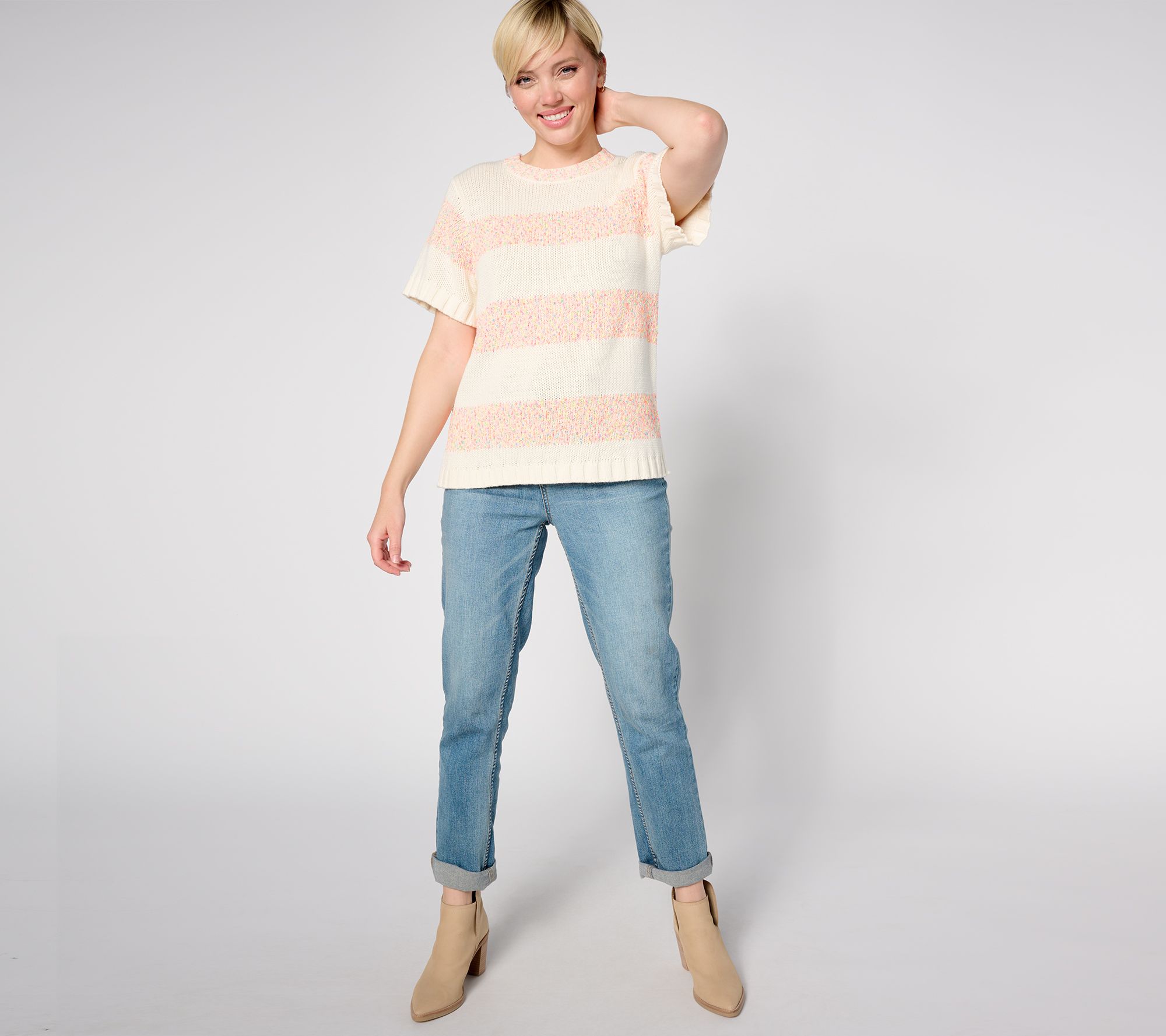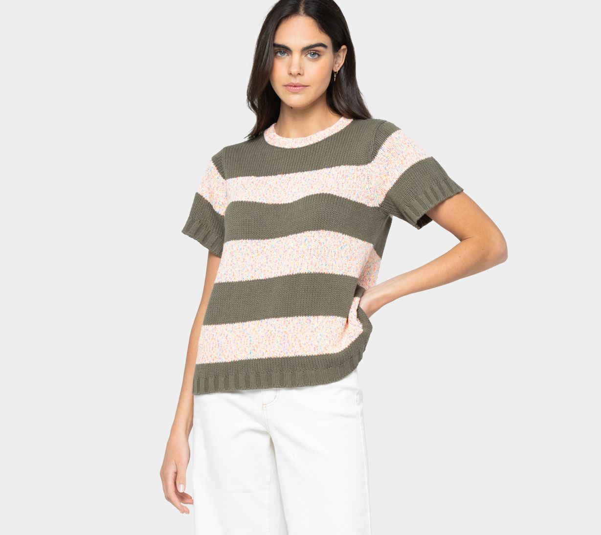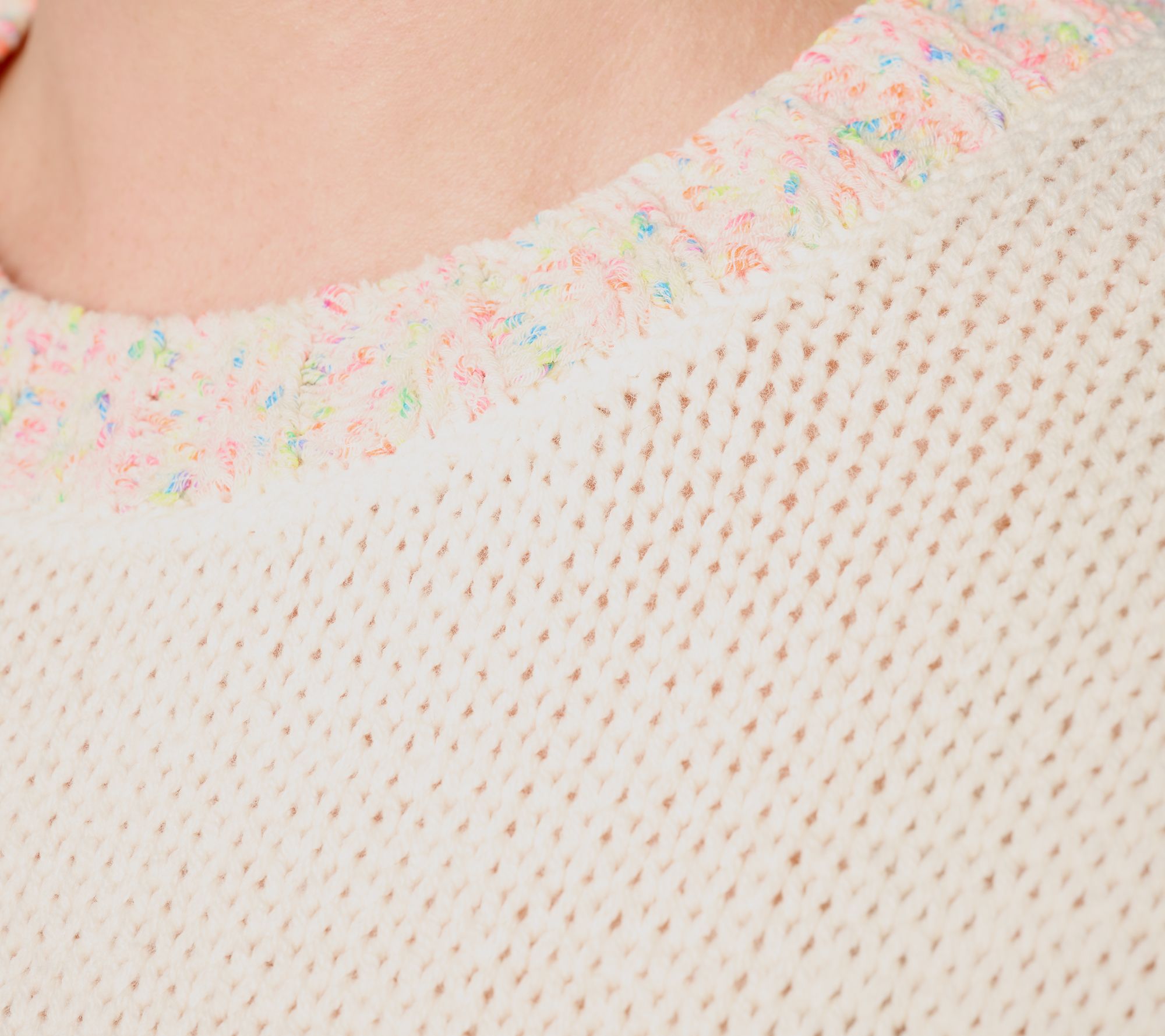 Neon confetti-like stripes give this short-sleeve sweater a fun, playful vibe. That's why it's bound to be in heavy rotation all season long. From Peace Love World.