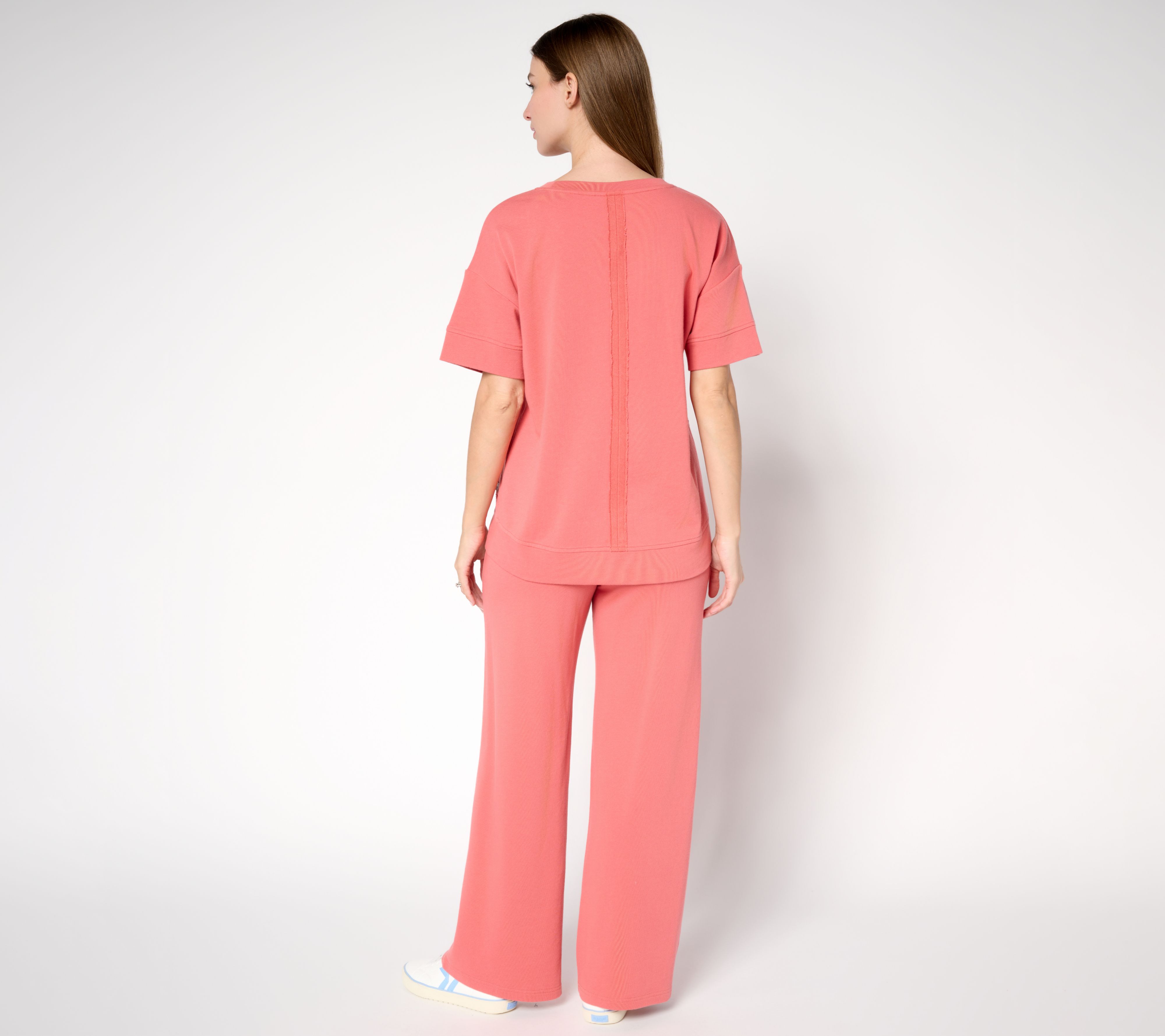 Whether you're tackling your to-do list or traveling to distant destinations, this fuss-free fashion keeps you comfortably coordinated. Raw-edge seaming details and rolled sleeve cuffs lend laid-back touches to the soft silhouette. Pair the pullover top or pull-on drawstring pants (with pockets!) with other pieces in your wardrobe to mix, match, and make your own statement.