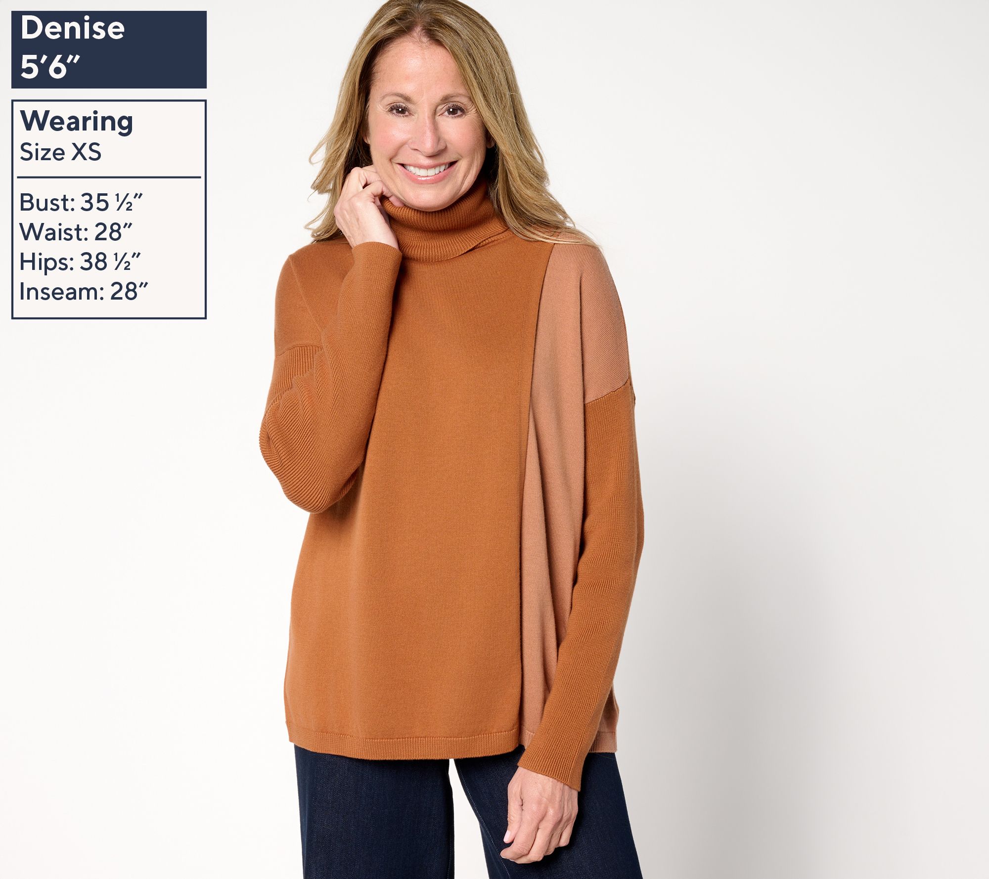 When comfort calls, tuck into this turtleneck sweater and sink into its cotton-rich comfort. Crossover open panels add movement and chic color-block style to your daily outings or cozy evenings. It's an easy match for tailored pants or your favorite denim. From Peace Love World.