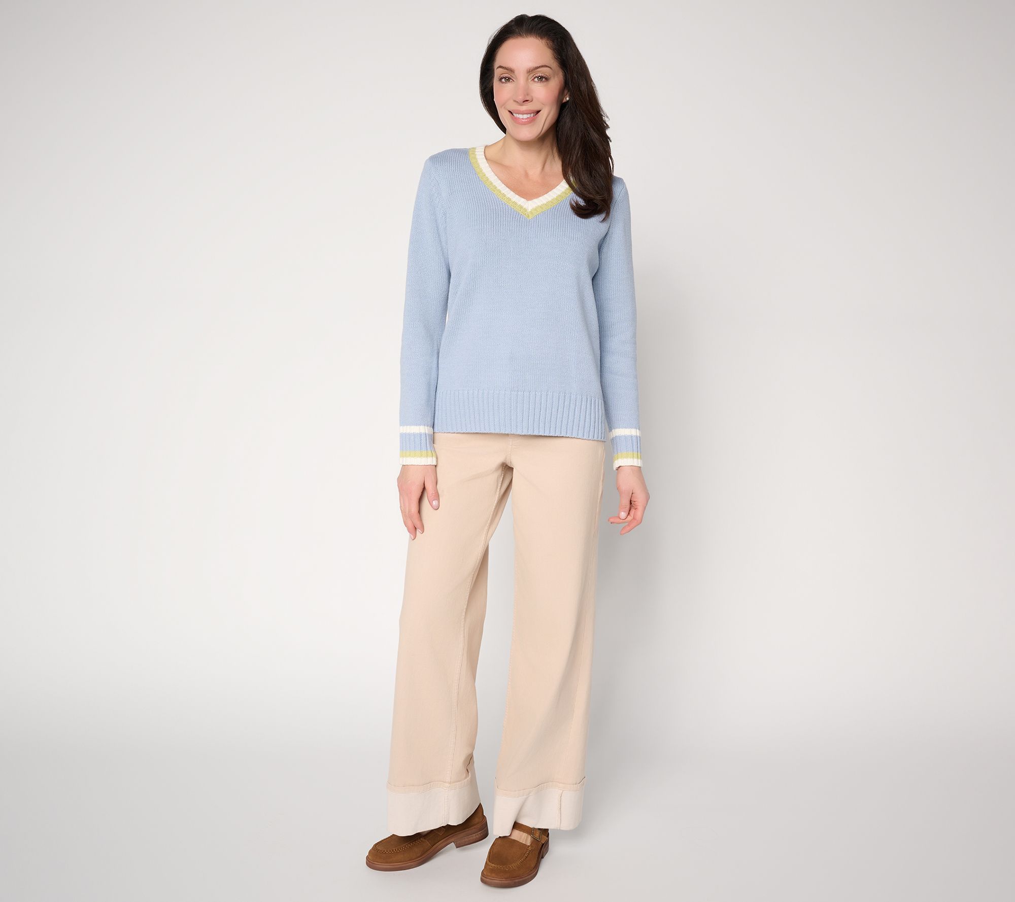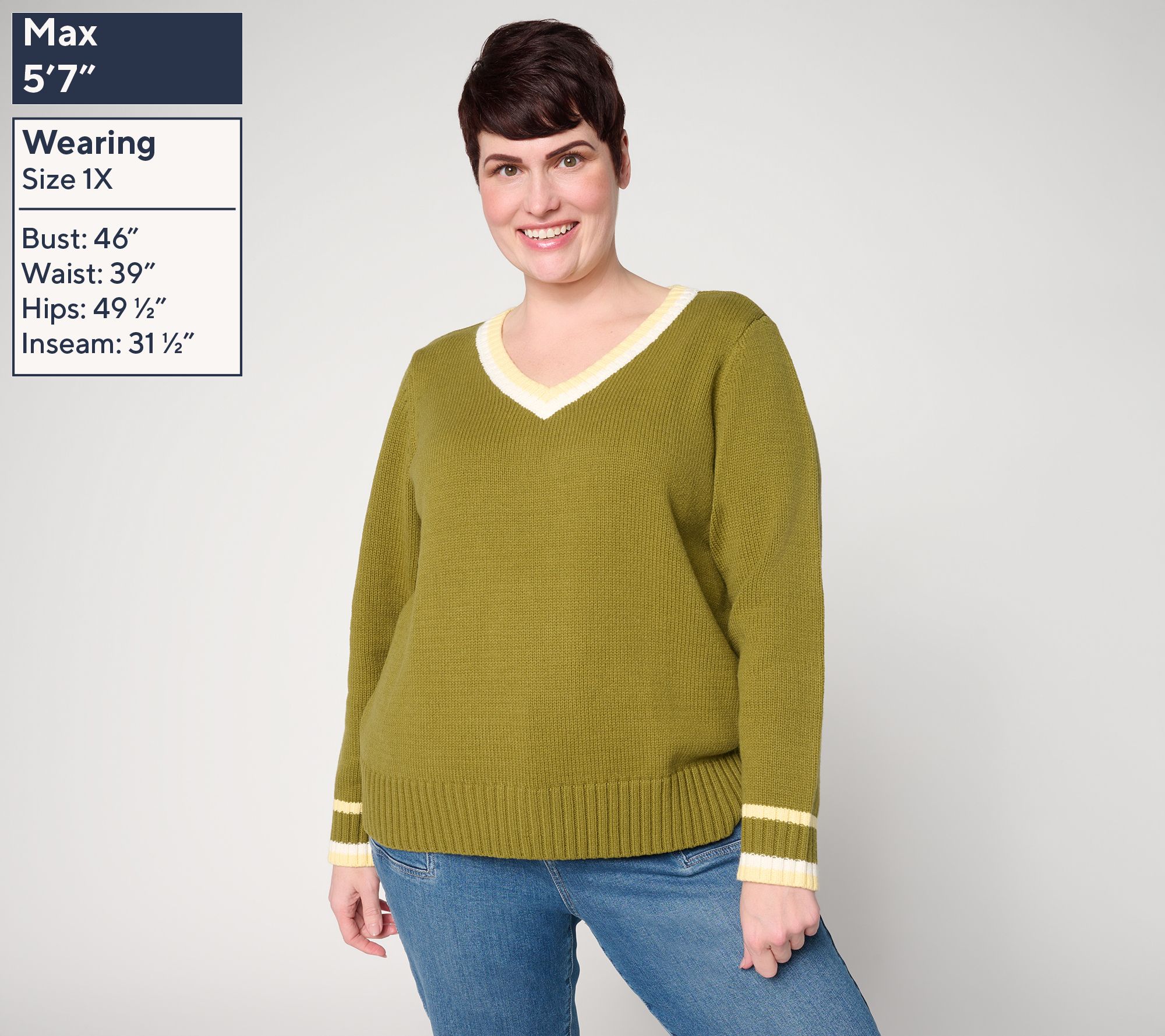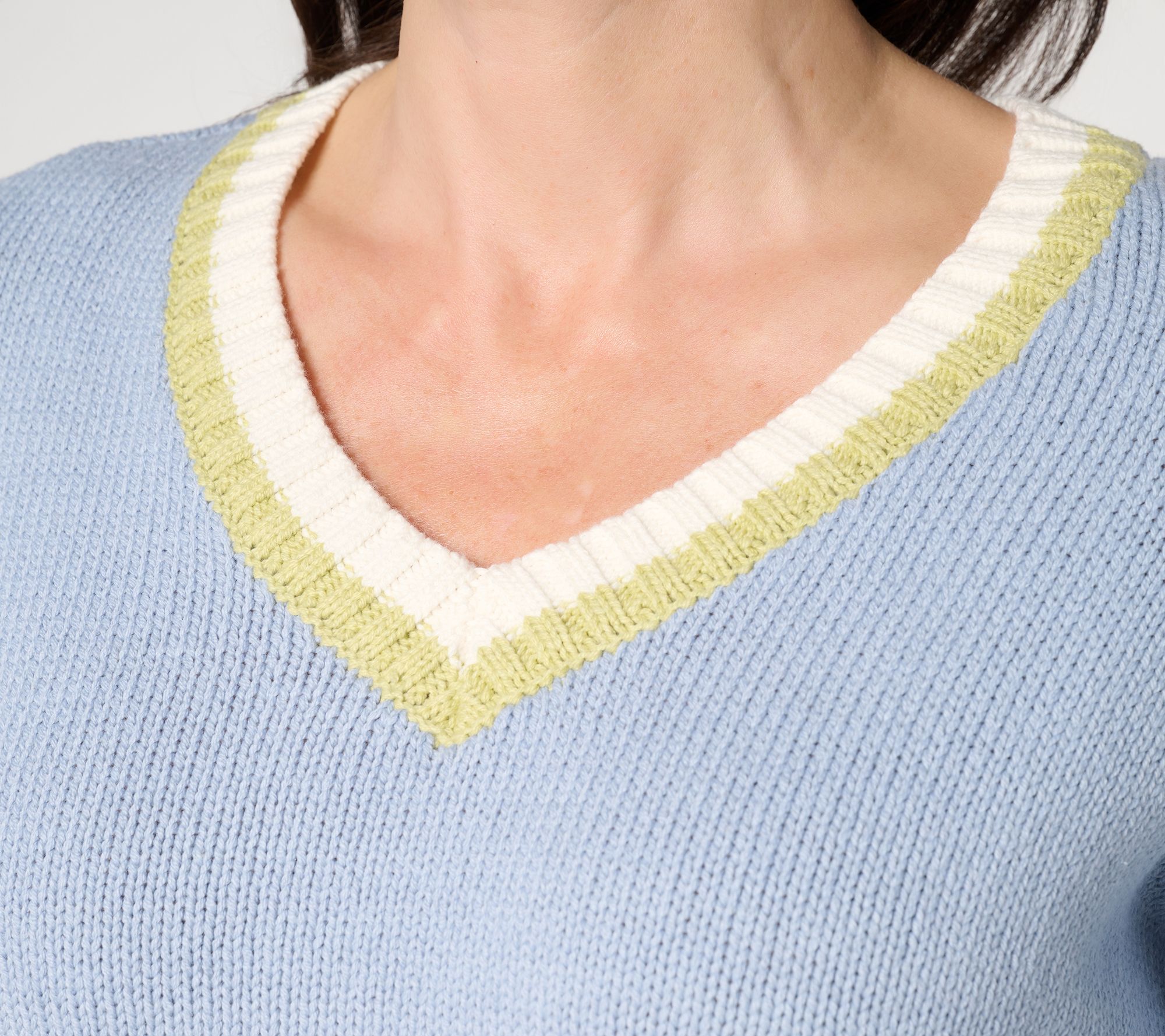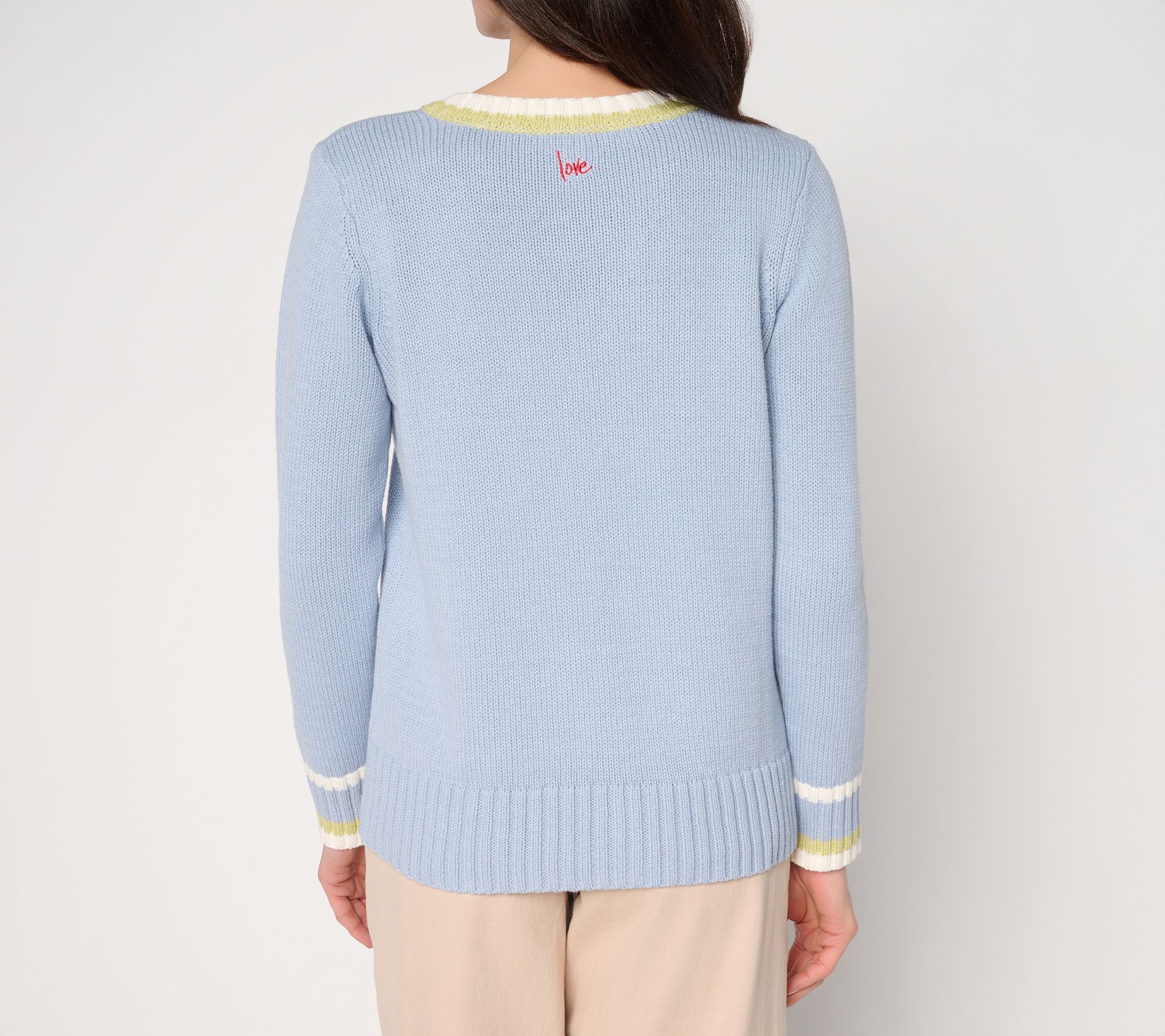 "As Is" Peace Love World V-Neck Tipped Pullover Sweater