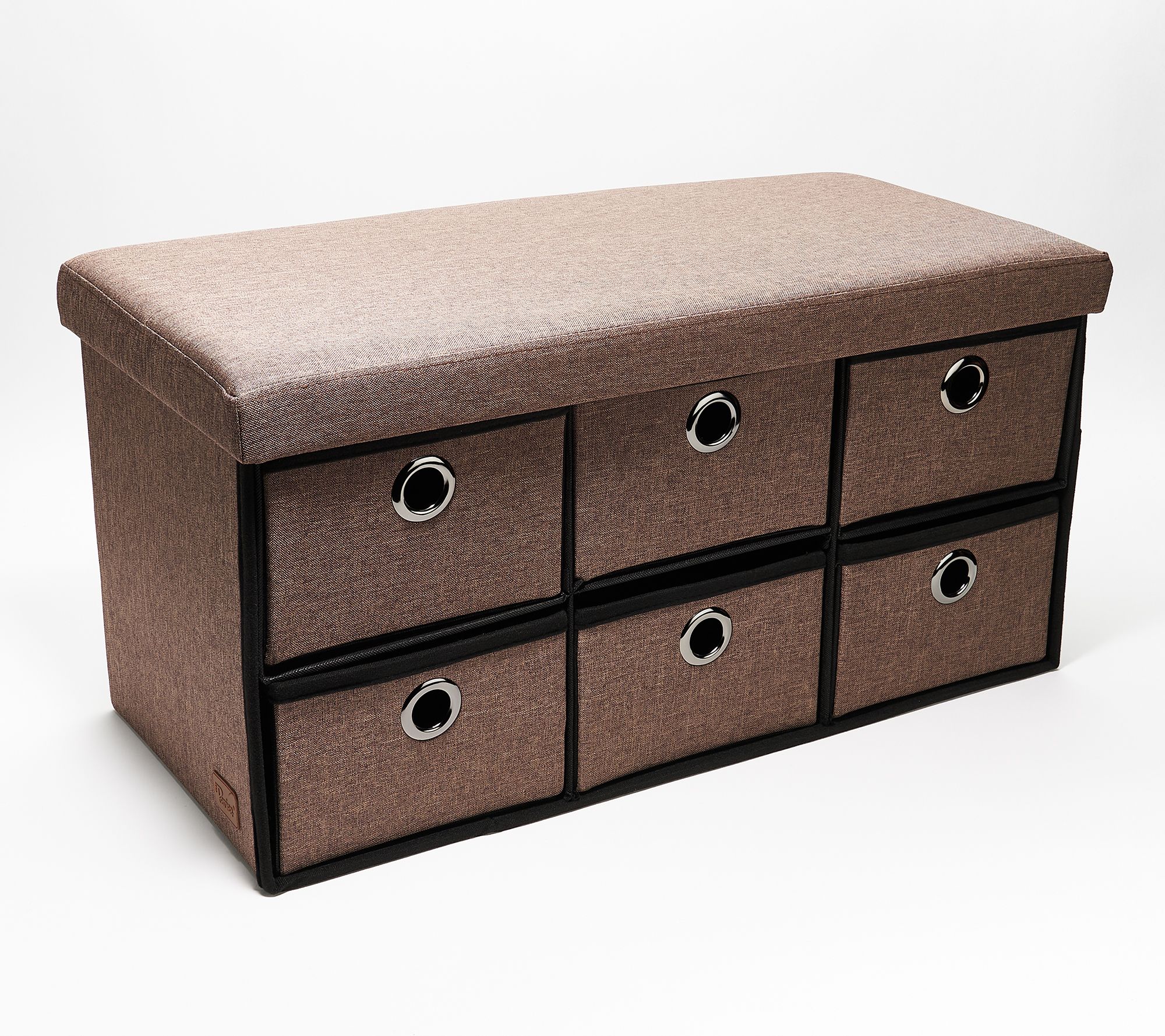 Extra seating or extra storage? Why not have both? This collapsible storage ottoman with six roomy drawers is both functional and fashionable in any space. From Periea.