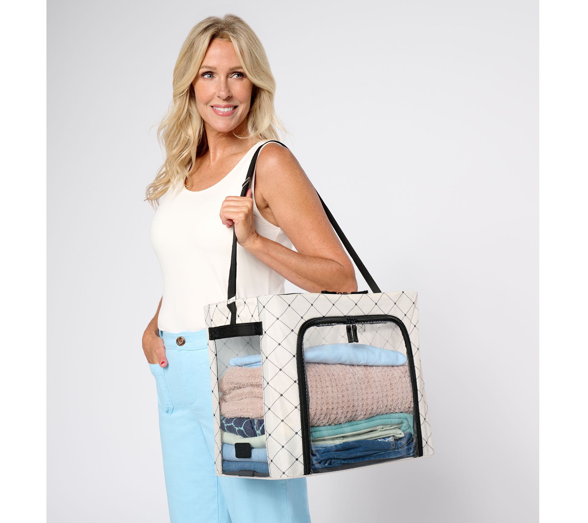 A savvy solution for out-of-season clothes and limited closet space, these handy helpers accommodate all sorts of stuff (think holiday decorations, extra linens, or the kiddos artwork you've been saving since kindergarten). Sturdy steel support bars make for easy stacking, and each one also comes with carry handles, front/side viewing panels (no more guessing what's inside), and two zippered entries. Plus, they're collapsible, so they can stay out of sight when not in use.