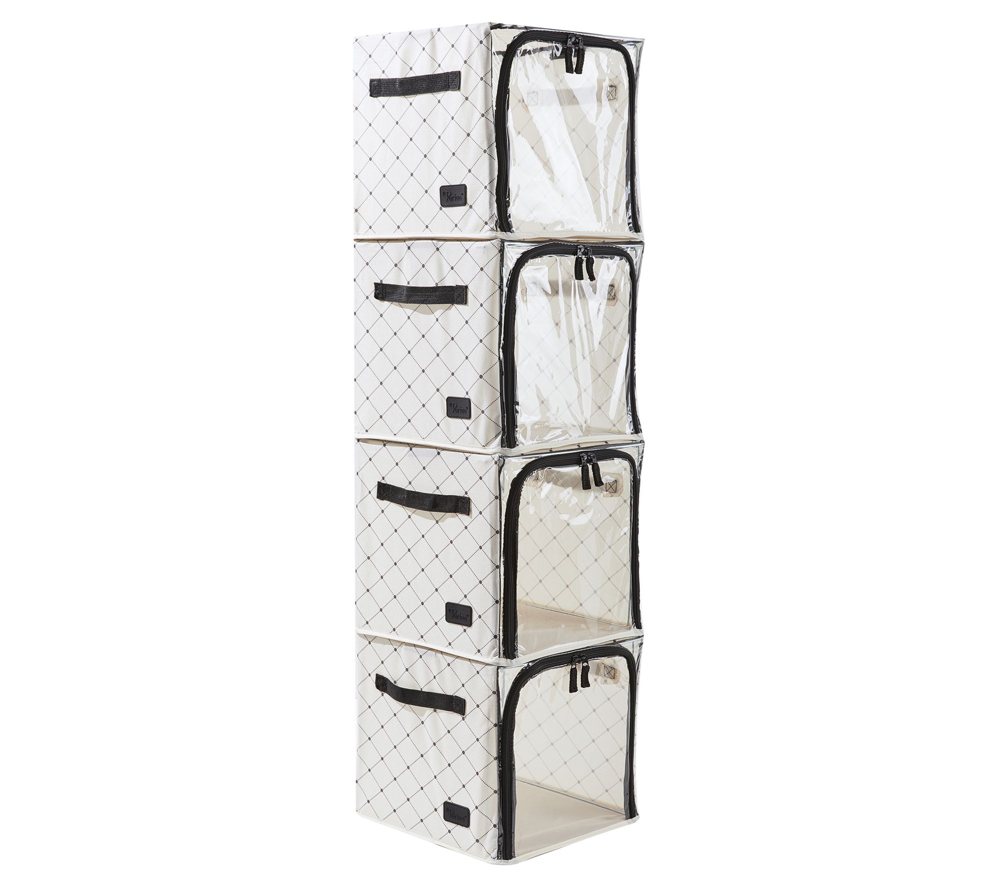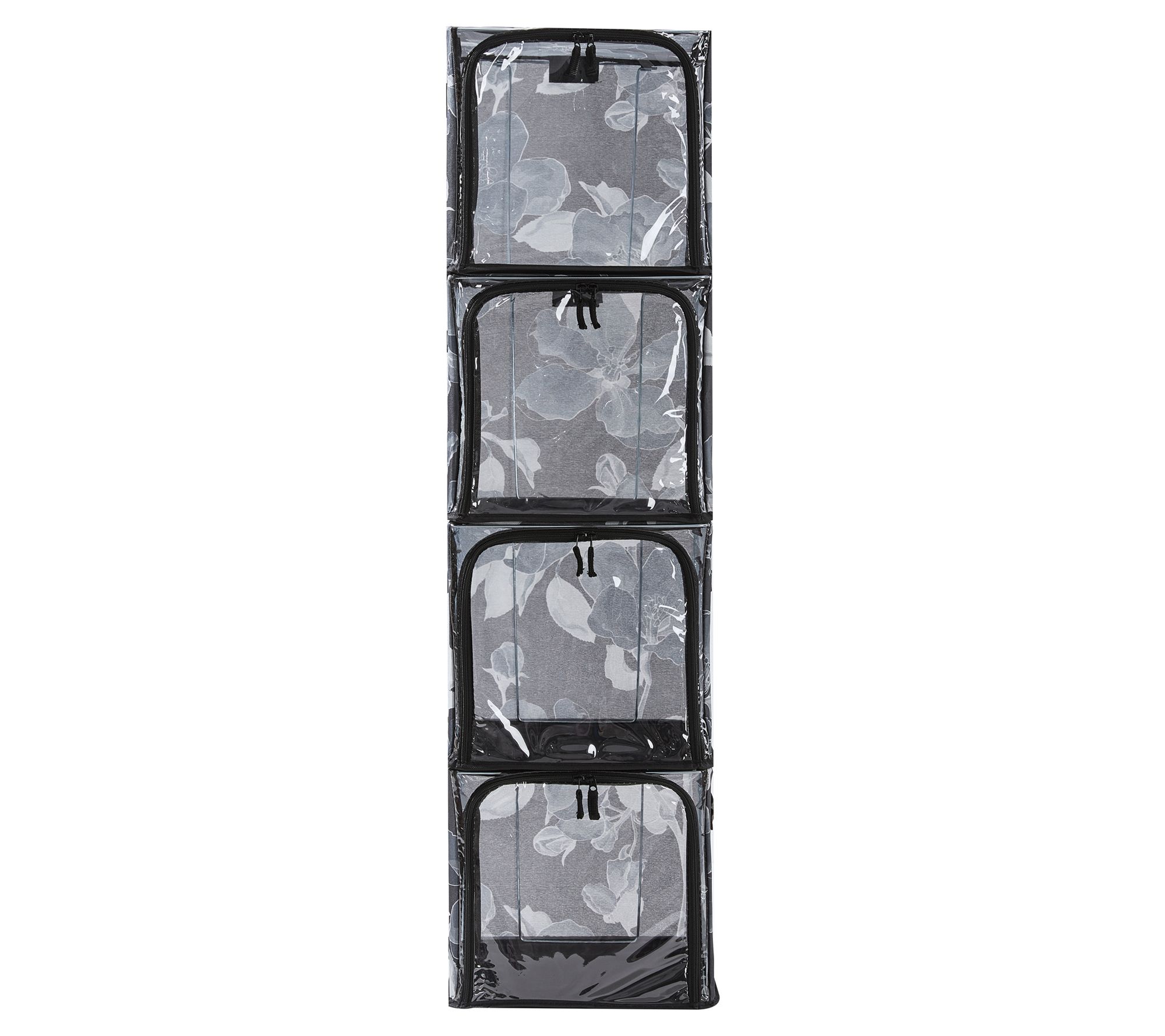 Easy organization for clothes, books, toys, and other odds and ends, these square stackable cubes boast a clear front window so you can always see what's inside. From Periea.