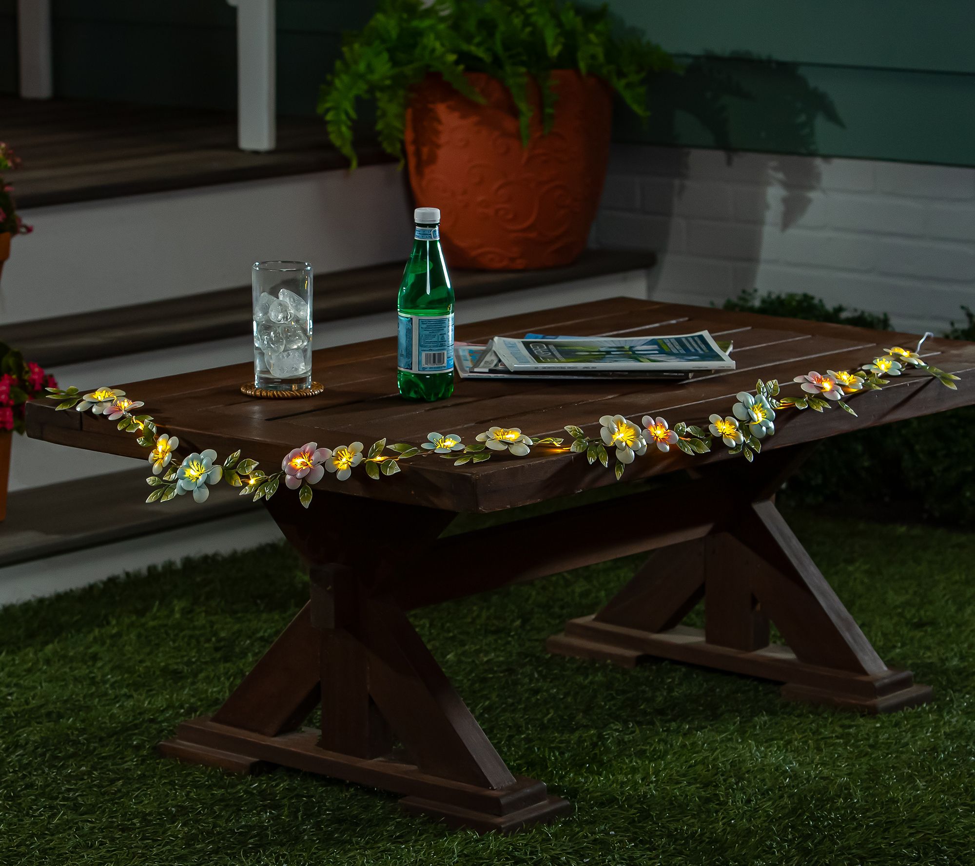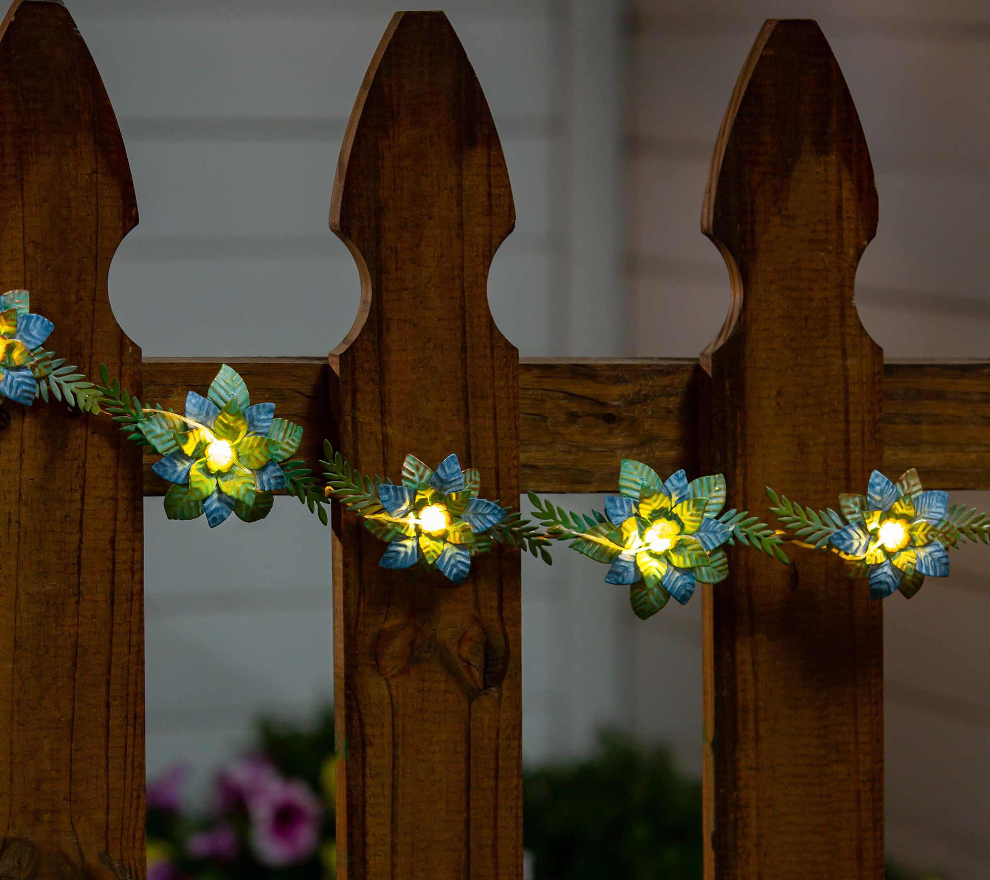Bring illuminating charm to your arbor, fence, porch railing, or mantle with this metal floral garland. Battery operated, the charming design includes a built-in LED feature to create a warm and inviting ambiance. From Plow & Hearth.