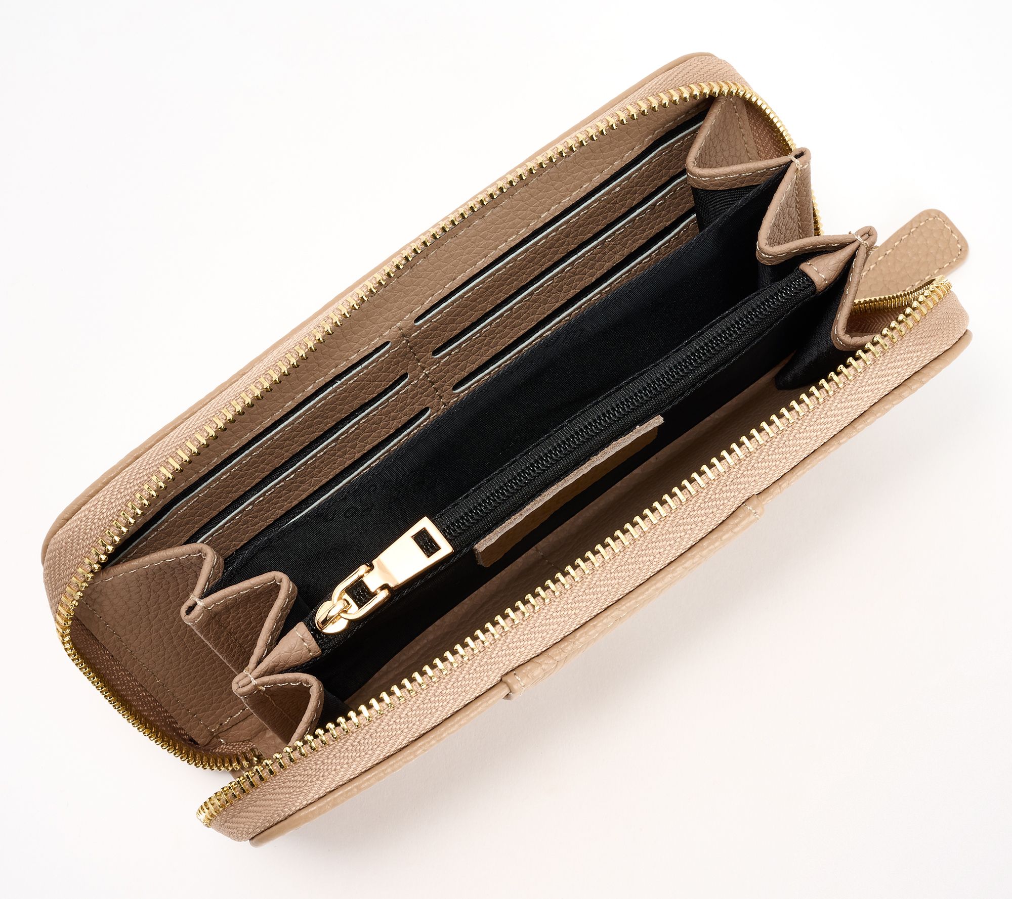 • Lined interior, zip pocket, 12 card slots