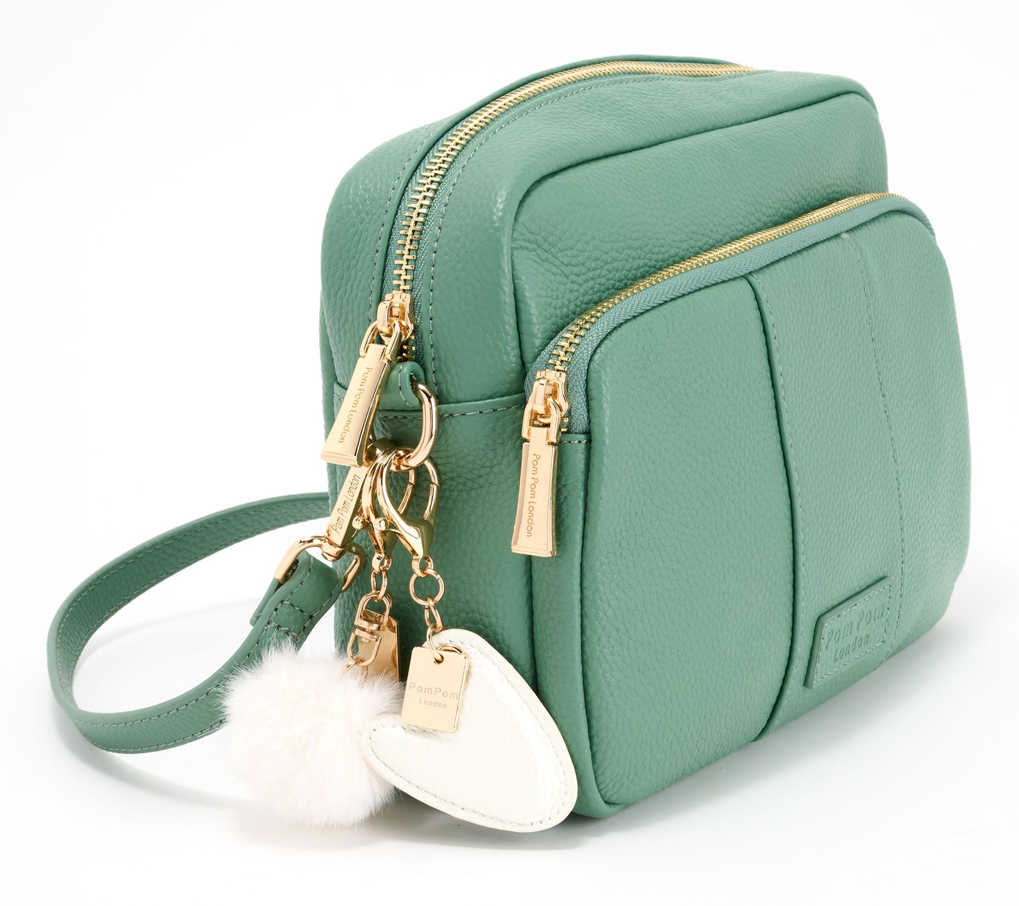 "As Is" Pom Pom London Original Plus Leather Crossbody Bag w/ Accessories
