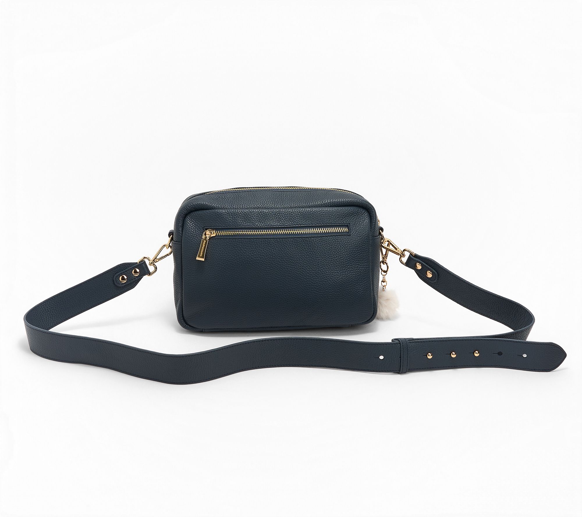 • Measures approximately 10"L x 4.25"W x 6.5"H with a 43.5" to 48" leather crossbody strap; weighs 2.27 lbs