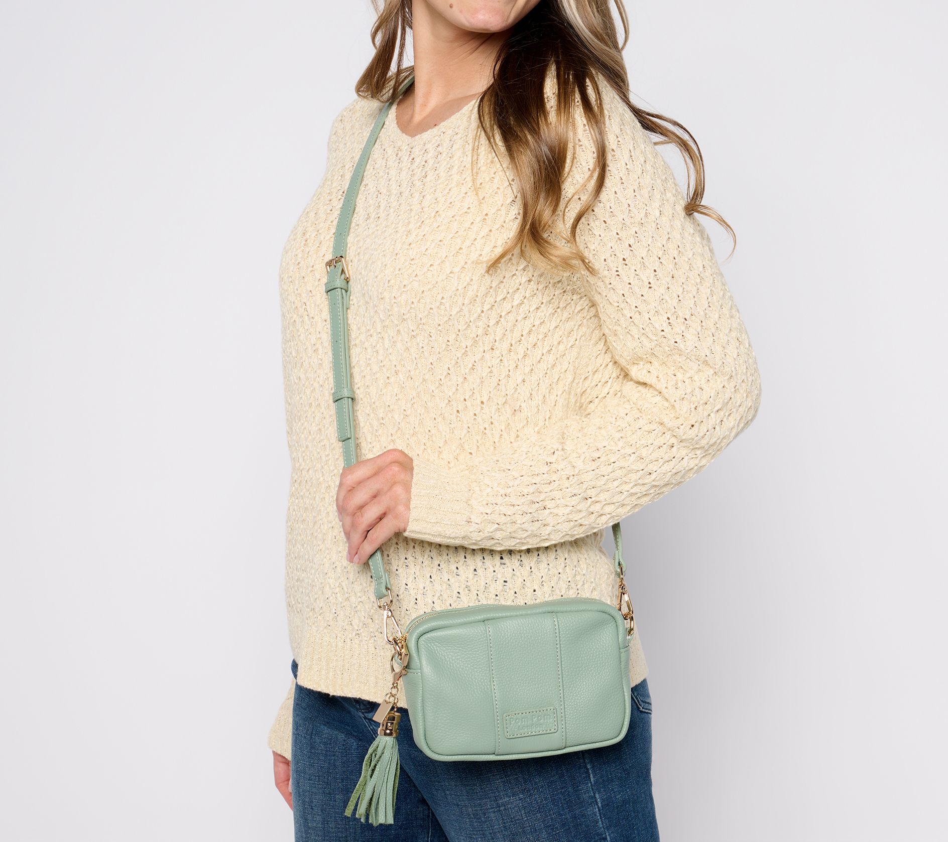 Heading to a new hotspot or exploring the city? Pom Pom London's The City mini crossbody is as adaptable as your plans. Switch out the straps (there's three!) for a style refresh, and keep your keys, wallet, and phone all within reach in designated pockets. Crafted in soft leather with sleek goldtone hardware, this compact sidekick carries just what you need -- so you can keep pace for whatever the day brings. From Pom Pom London.