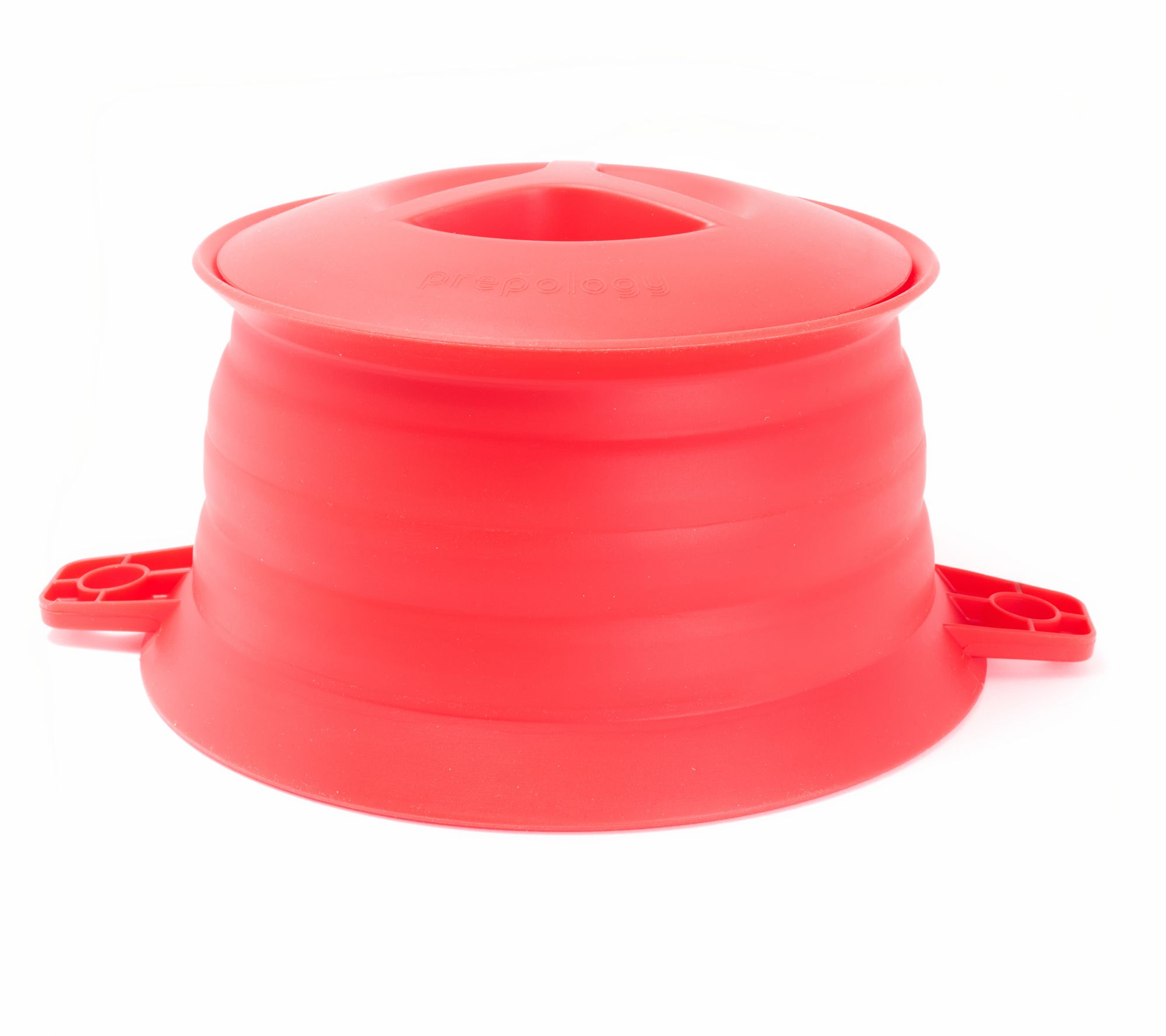 Keep your stovetop clean and your kitchen routine simple with this collapsible high-wall splatter guard featuring a matching lid. Whether frying chicken or simmering sauce, the silicone construction contains messes and adapts to fit 8" or 10" pans, then folds down for easy storage. Streamline your cleanup and cooking with versatile, heat-resistant performance. From Prepology.