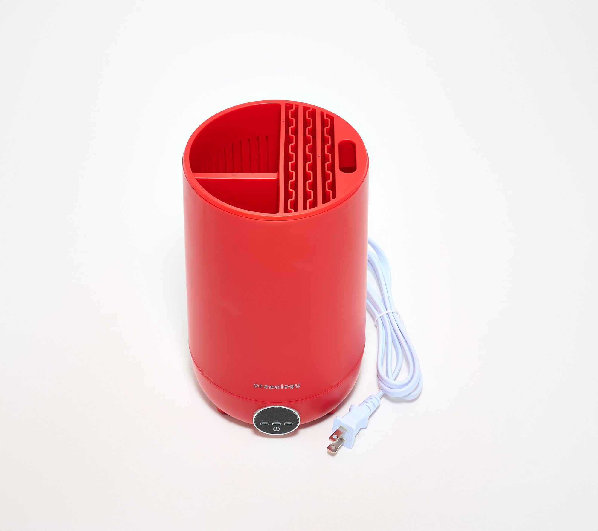 Keep your kitchen utensils organized and ready for use with this disinfectant storage crock pot. Designed with multiple compartments, it offers space for knives, chopsticks, and cutlery, while a blue UV light works to clean your items at the touch of a button. Effortless LED controls and a removable utensil insert make daily upkeep simple. From Prepology.
