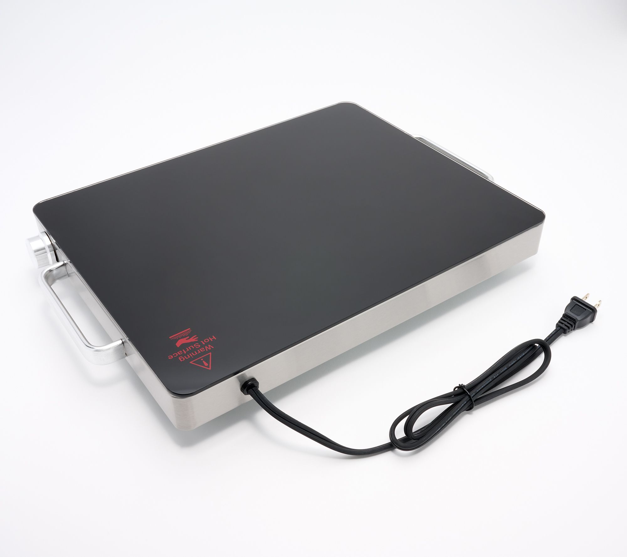 From bite-sized appetizers to family feasts, this warming tray keeps your dishes at toasty temps until you're ready to eat. Featuring three temperature settings, two side cool-touch aluminum handles provide easy transport. From Prepology.