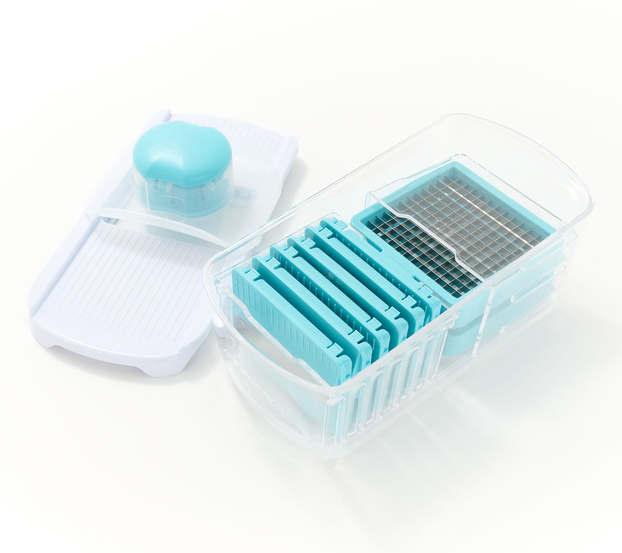 • Includes chopper, two dicing blades, six slicing blades, 8-cup storage bin, and blade storage box