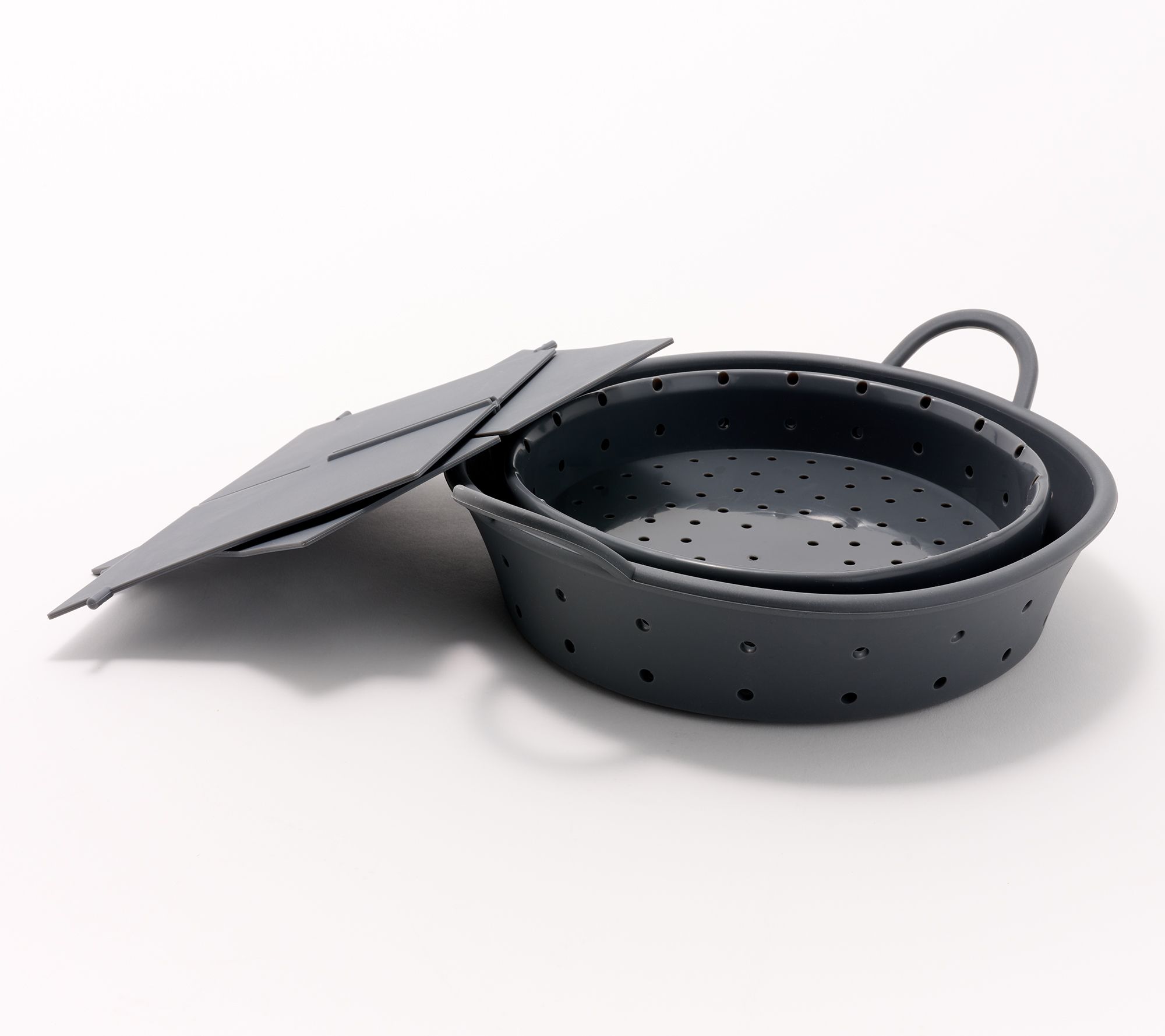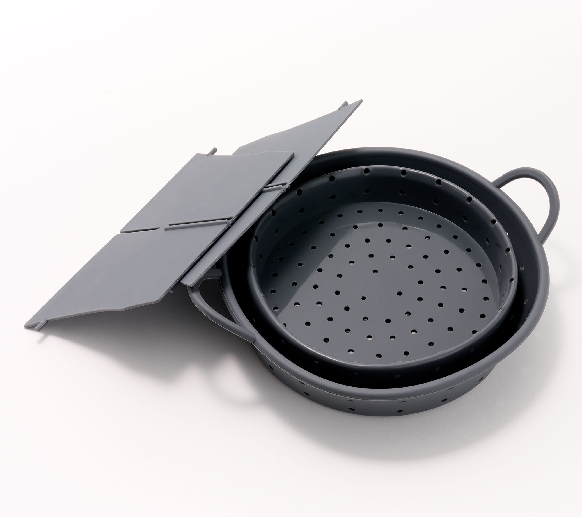 Expand your cooking possibilities with the Prepology silicone steamer with removable divider. Perfectly designed to fit into your stock pot, it's great for steaming a variety of foods simultaneously. With its convenient removable divider, you'll easily cook separate dishes at the same time. From Prepology.
