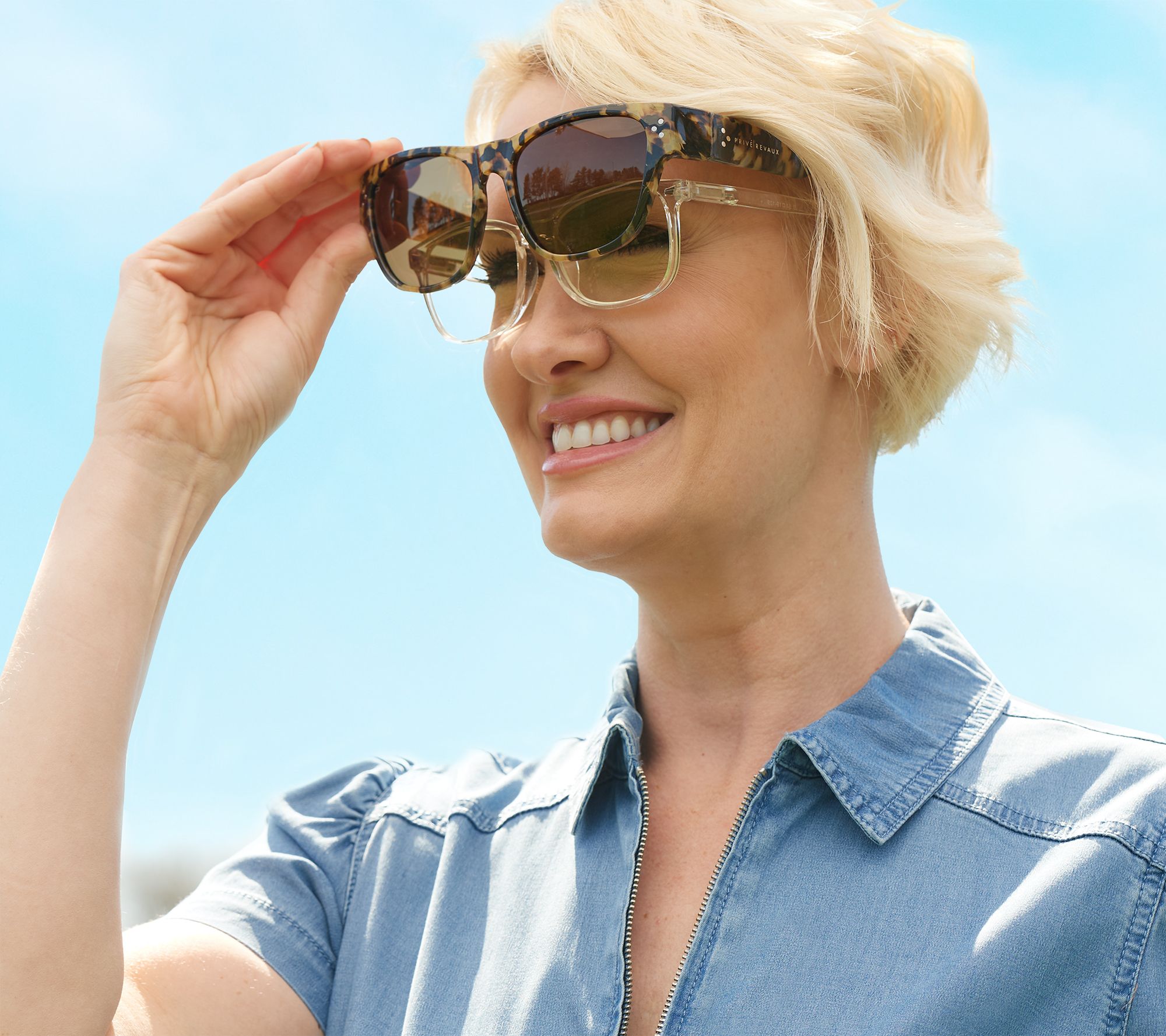 • Polarized lenses; anti-glare coating; 100% UVA/UVB protection; blue light filtering up to 85% blue light; hand-assembled; oil-, water-, and scratch-resistant lenses