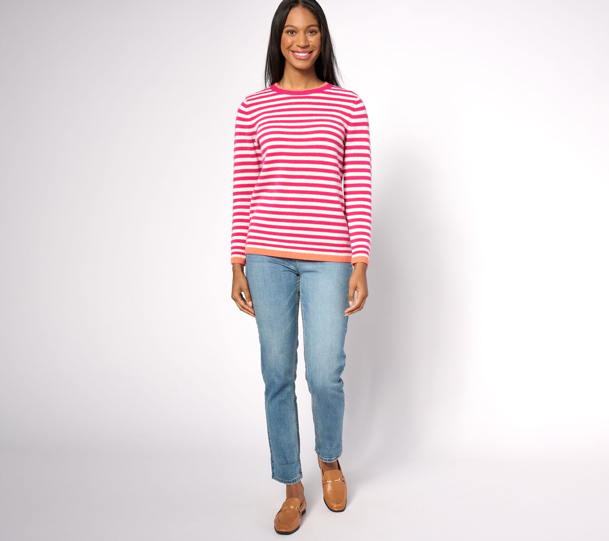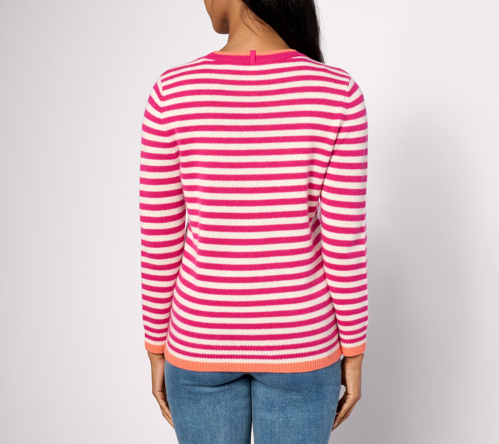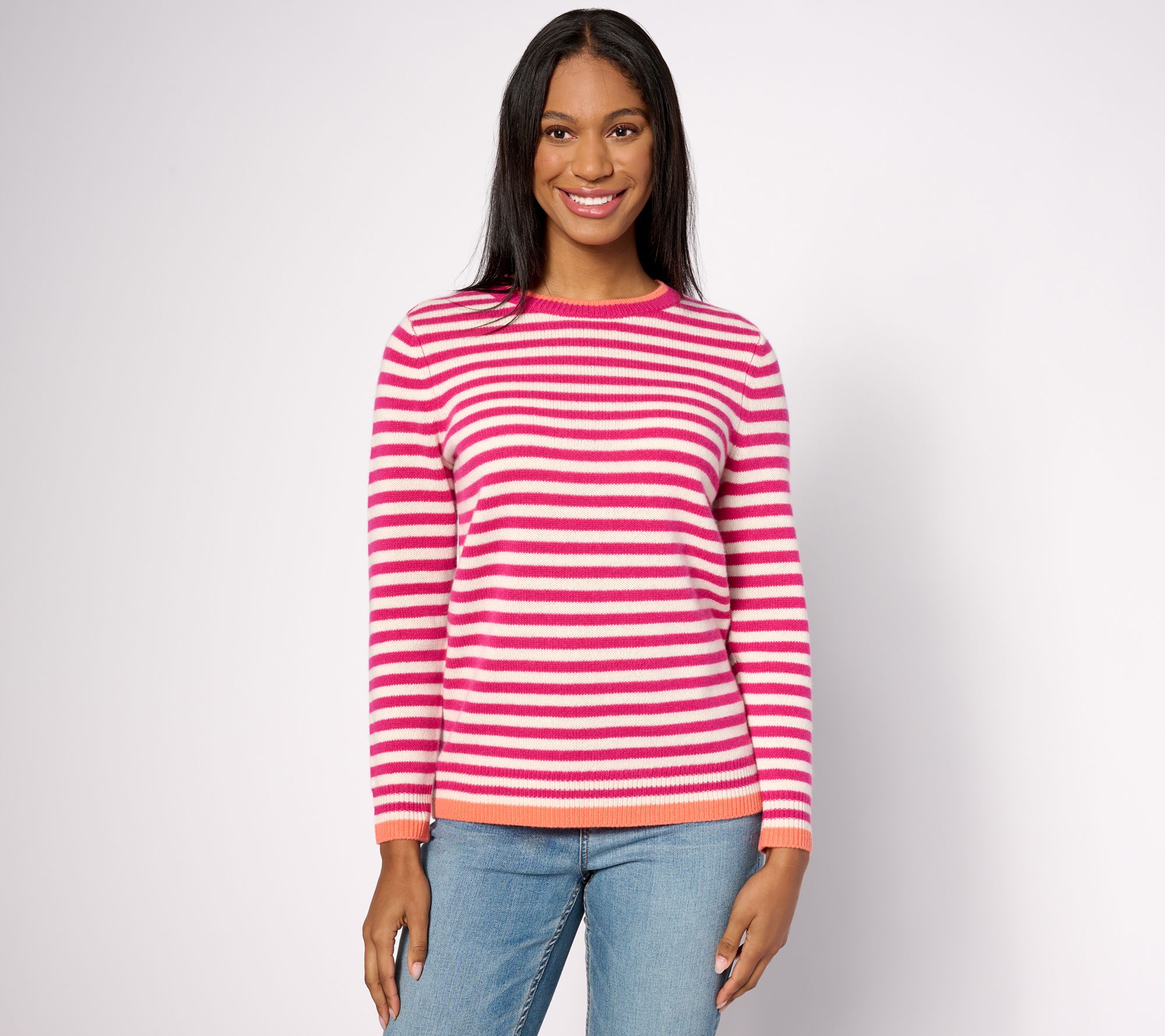 "As Is" Pure Splendor Cashmere Stripe Crewneck Pullover