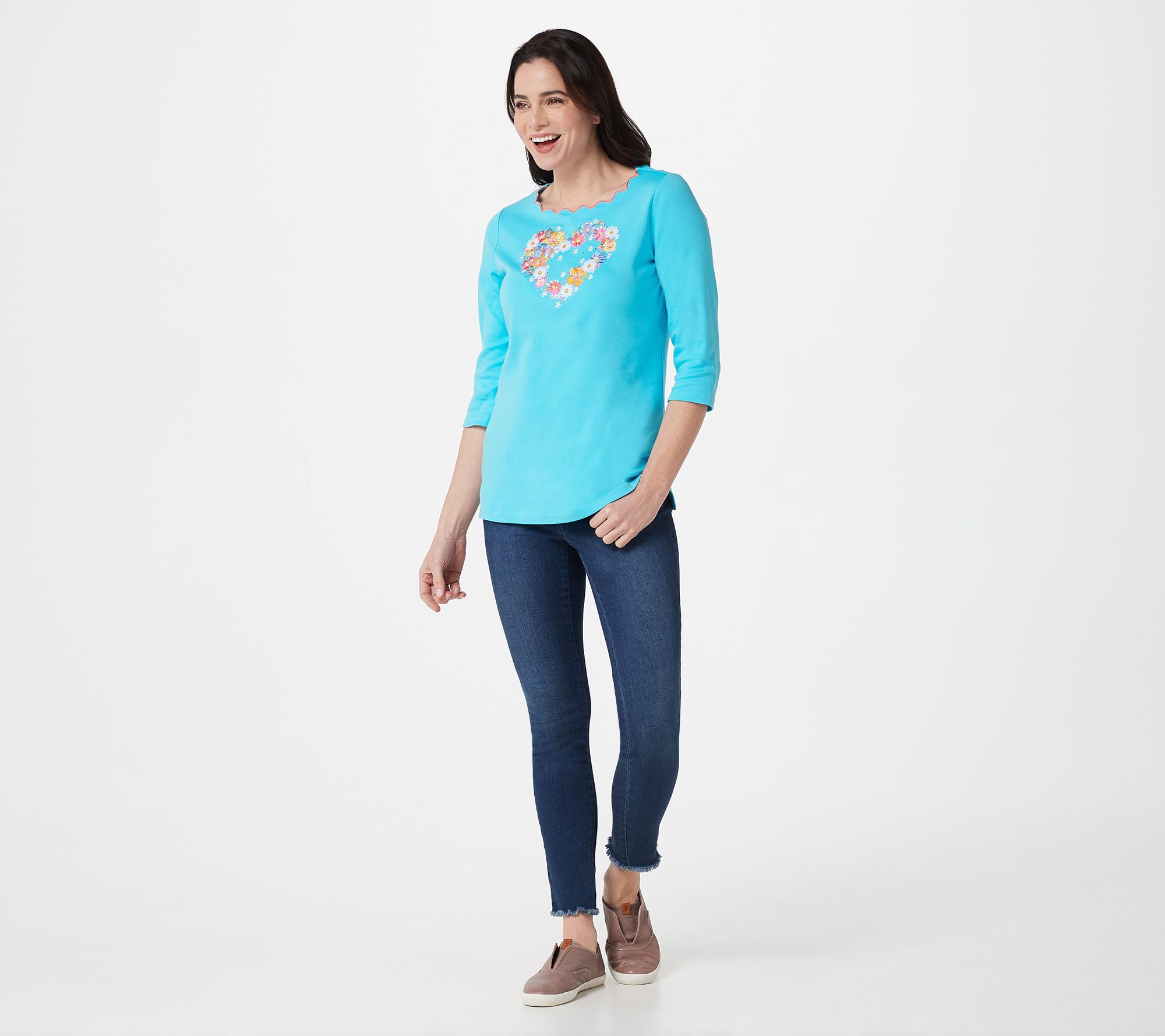 "As Is" Quacker Factory Blooming Heart 3/4 Sleeve T-Shirt