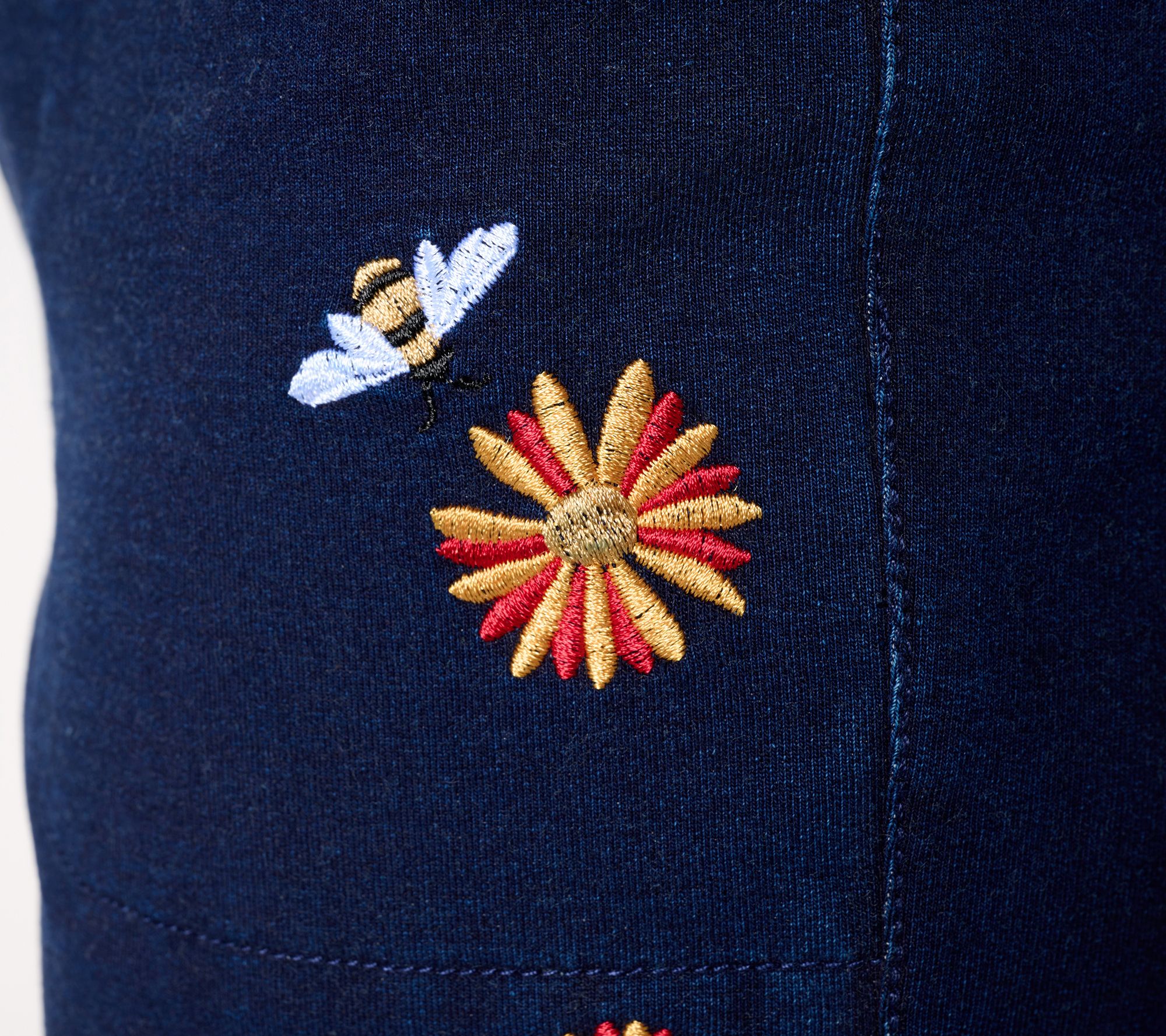 • Features: pull-on style, pockets, embroidery detail on side of leg