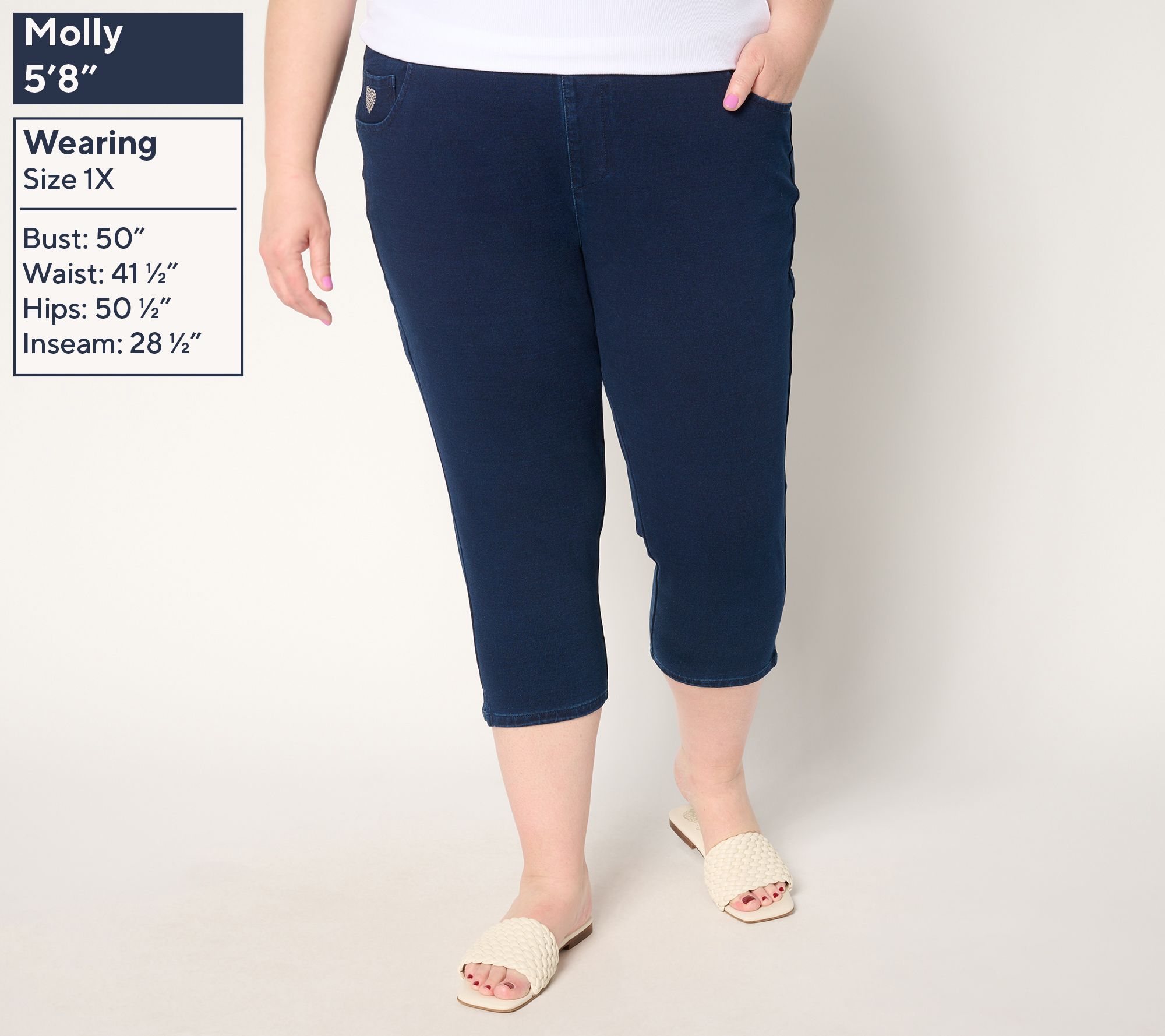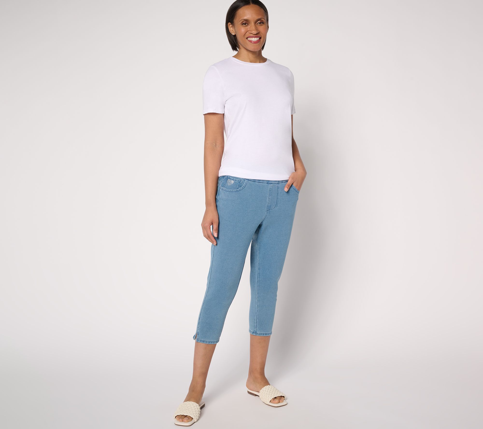 "As Is" Quacker Factory DreamJeannes Reg Flat Waist Crop Pant