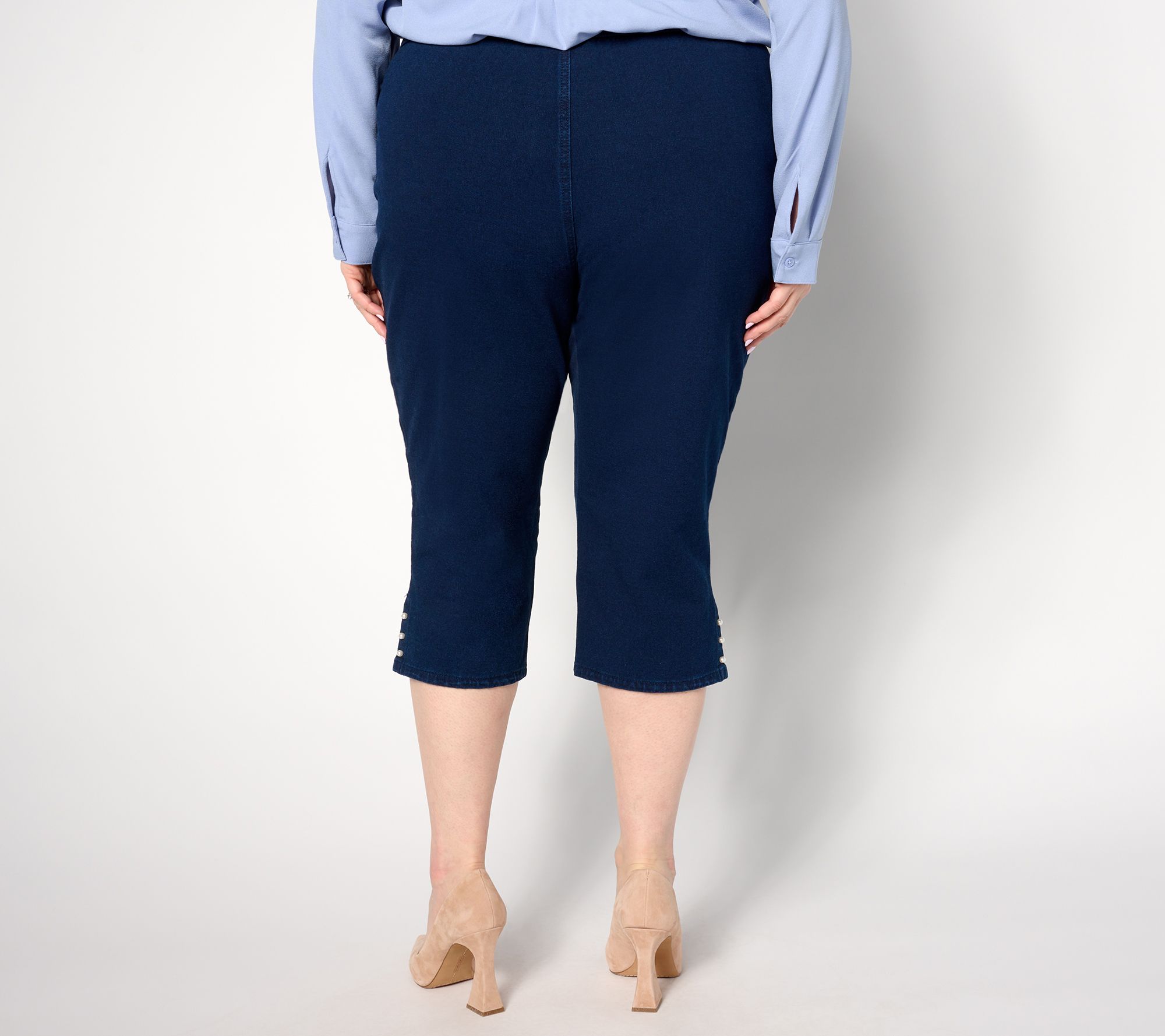 Time to come out of your loungewear shell and do everyday dressing a little, well, dressier? With a spray of faux-pearls, these vented DreamJeannes capris nail the vibe! Pair with a floaty blouse and colorful heels for spring parties. From Quacker Factory®.