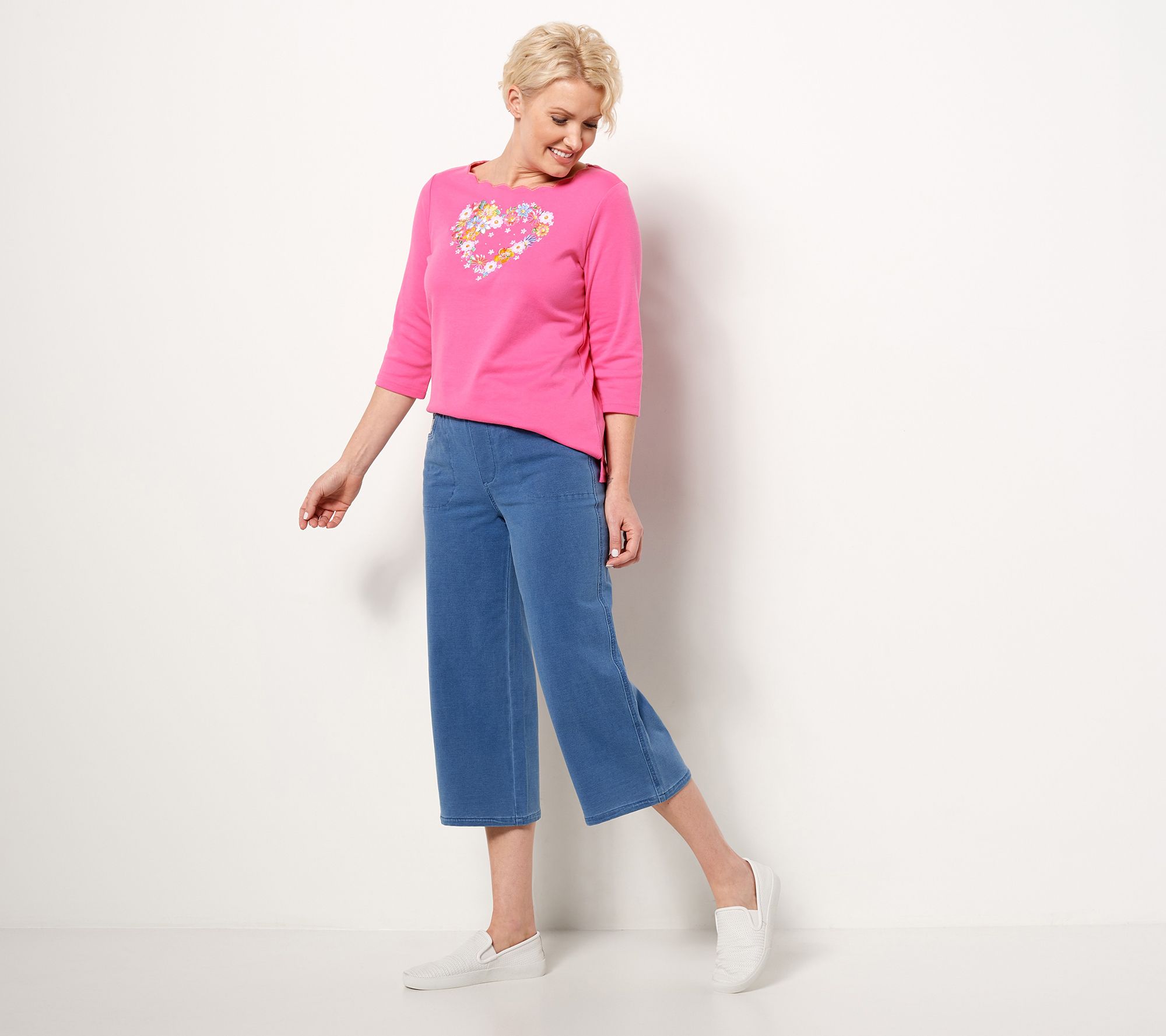 So over jeans that give you that suction-cupped feeling (at least for now)? We hear you. After spending so much time in comfy yogas and lounge-y leggings, cute culottes sound like a dream -- especially if they're fashioned in moves-with-you DreamJeannes knit (yes, knit!) that's a Quacker Factory favorite. These culotte pull-ons are the comeback we've been waiting for, with a flattering wide leg (so trend-right) and cropped length that partners with everything from a simple tank and tennies now to a chunky sweater and boots later (much later). From Quacker Factory®.